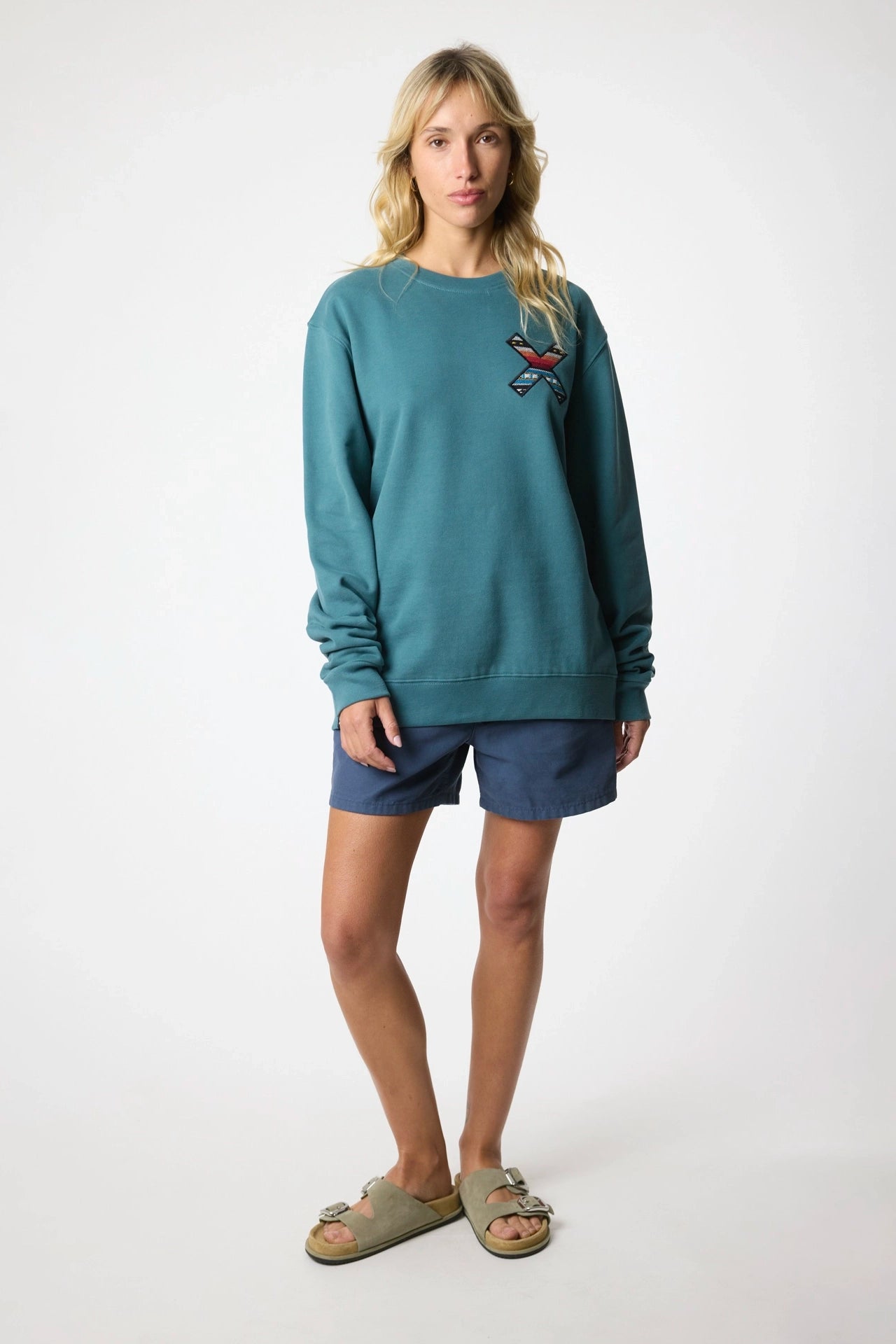 Sweatshirt with our classic embroidered X: front on the chest and back on the back. Made with 100% organic cotton and regular fit cut.
