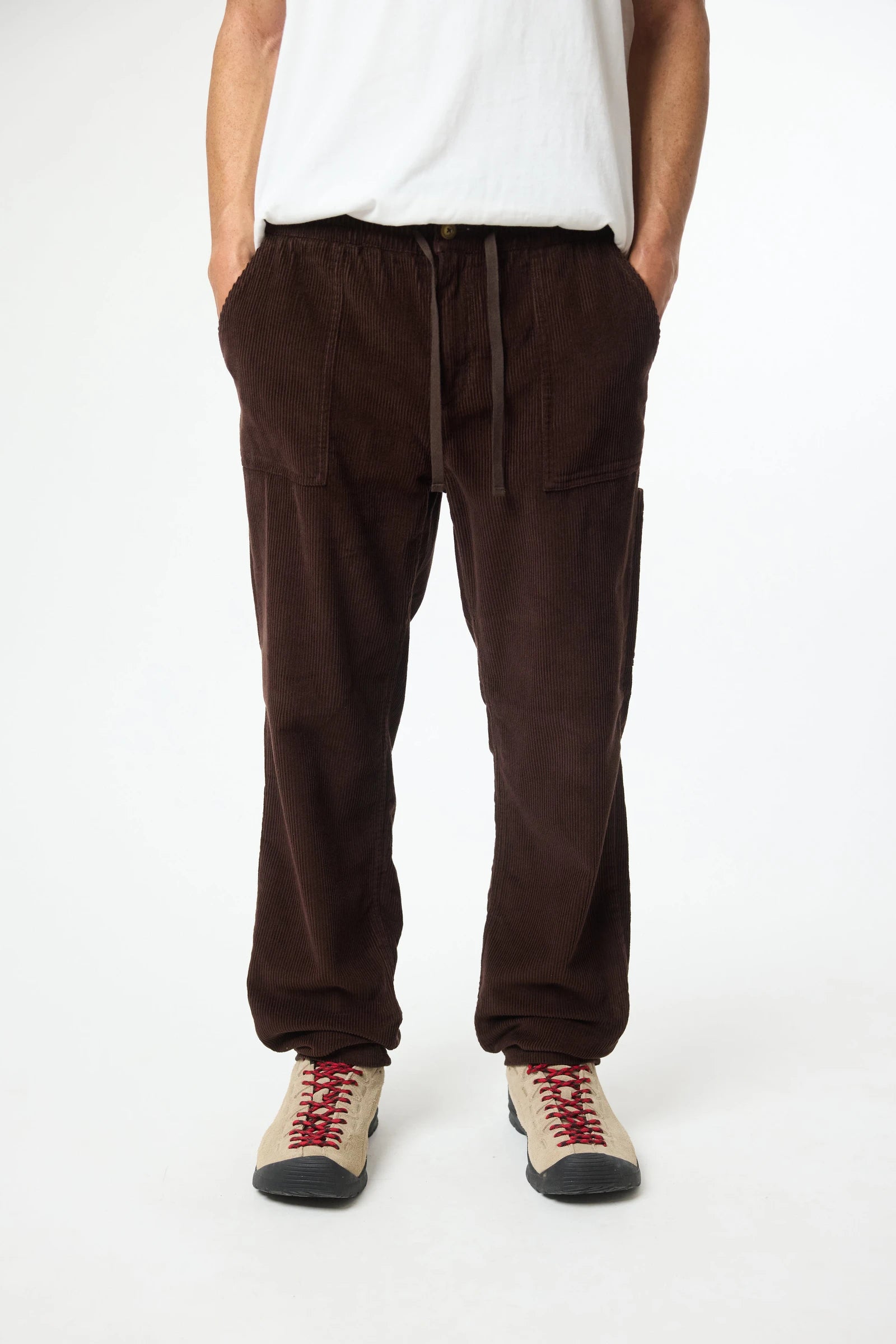 Pants made of corduroy fabric, 100% cotton. With front “pork chop” pockets with exposed stitching, zip fly with personalized button and adjustable drawstrings. Back leg pocket with decorative label and two welt pockets.
