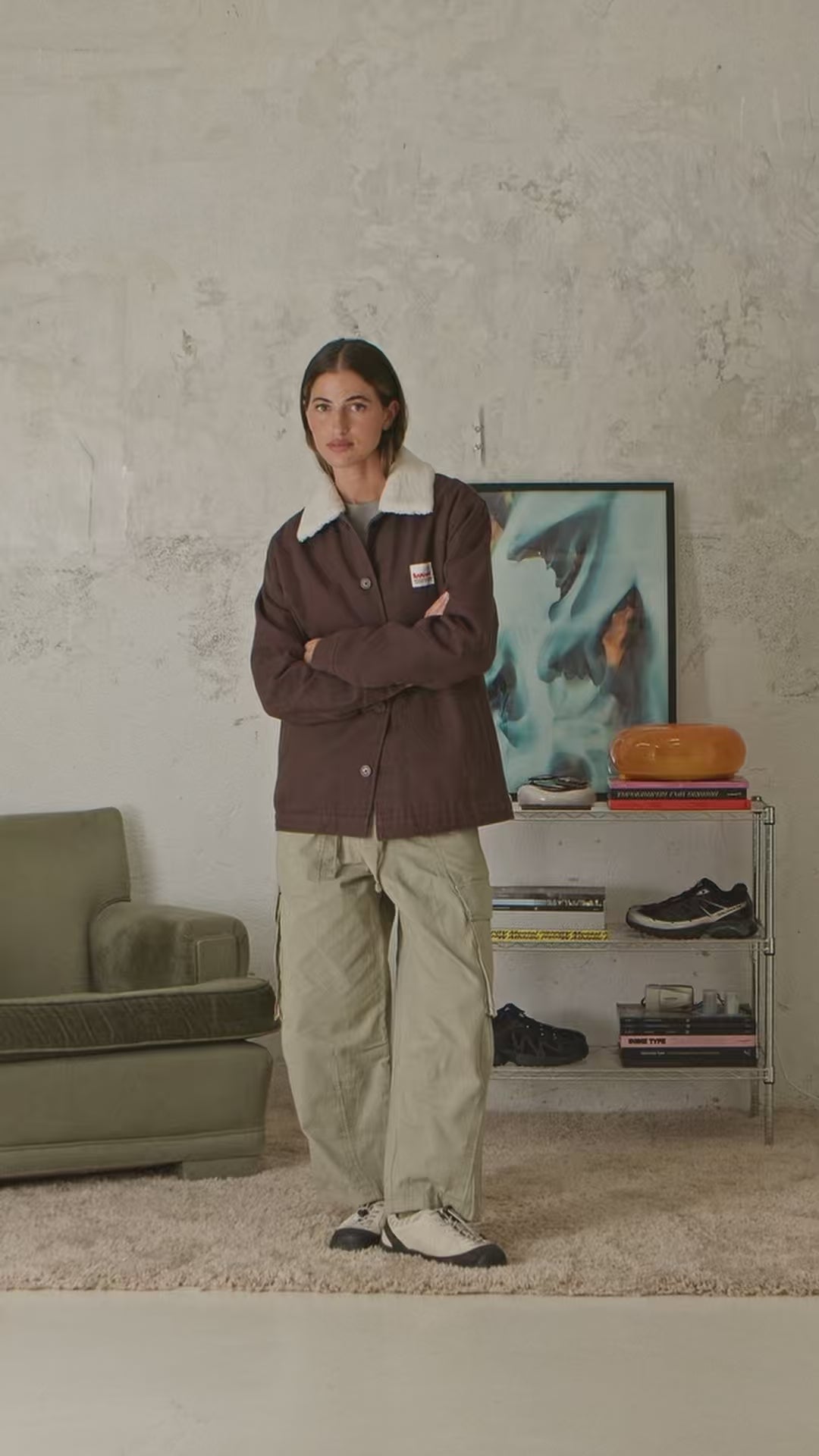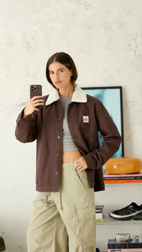 Jacket made of canvas fabric, 100% cotton. With detachable off-white shearling collar. Front pockets with topstitched silhouette and inner pocket. Decorative label sewn on chest.