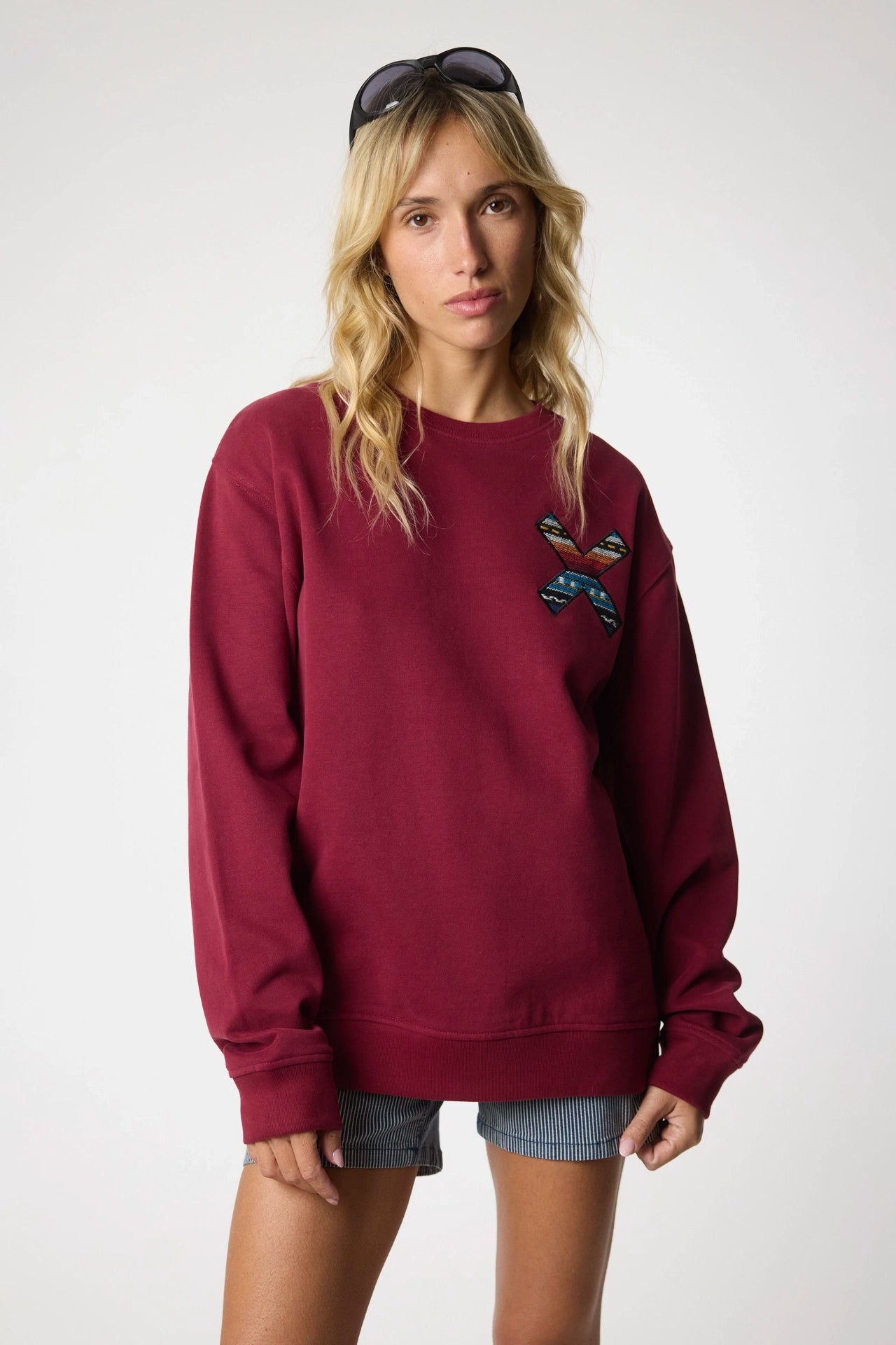 Sweatshirt with our classic embroidered X: front on the chest and back on the back. Made with 100% organic cotton and regular fit cut.