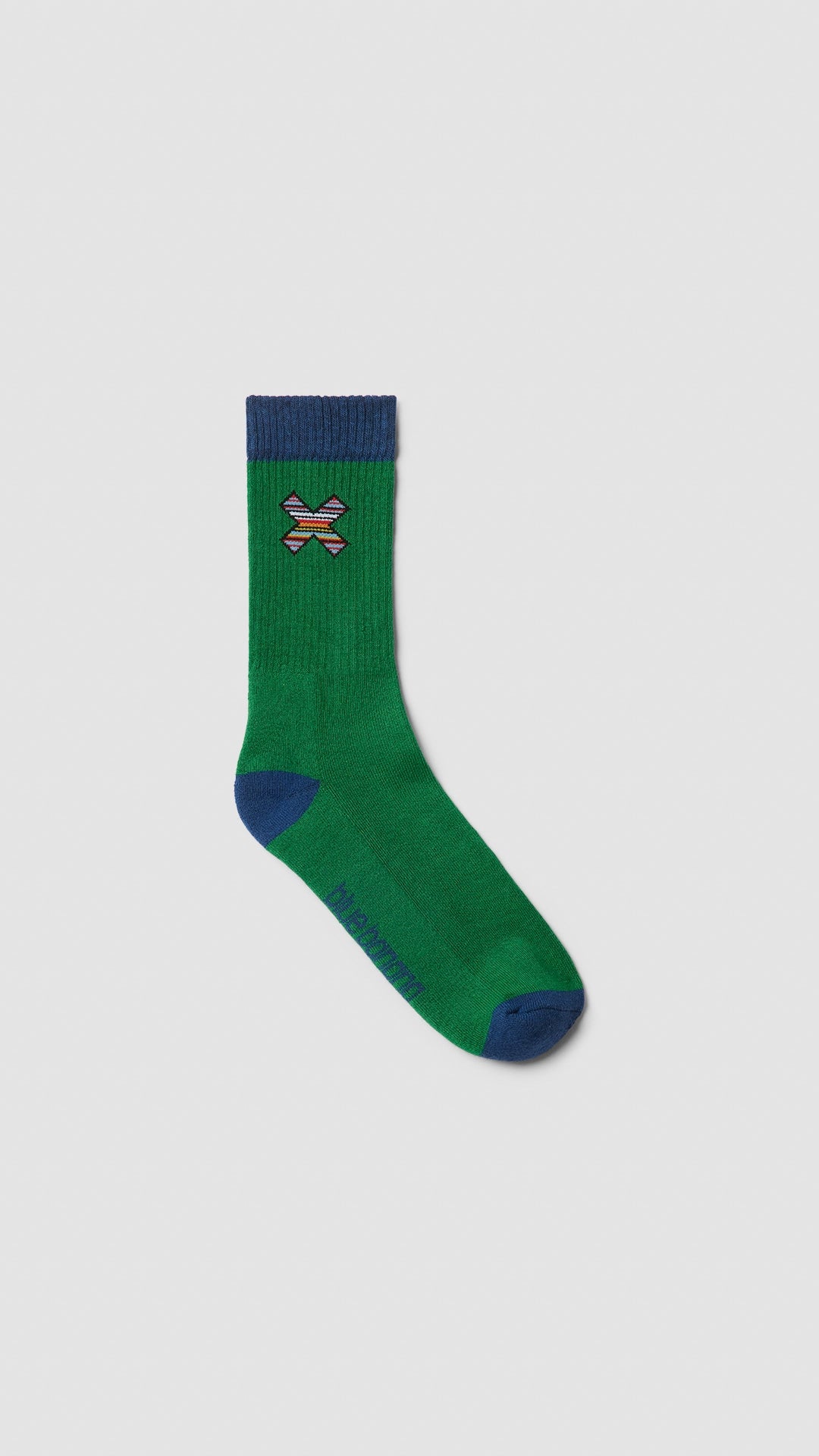 Two-tone socks with printed X.