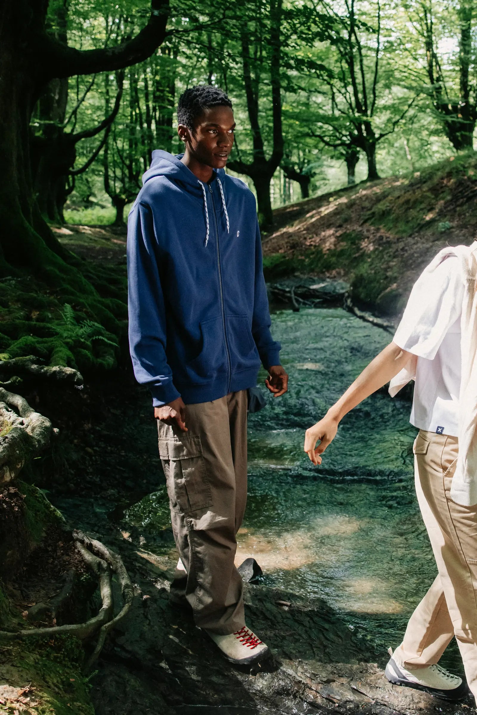 Hoodie with central zipper and our logo patch embroidered on the upper left front. Made of 100% organic cotton and regular fit.