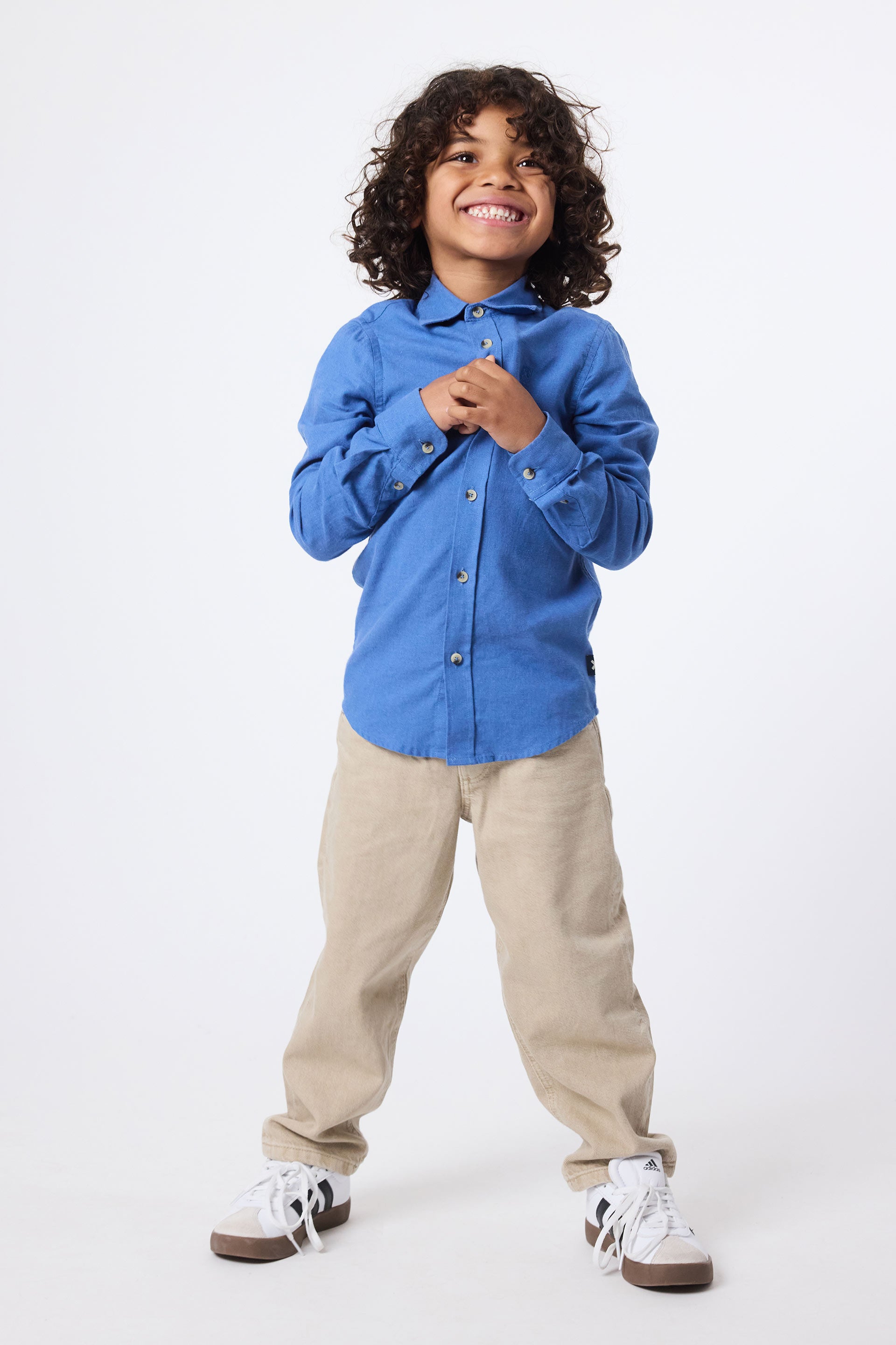 Linen and cotton shirt with embroidery on the chest, embroidered label and personalized buttons.