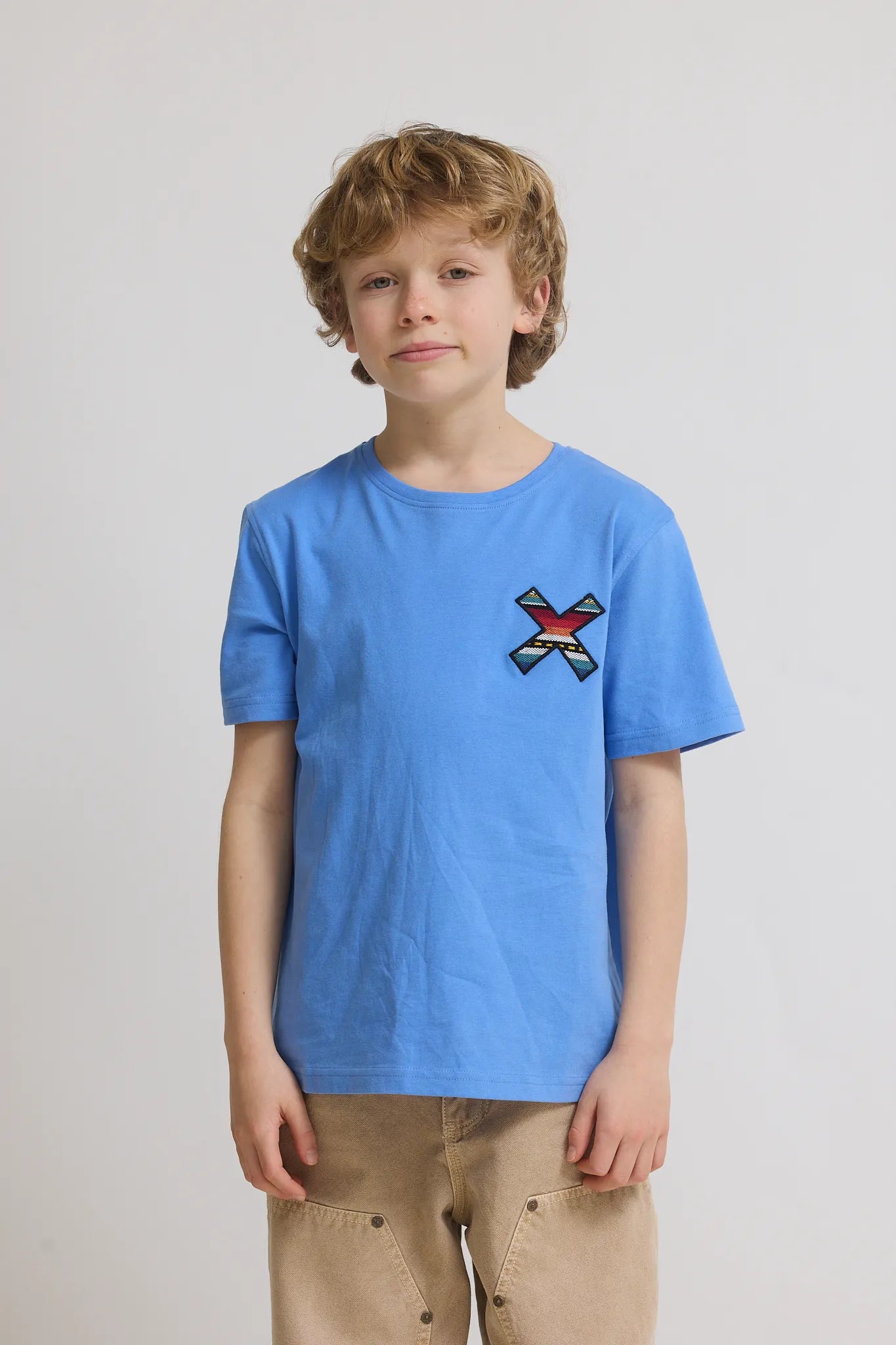 Camiseta con nuestra clásica X bordada: delantera en el pecho y trasera en la espalda. Confeccionada con 100% algodón orgánico.
