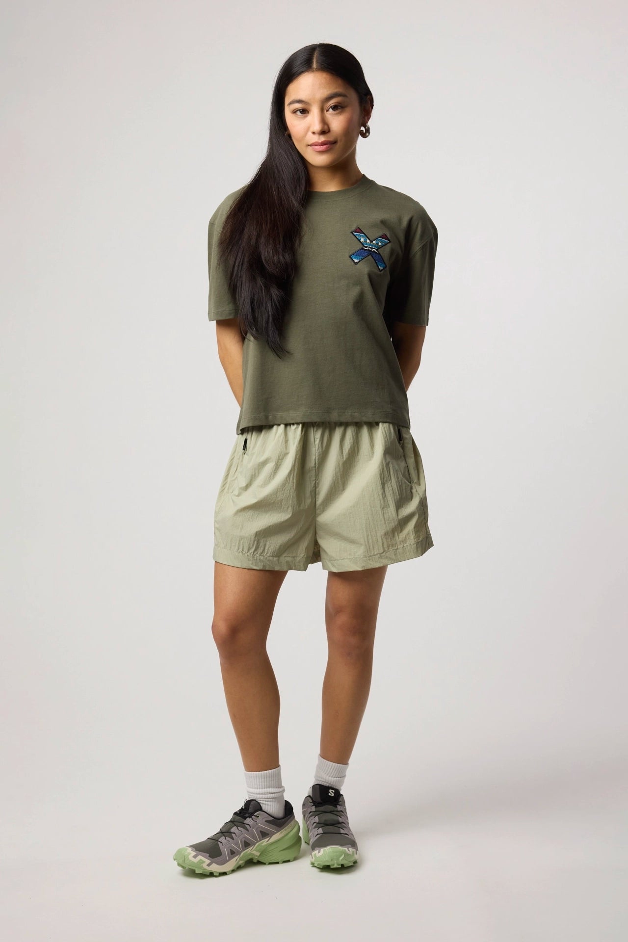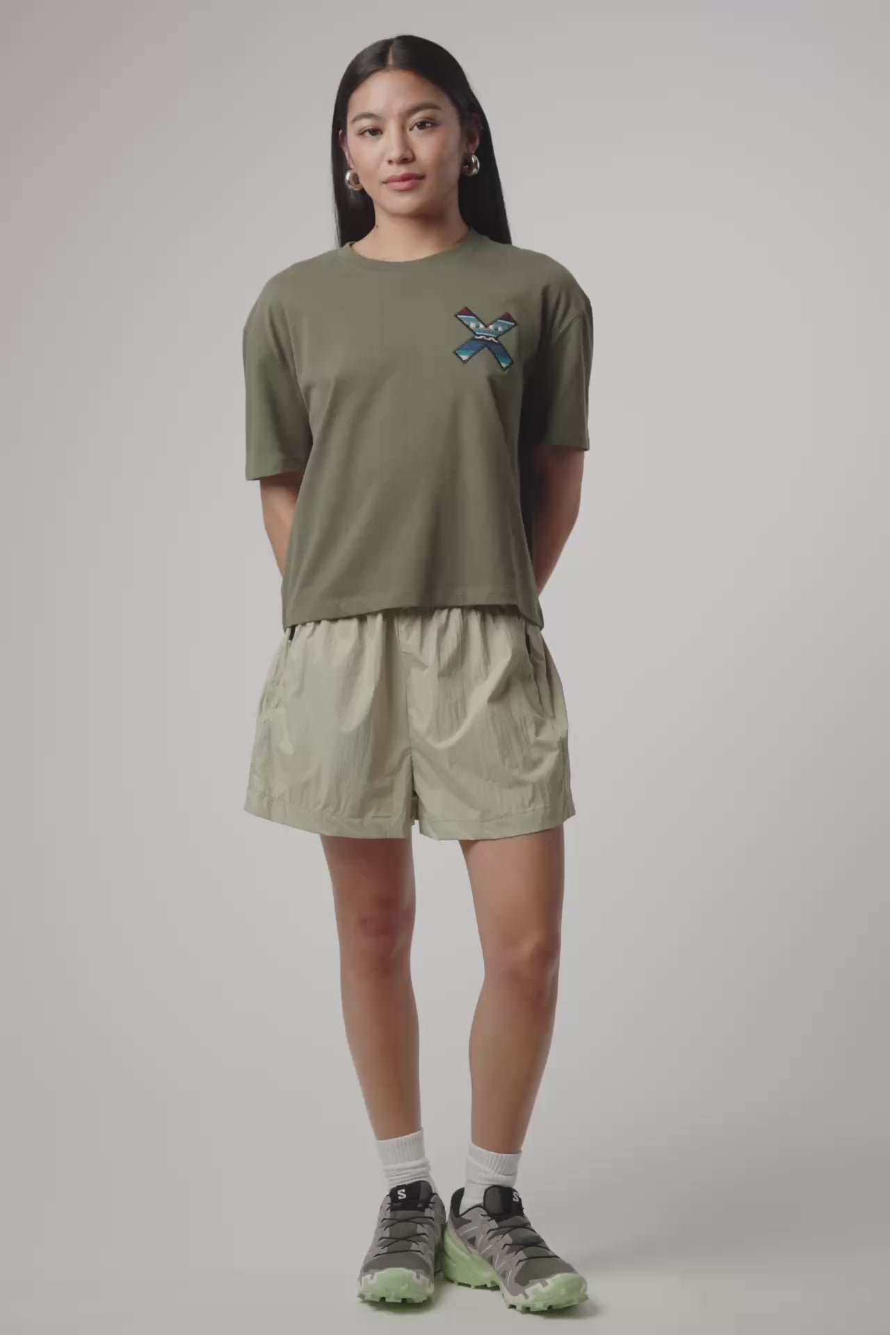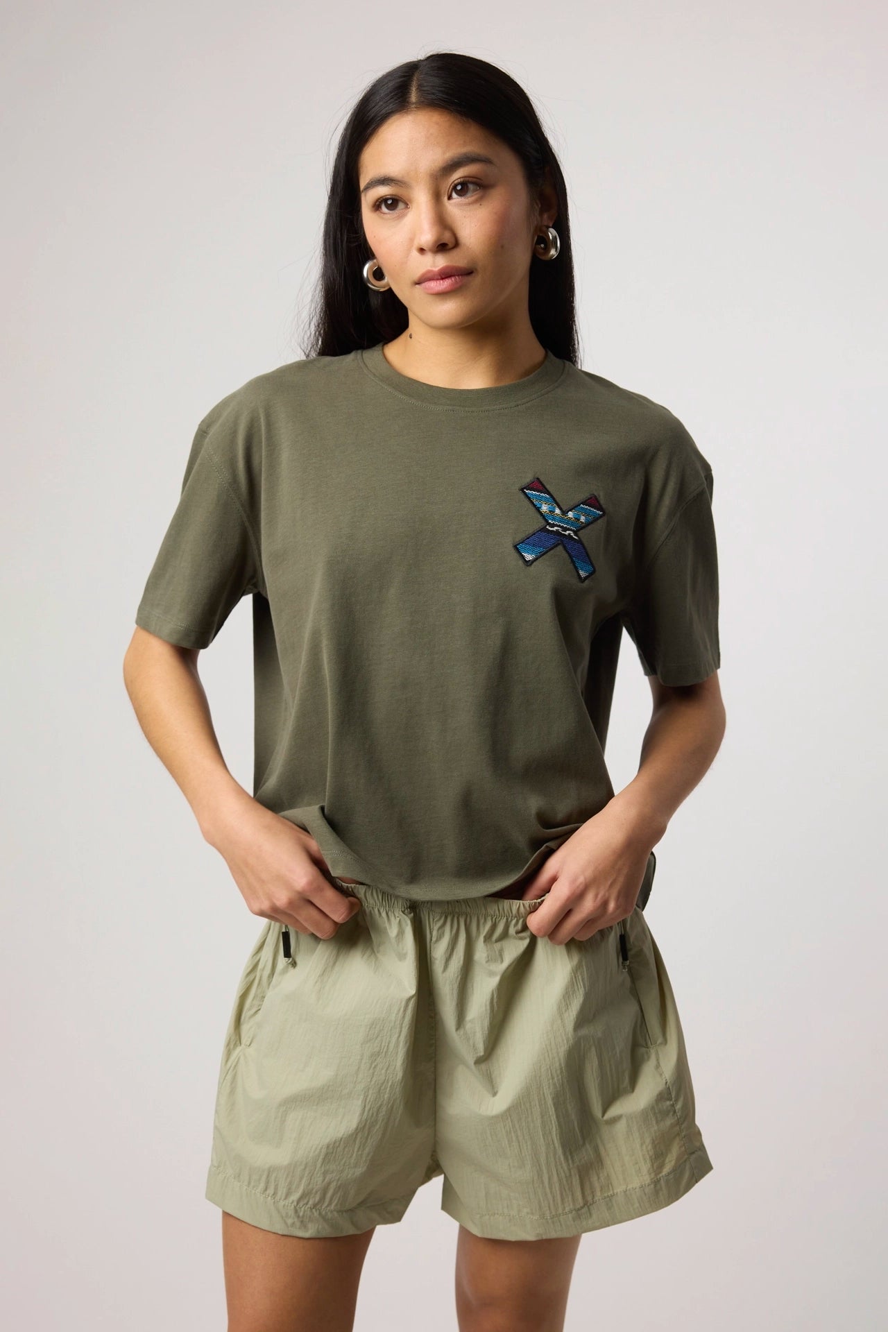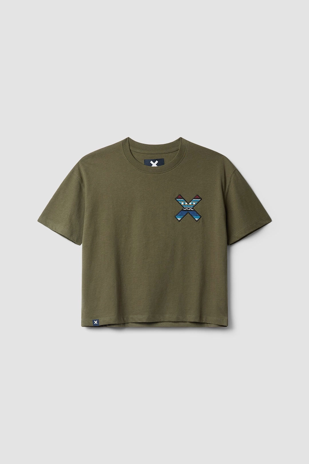 T-shirt with our classic embroidered X: front on the chest and back on the back. Made with 100% organic cotton and crop cut.