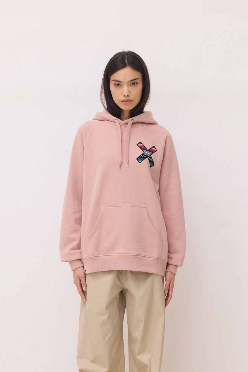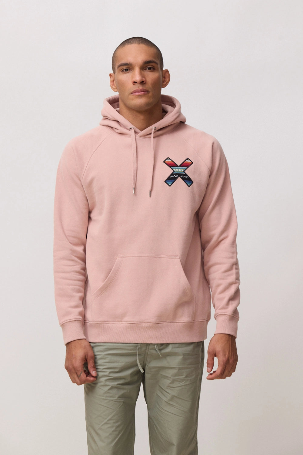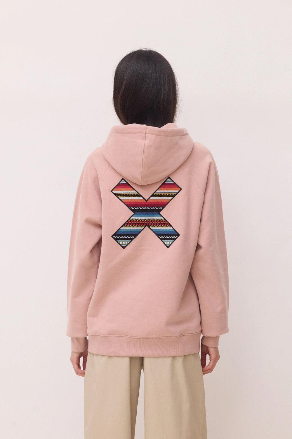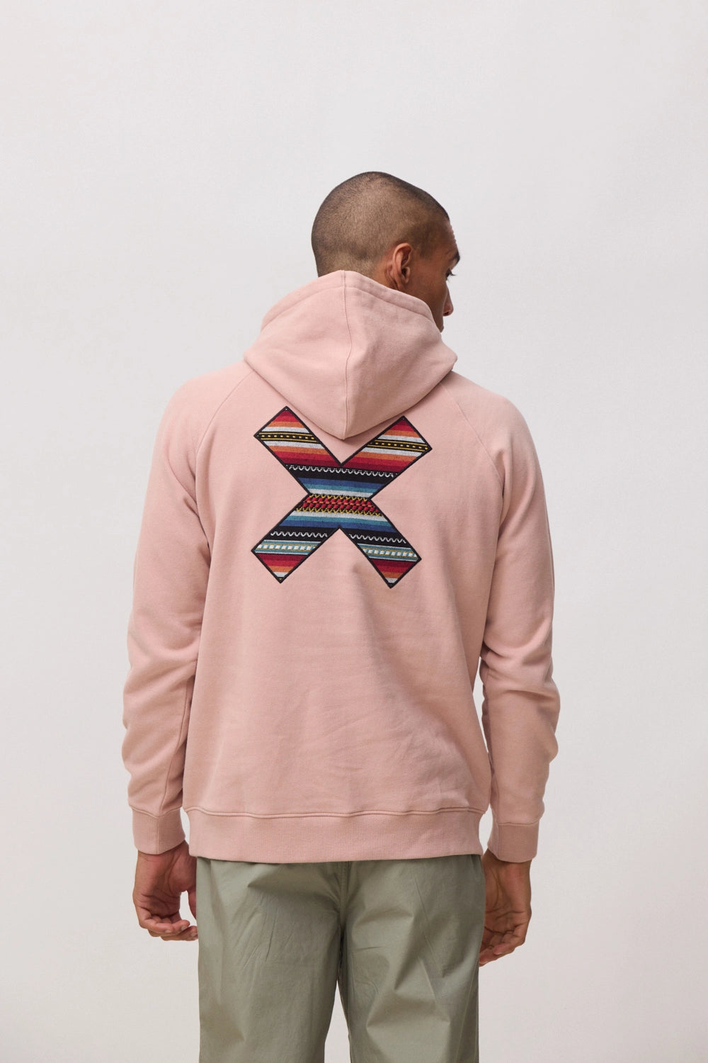 Hoodie with our classic embroidered X: front on the chest and back on the back. Lower central front pocket with opening on both sides. Made with 100% organic cotton and regular fit cut.