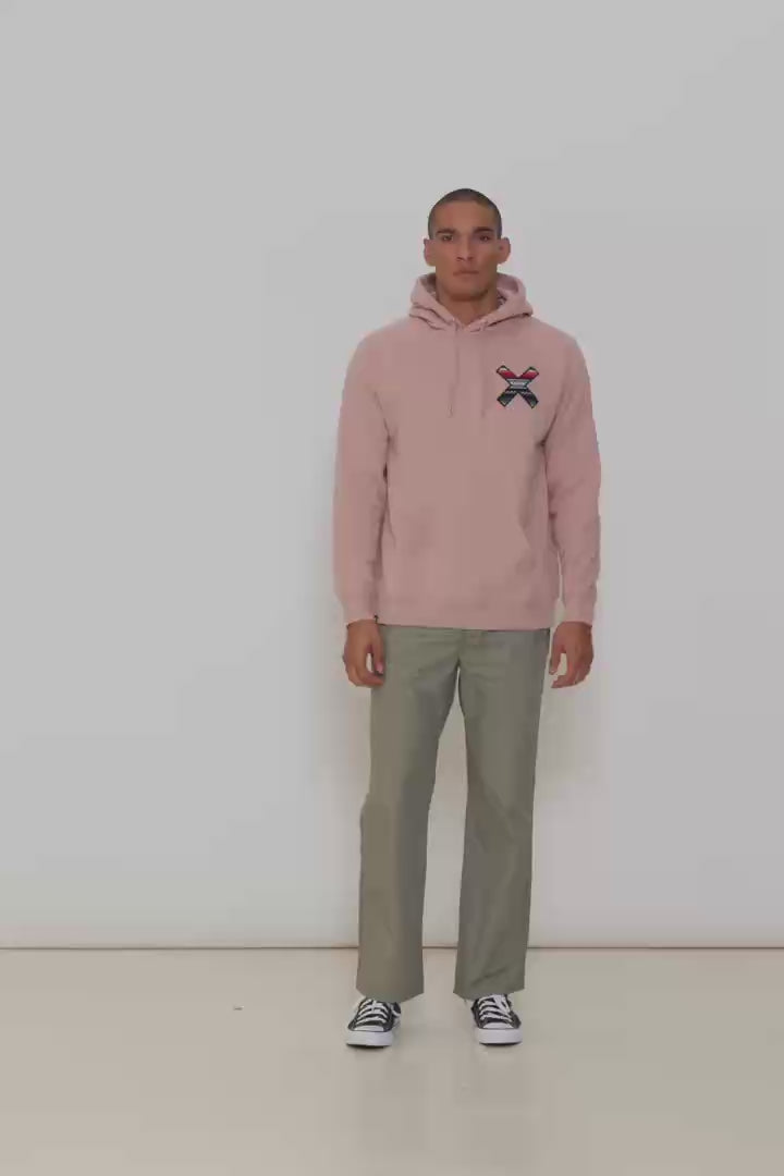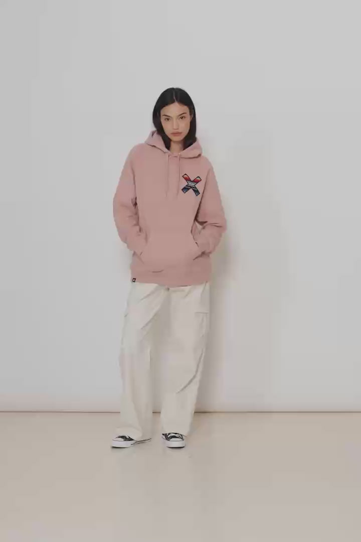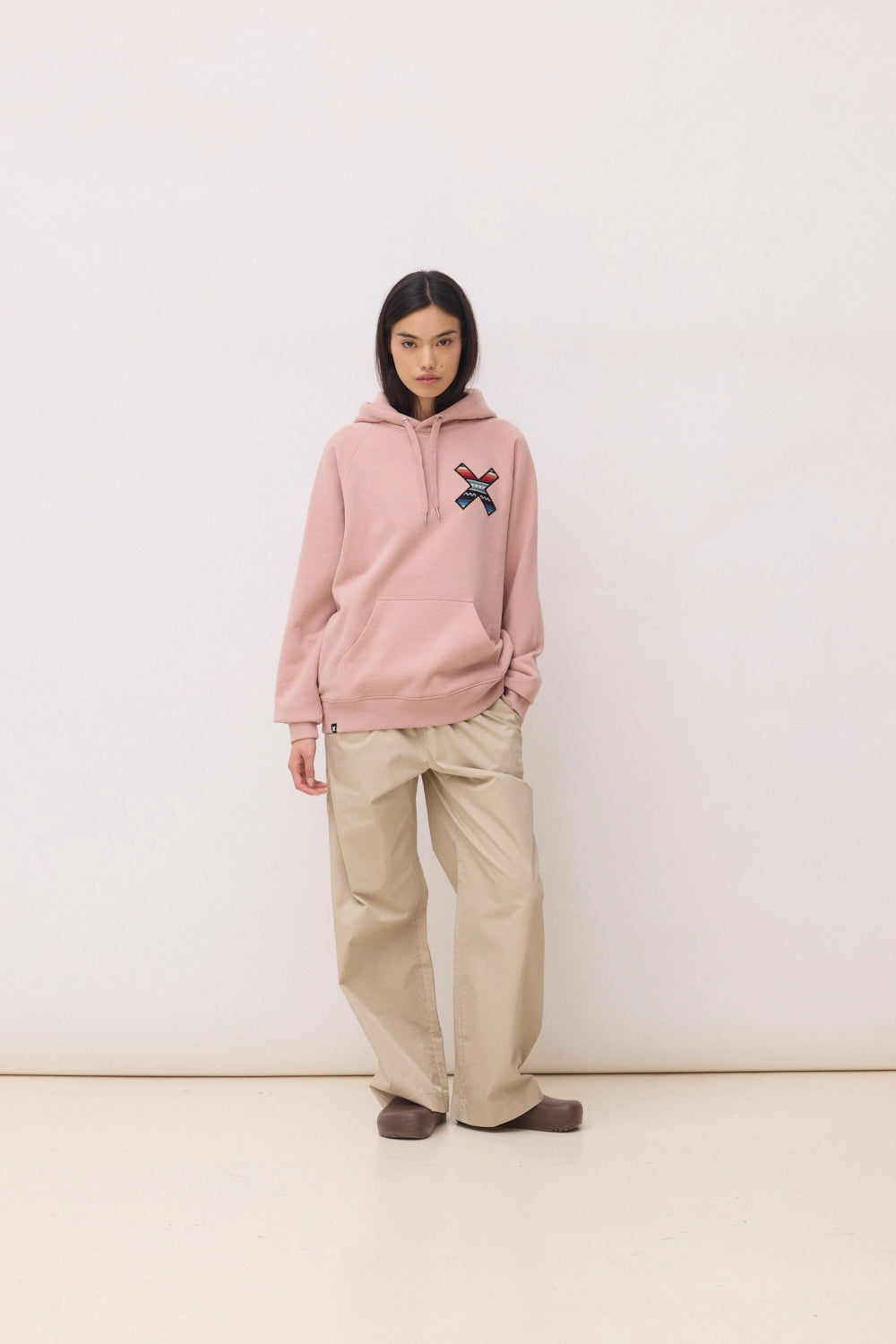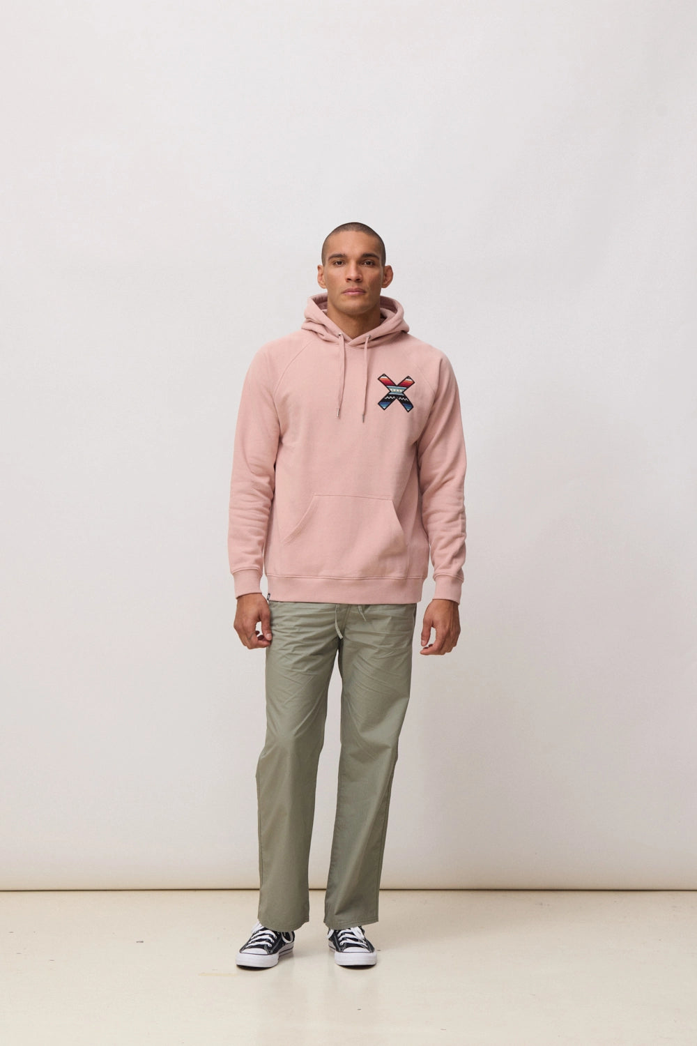 Hoodie with our classic embroidered X: front on the chest and back on the back. Lower central front pocket with opening on both sides. Made with 100% organic cotton and regular fit cut.