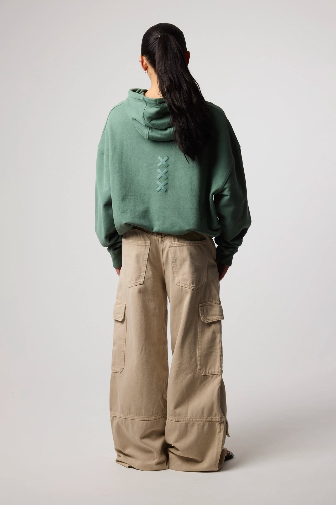 Oversized hoodie with front and back print made of 100% organic cotton.