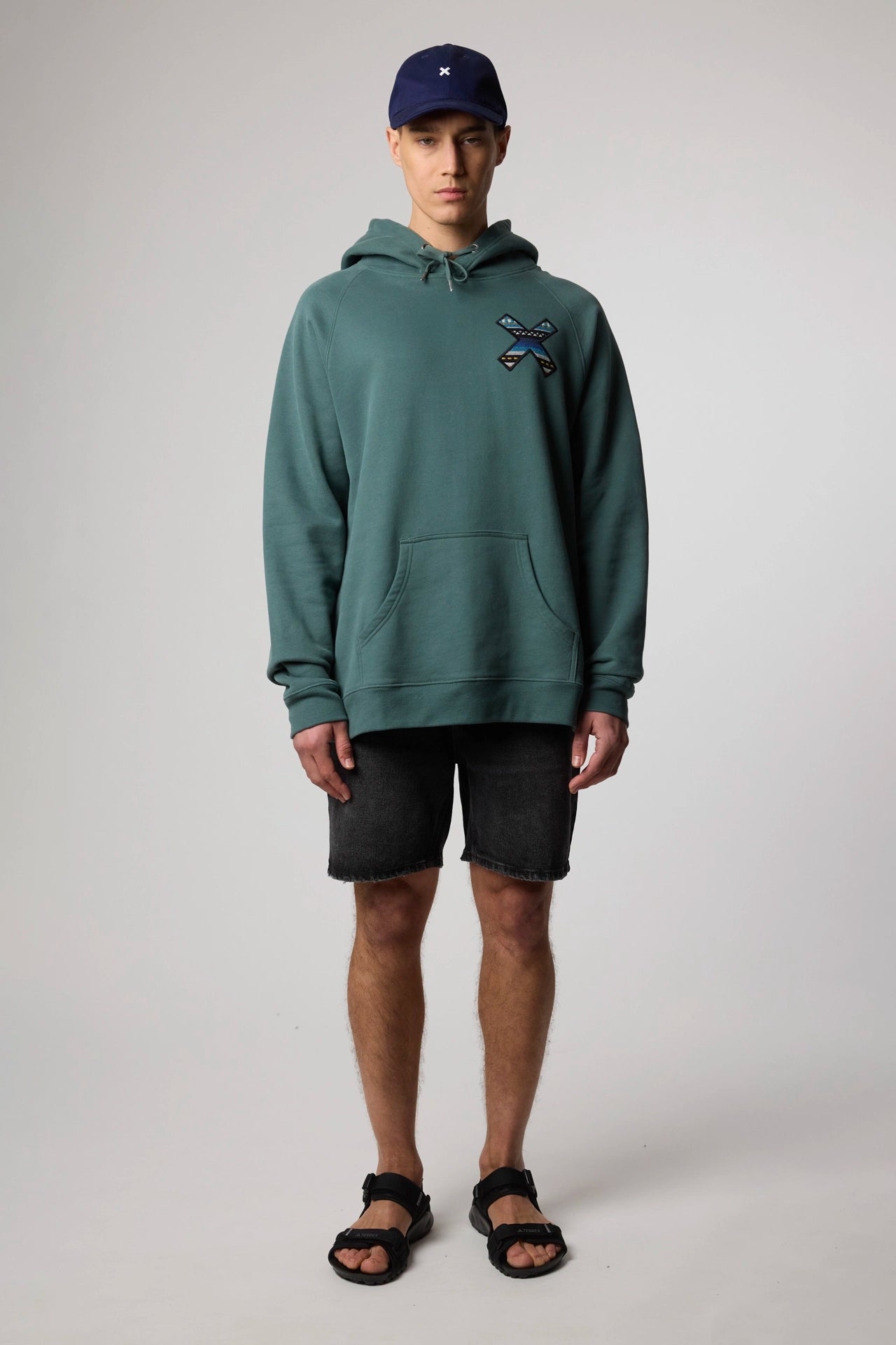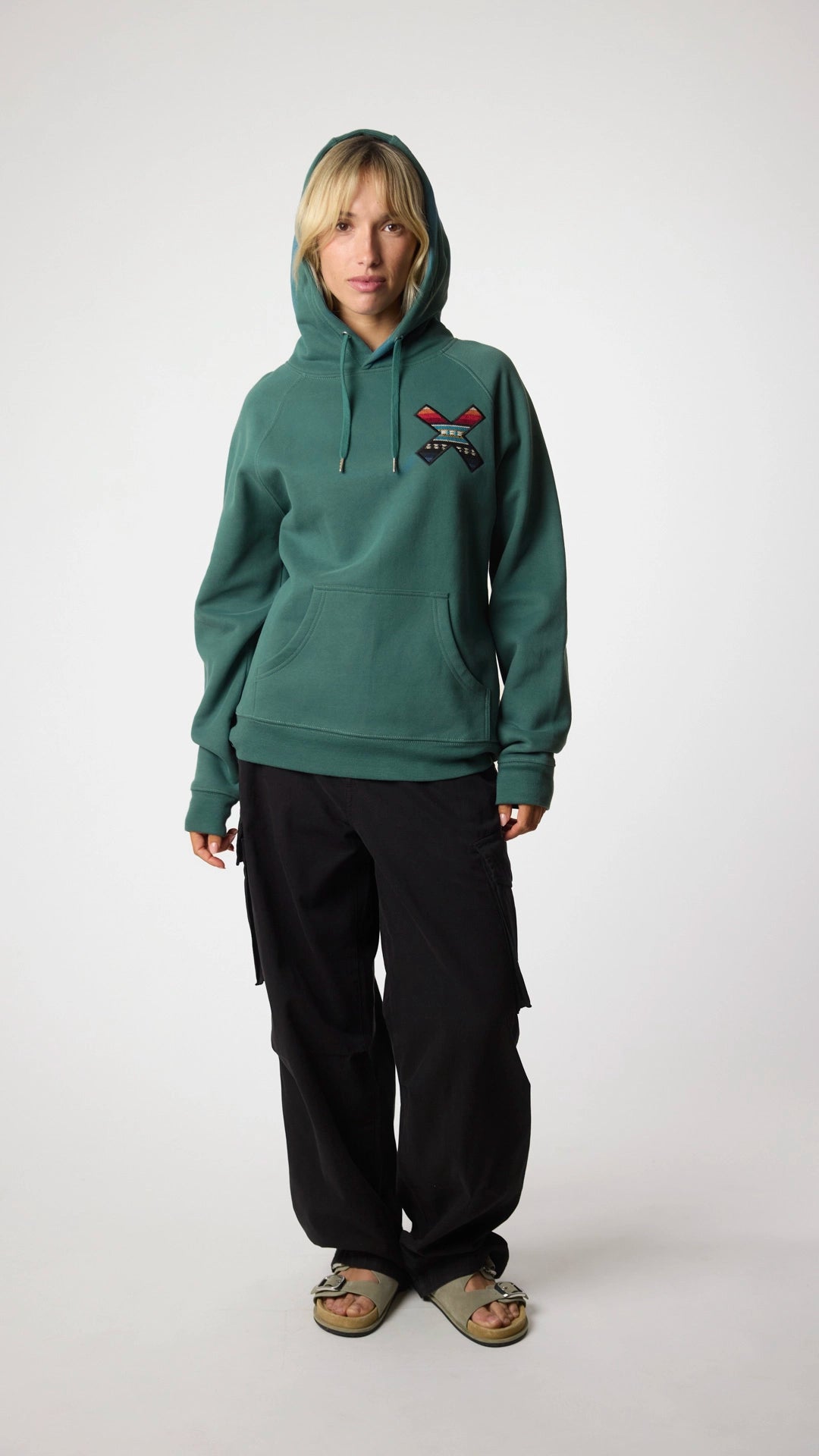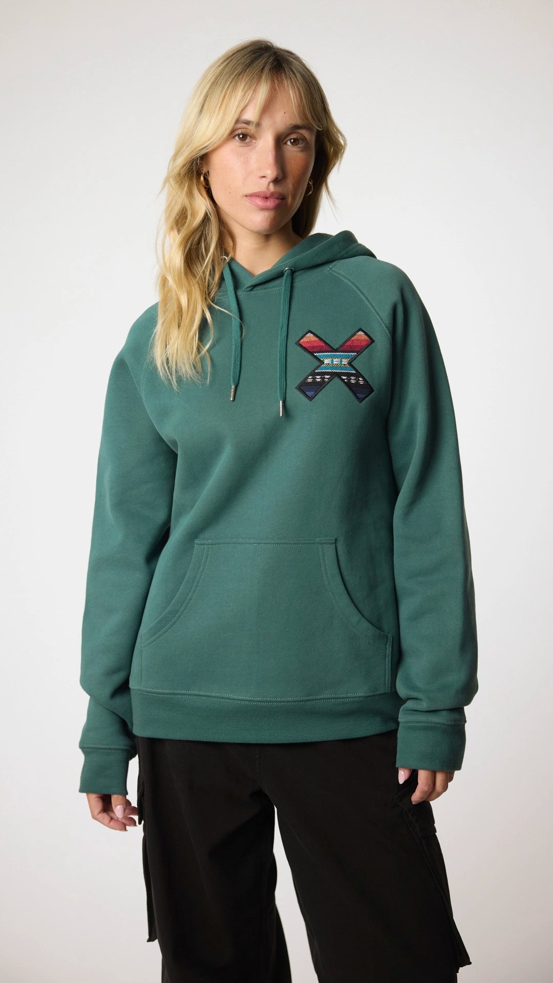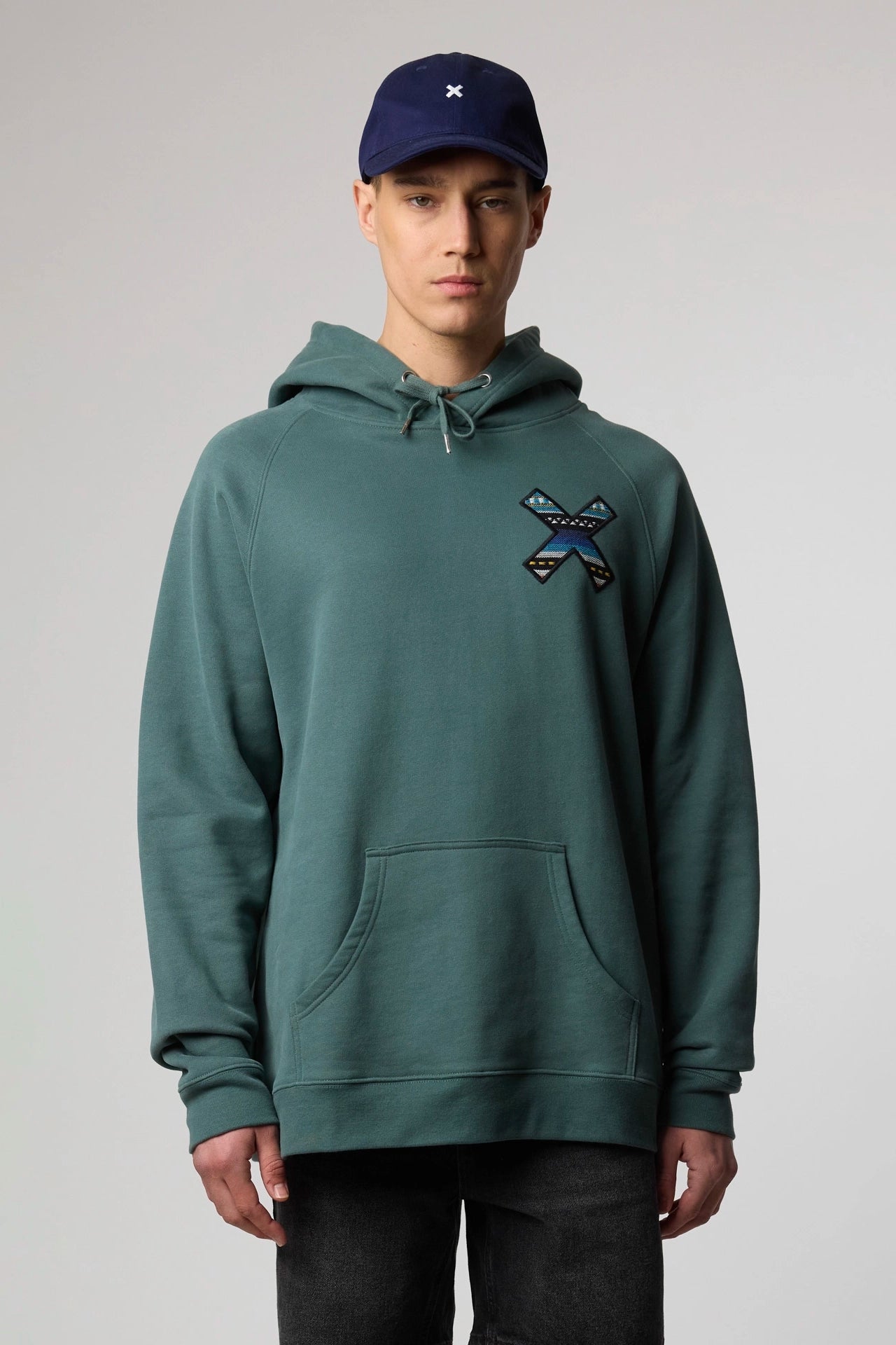 100% organic cotton hoodie with our classic embroidered X.