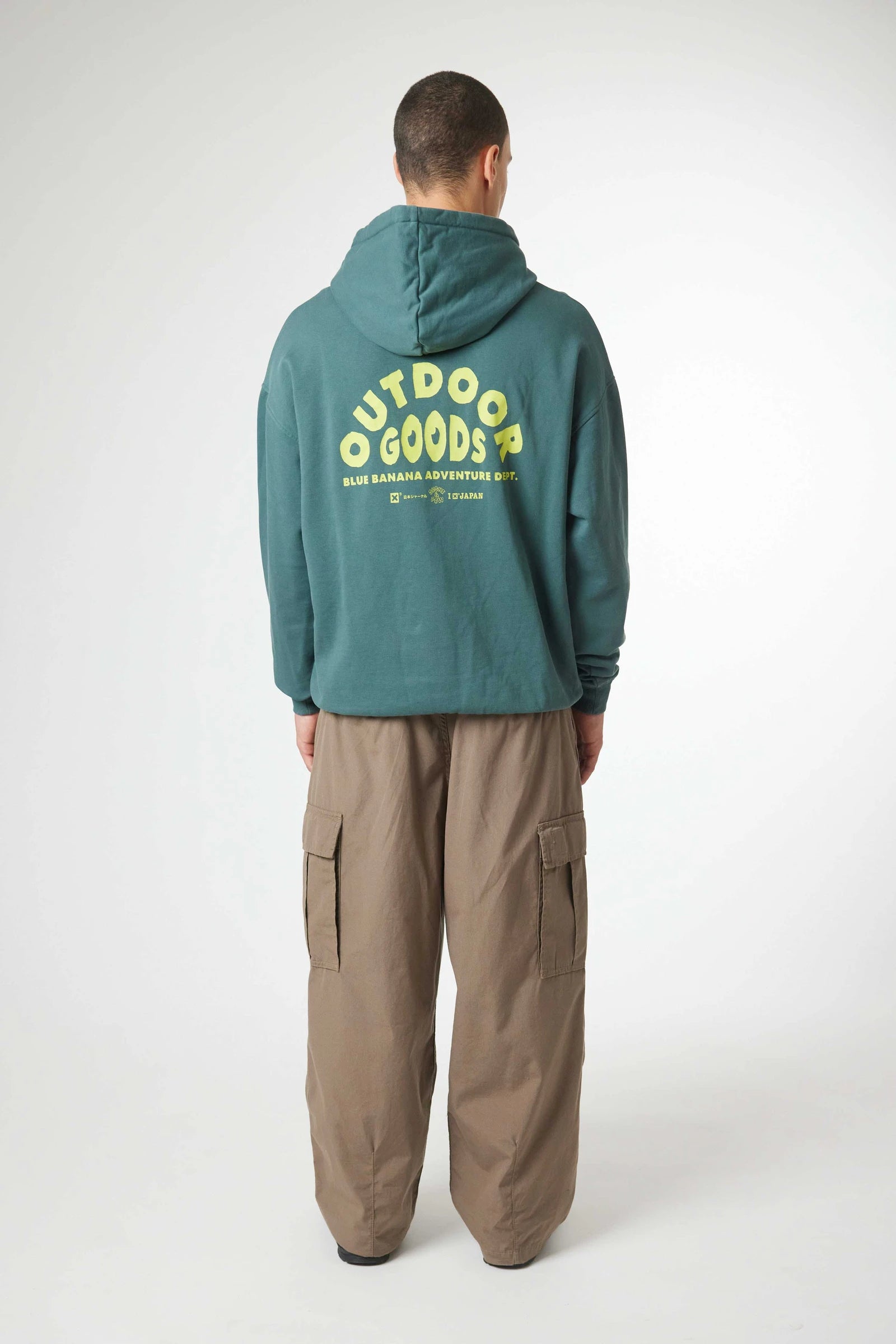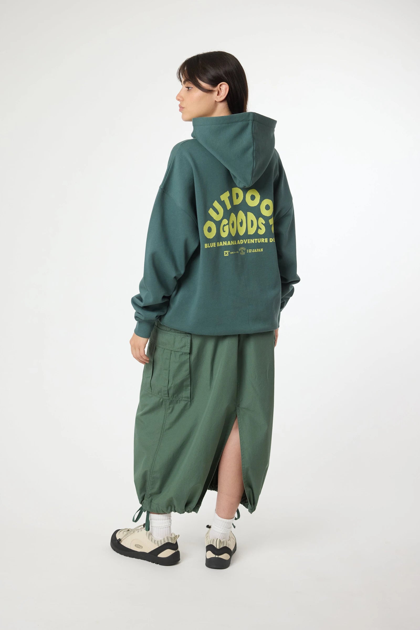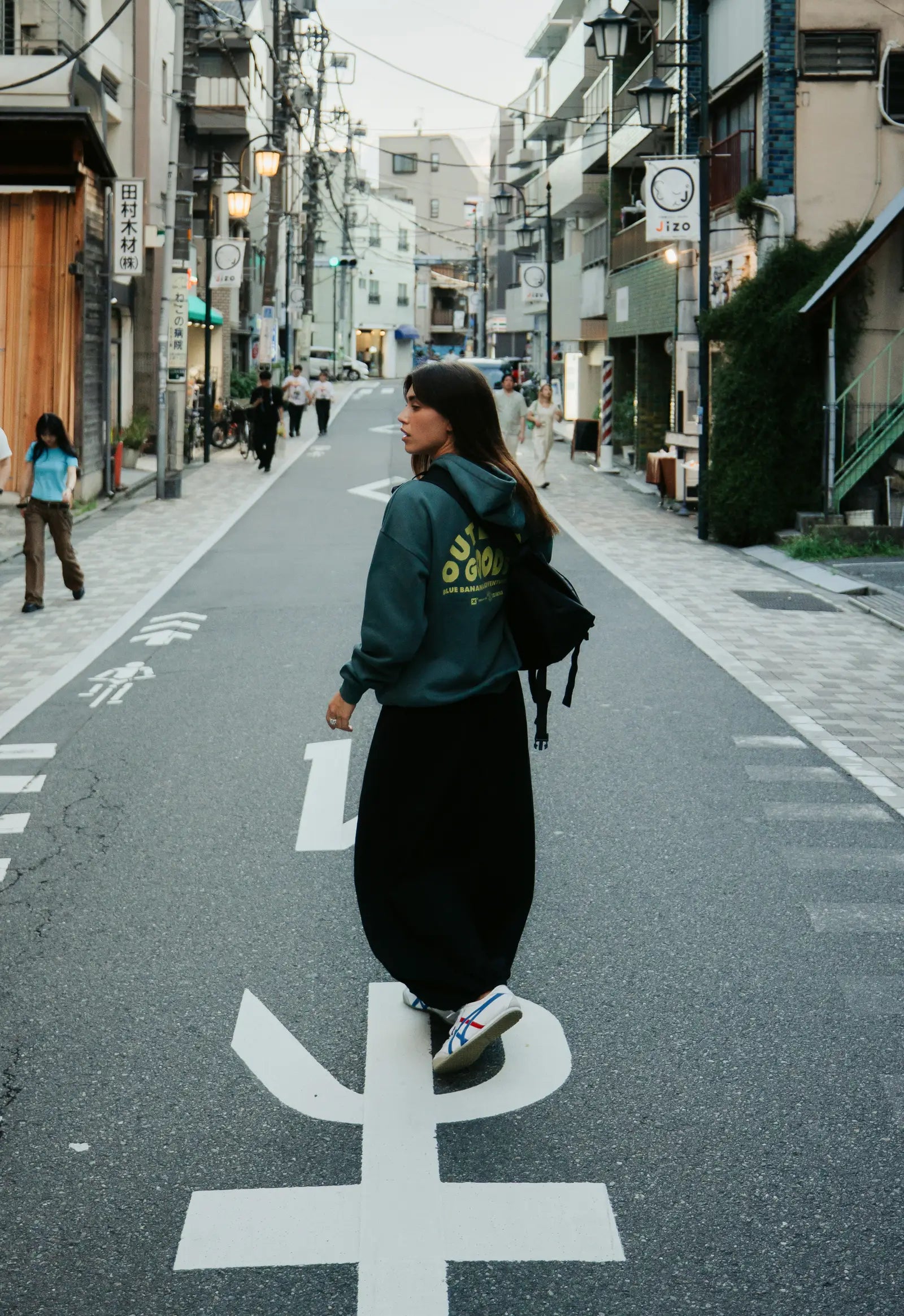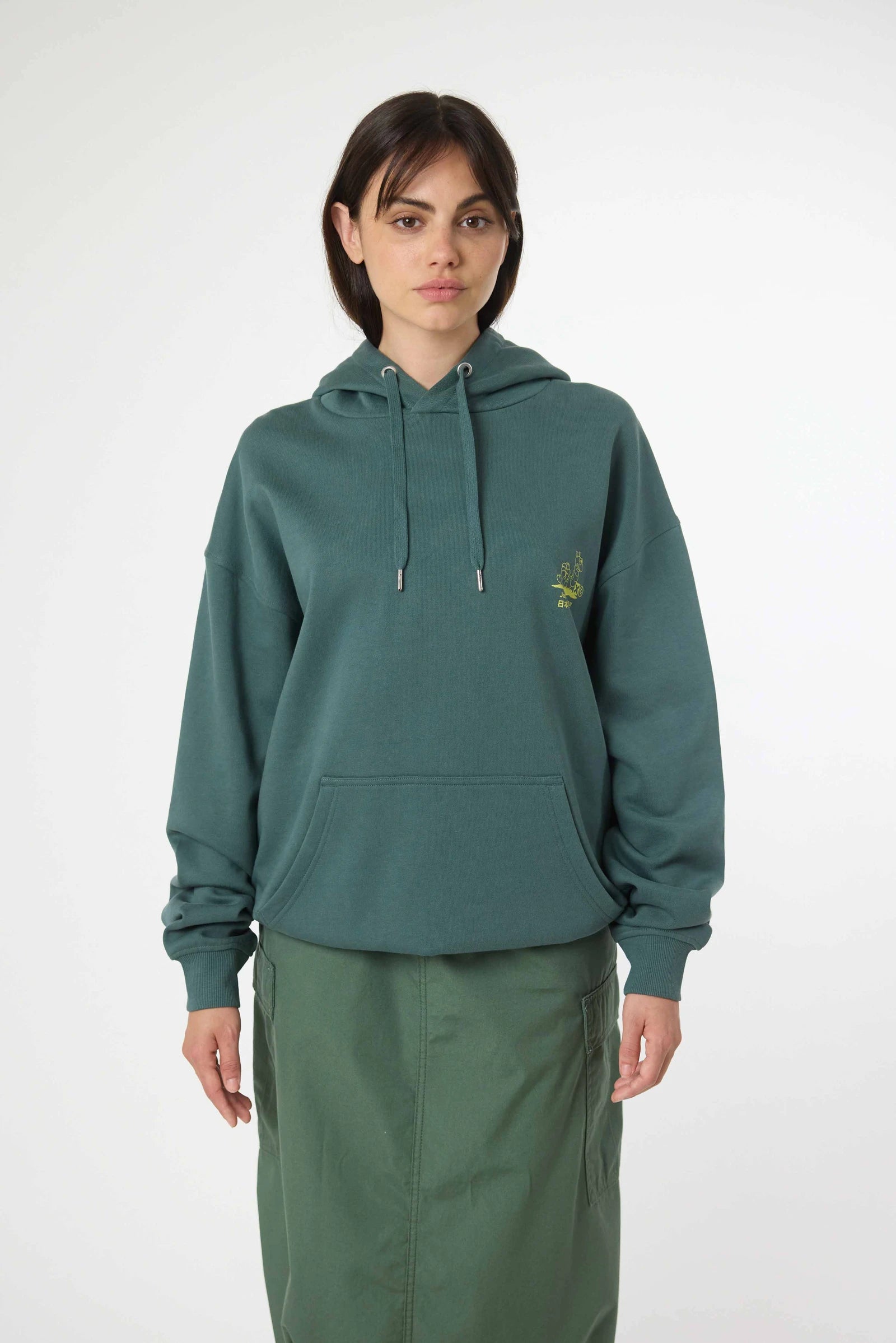 Hoodie with front print on upper left side and central back print. Lower front pocket with openings on both sides. Made from 100% organic cotton, oversize fit.
