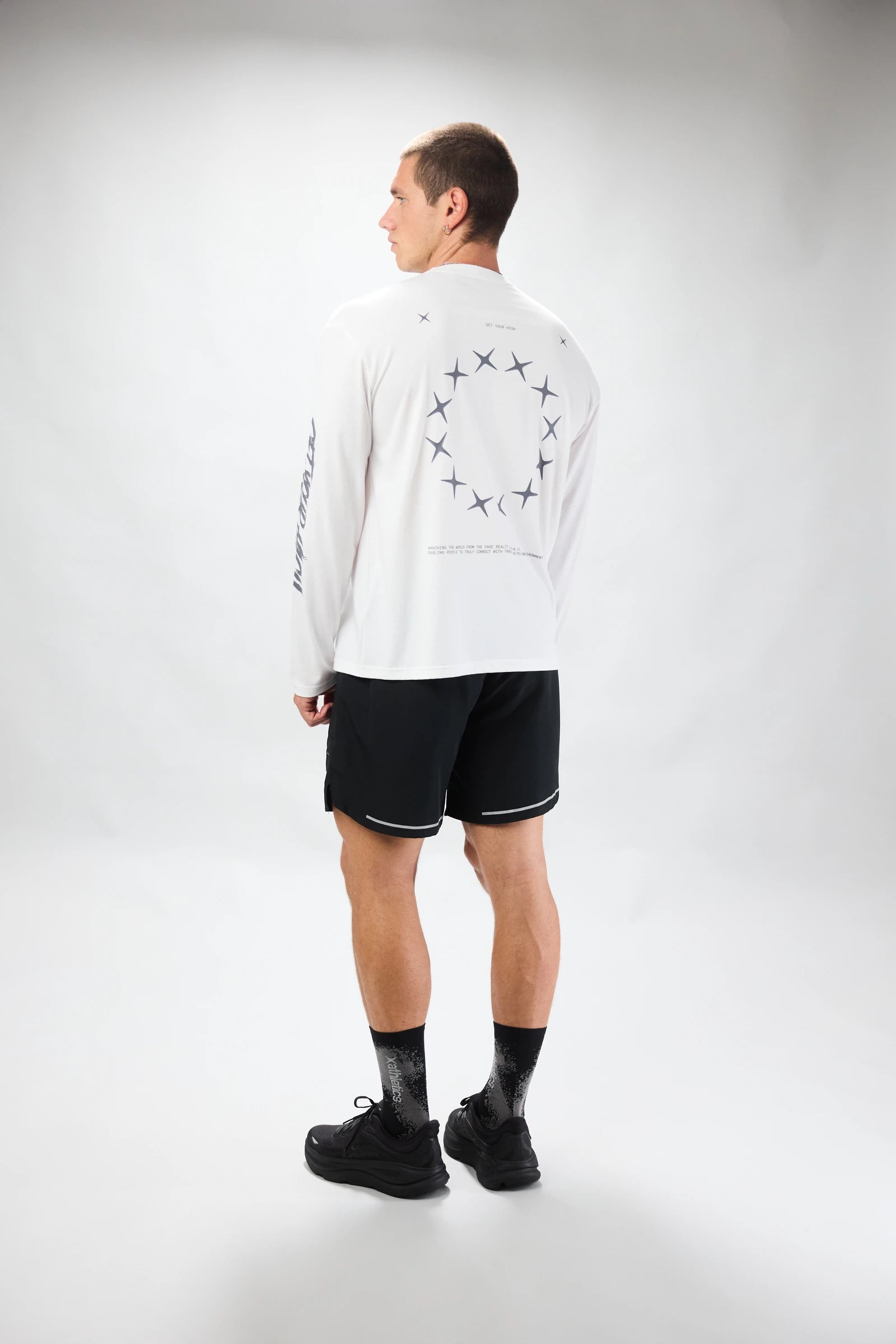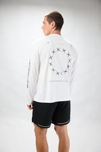 Long-sleeved sports T-shirt made from cotton and polyester. Front and back central print.