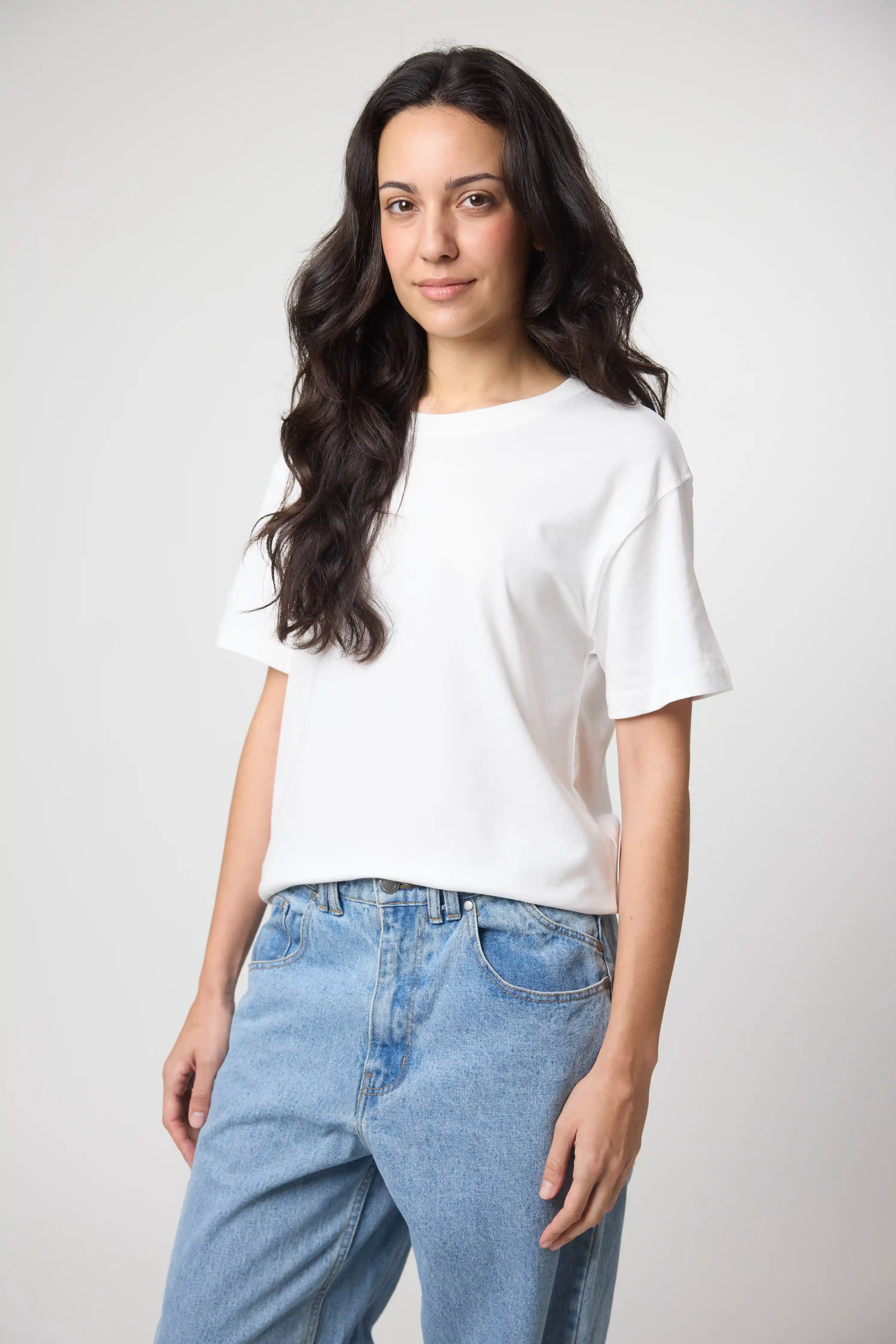 T-shirt with decorative embroidered label on the lower left. Made from 100% organic cotton with a regular fit.