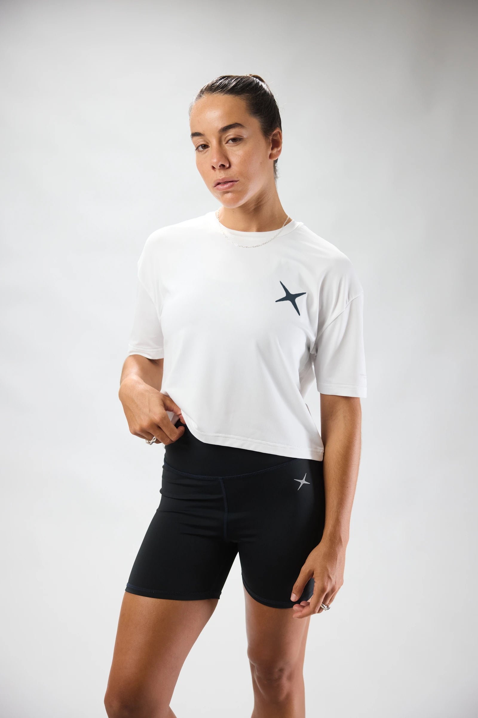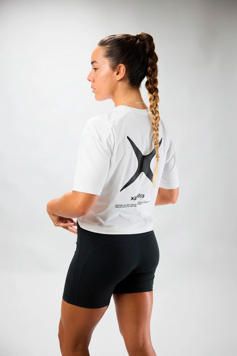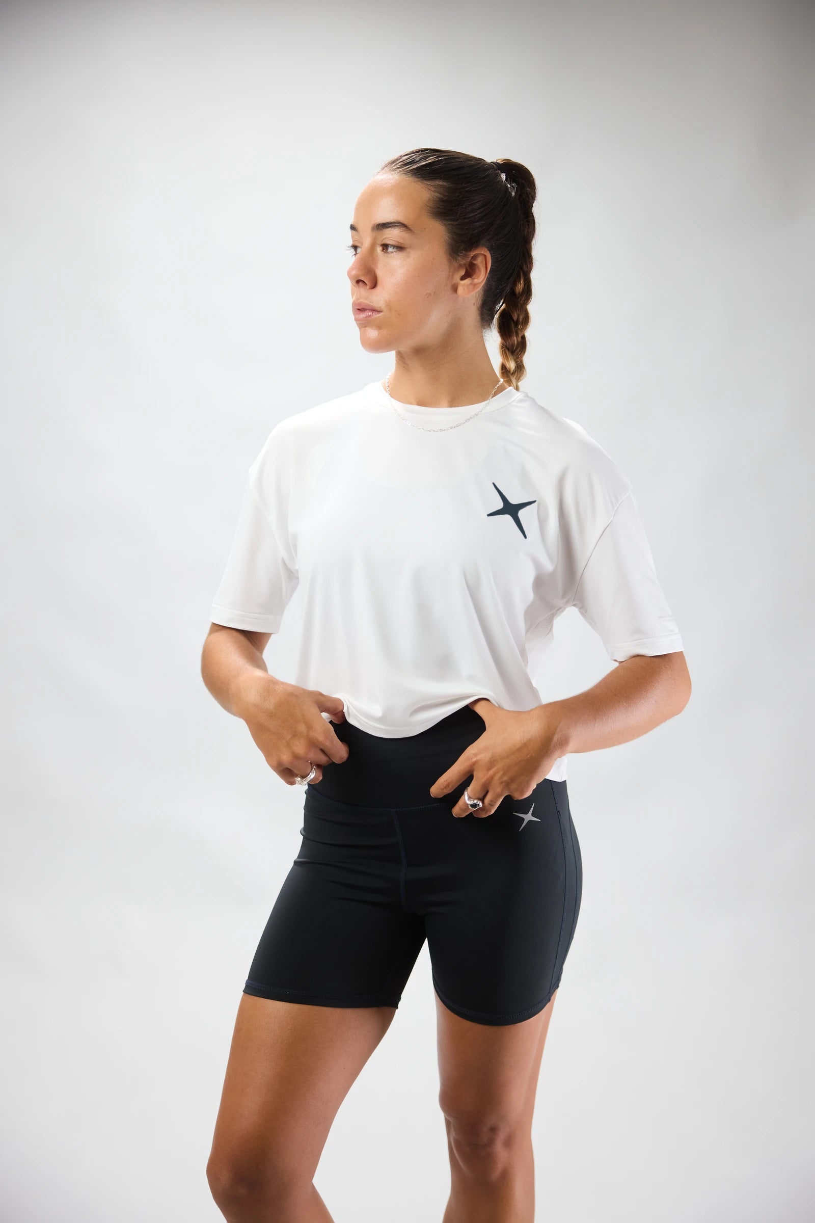 Sports T-shirt made from recycled polyester, quick-dry, UV50, and water-repellent. Reflective logo on the front center and back center.