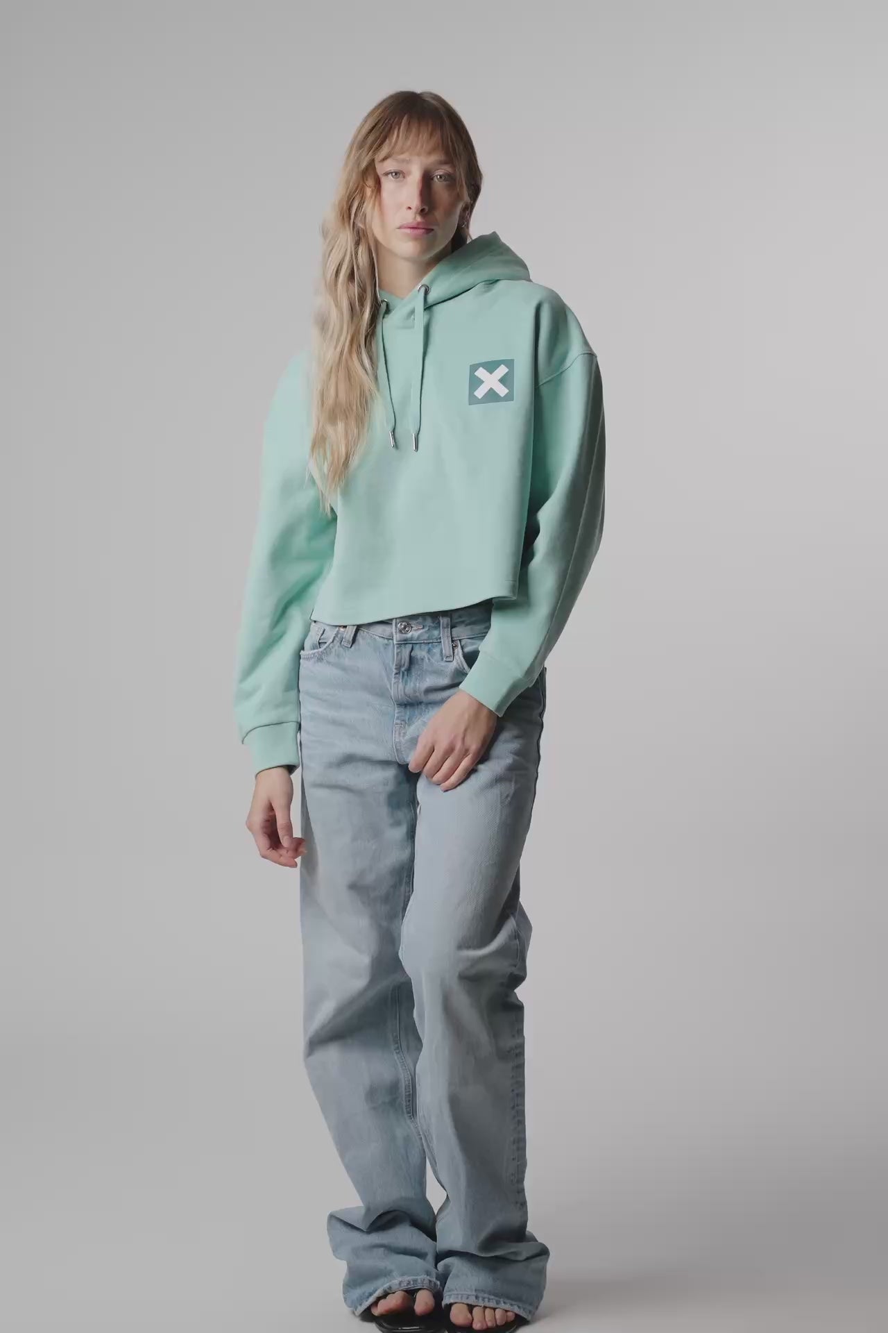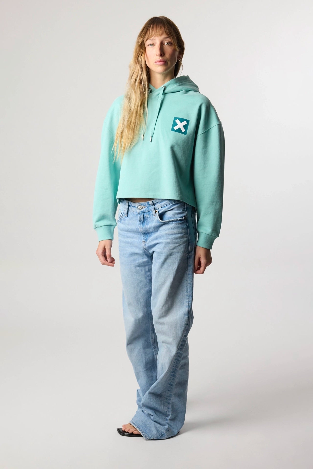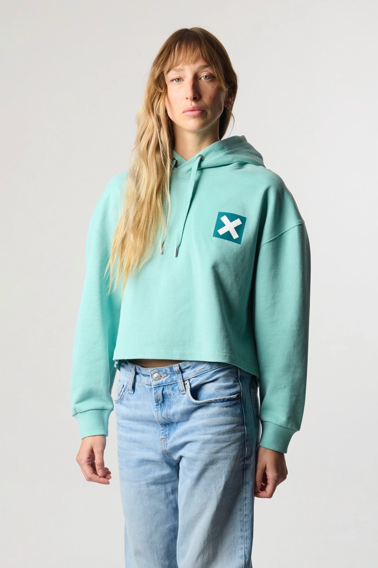 Sudadera con capucha con nuestra X en la parte delantera y trasera. Corte crop.