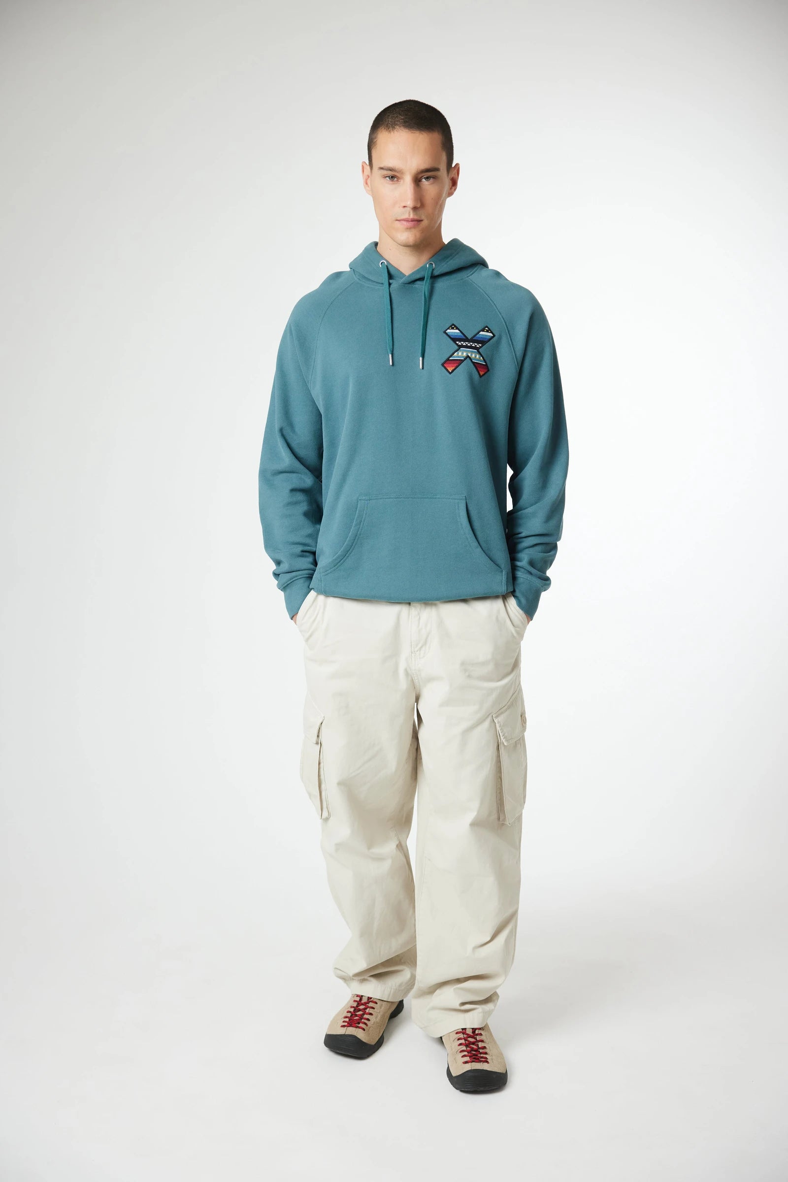 Sudadera con capucha con nuestra clásica X bordada: delantera en el pecho y trasera en la espalda. Confeccionada con 100% algodón orgánico y corte regular fit.