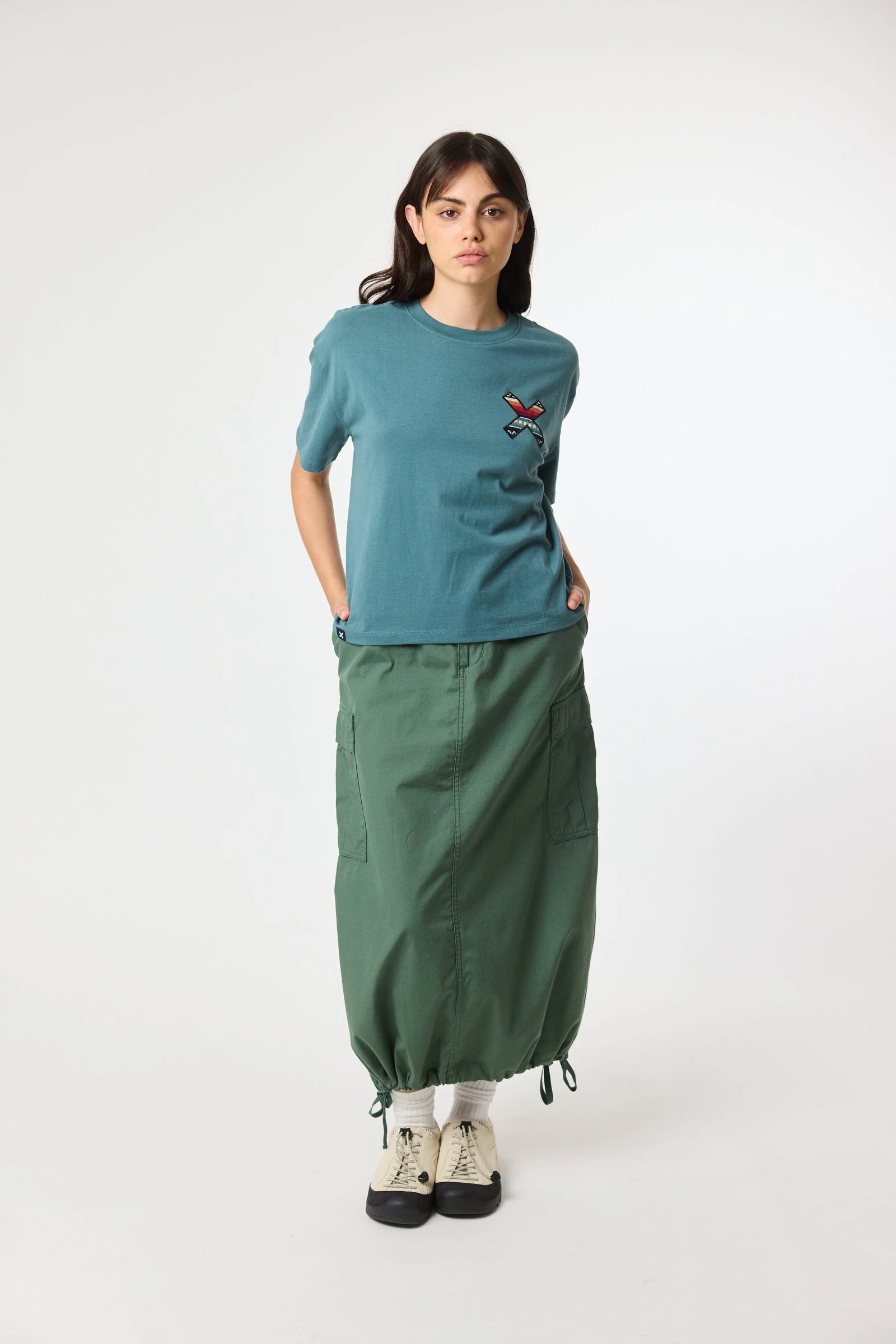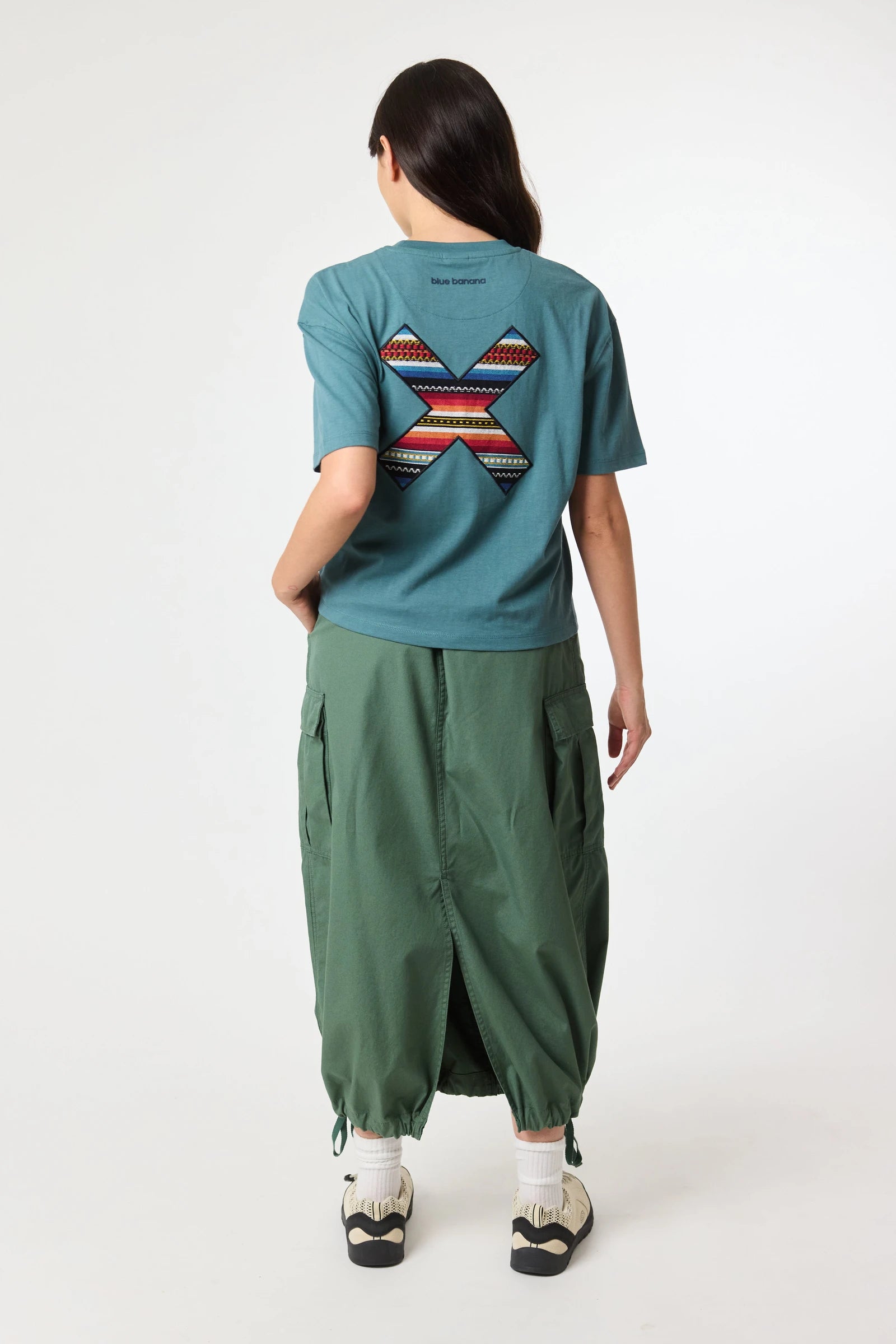 T-shirt con la nostra classica X ricamata: frontale sul petto e posteriore sulla schiena. Realizzata in cotone 100% biologico e taglio crop.