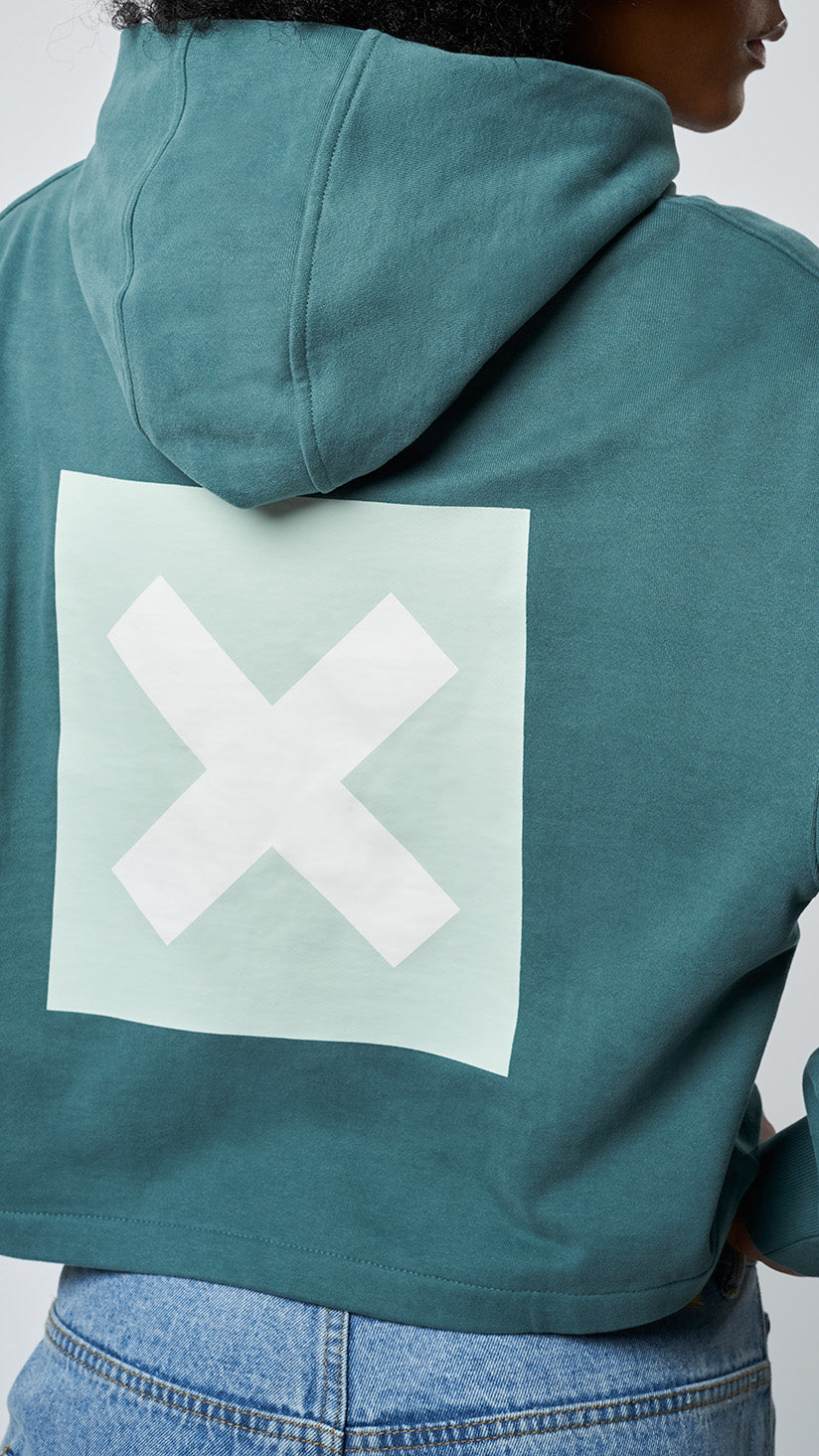 Felpa con cappuccio e stampa frontale e posteriore. Realizzata in 100% cotone biologico e vestibilità corta.