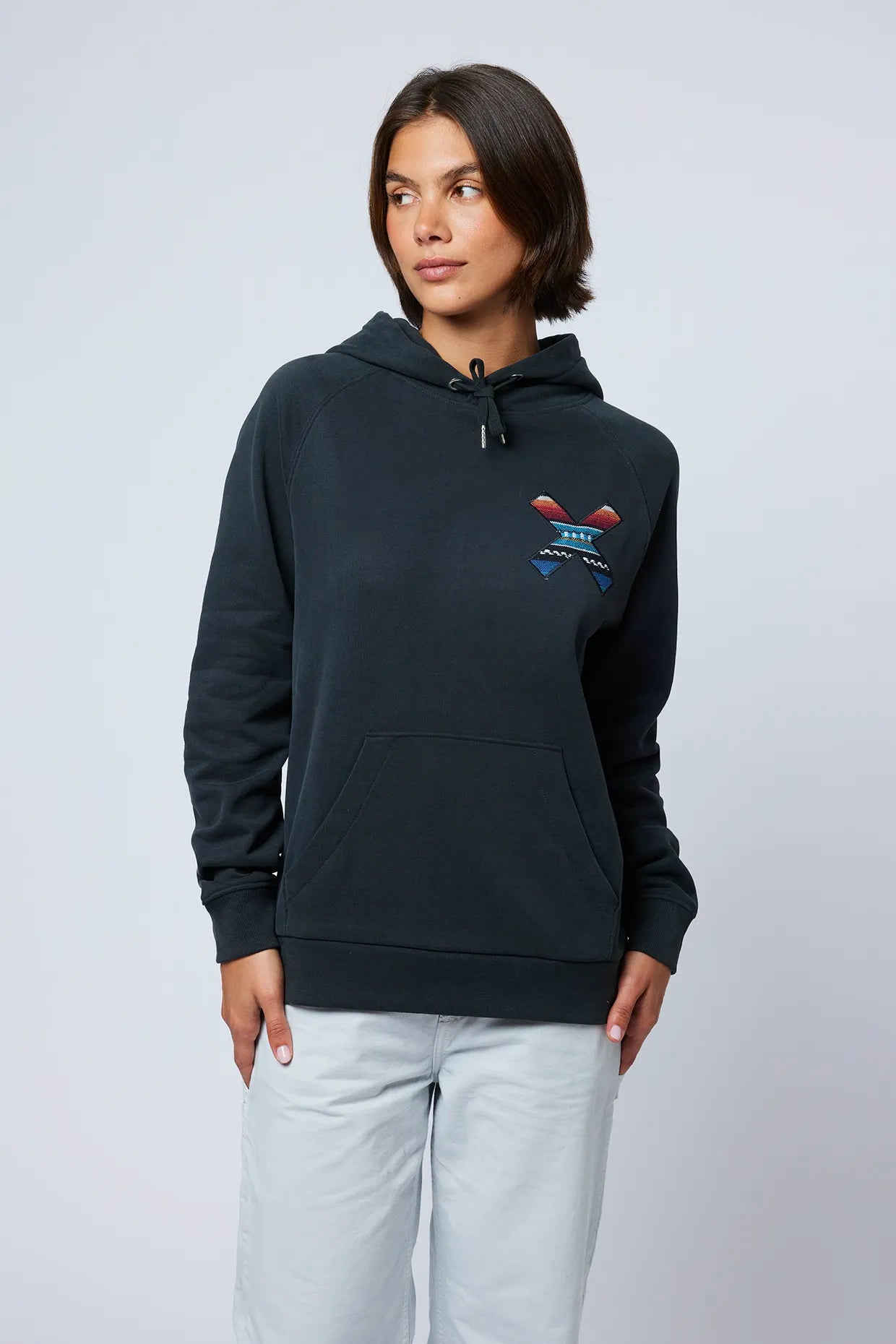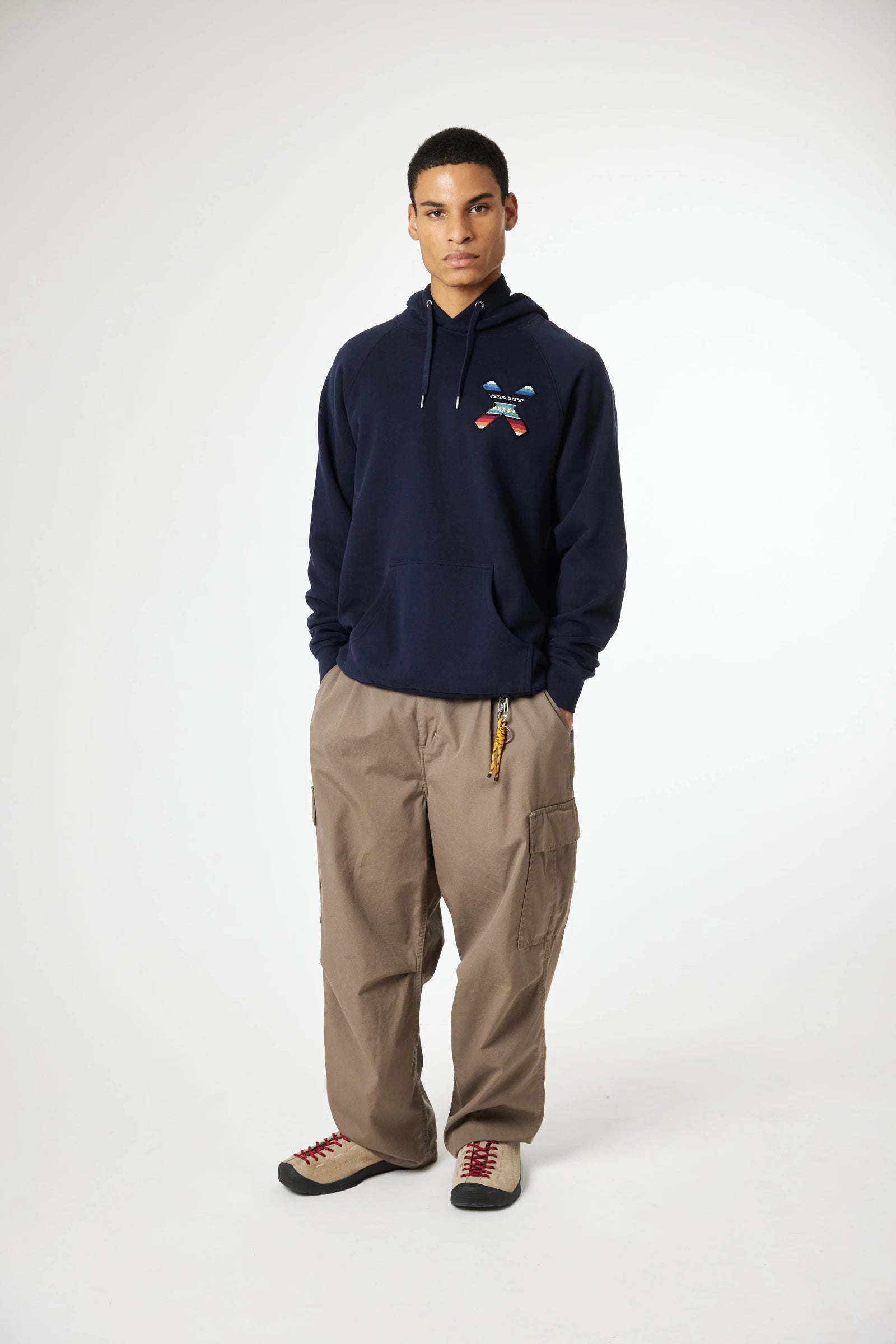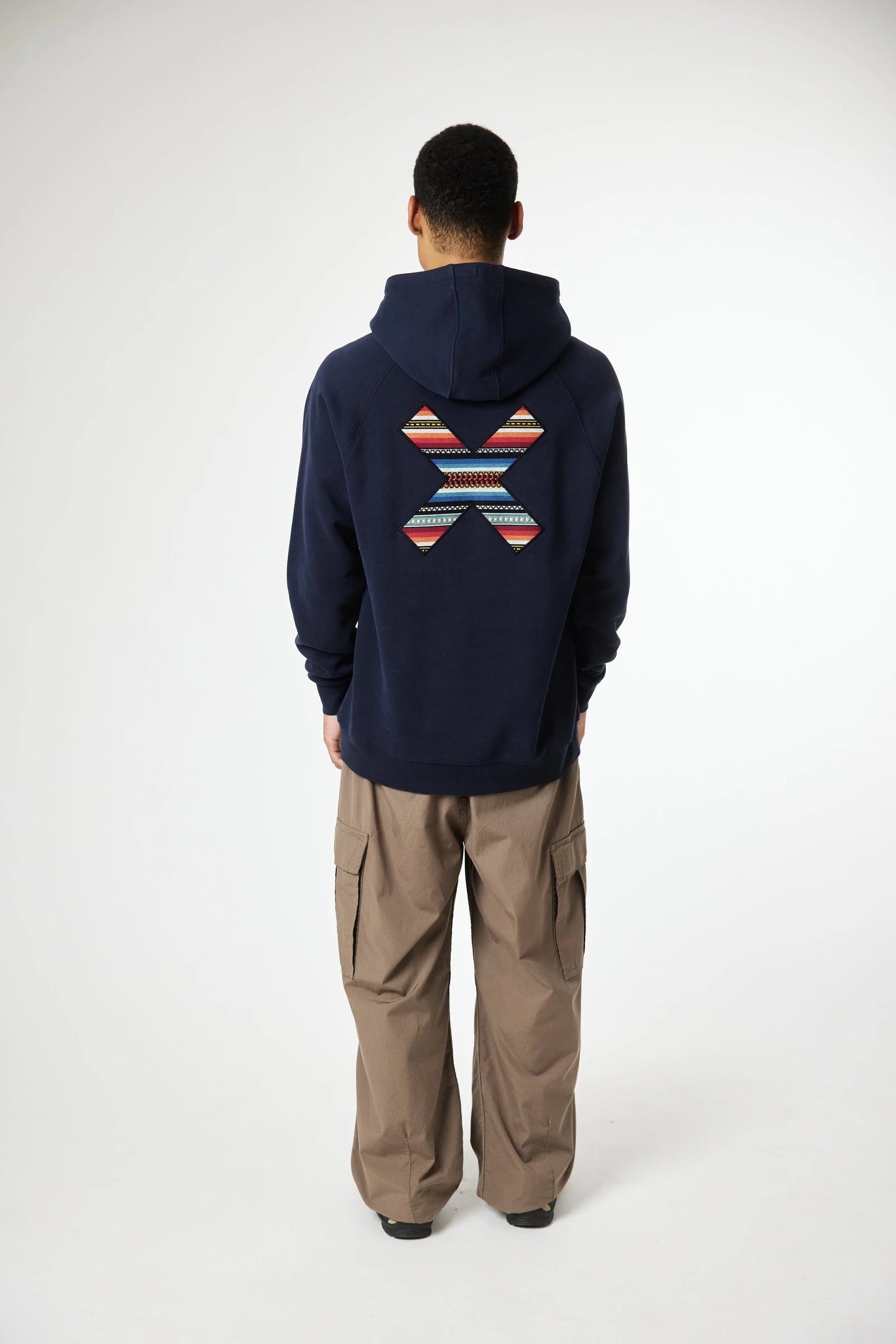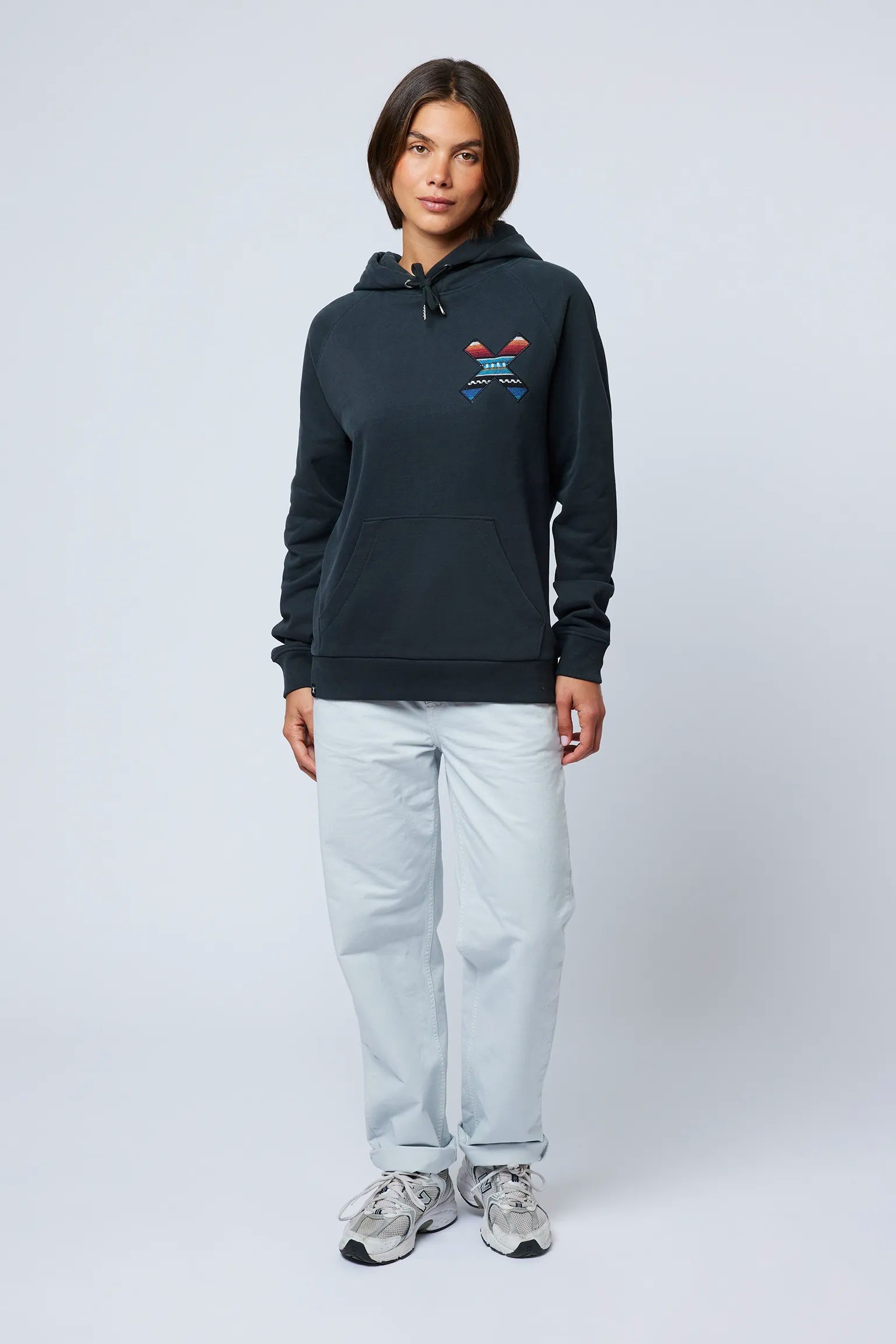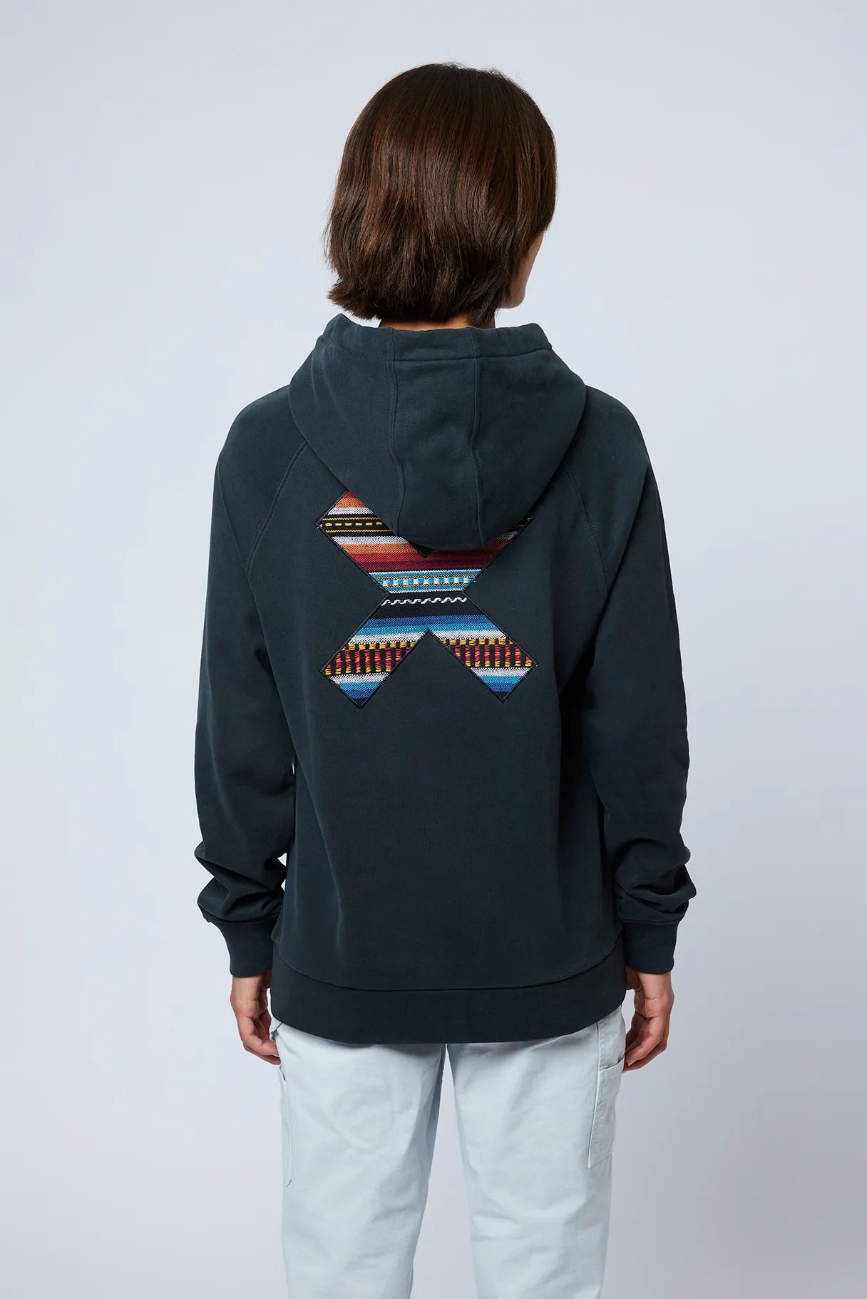 Sudadera con capucha con nuestra clásica X bordada: delantera en el pecho y trasera en la espalda. Confeccionada con 100% algodón orgánico y corte regular fit.