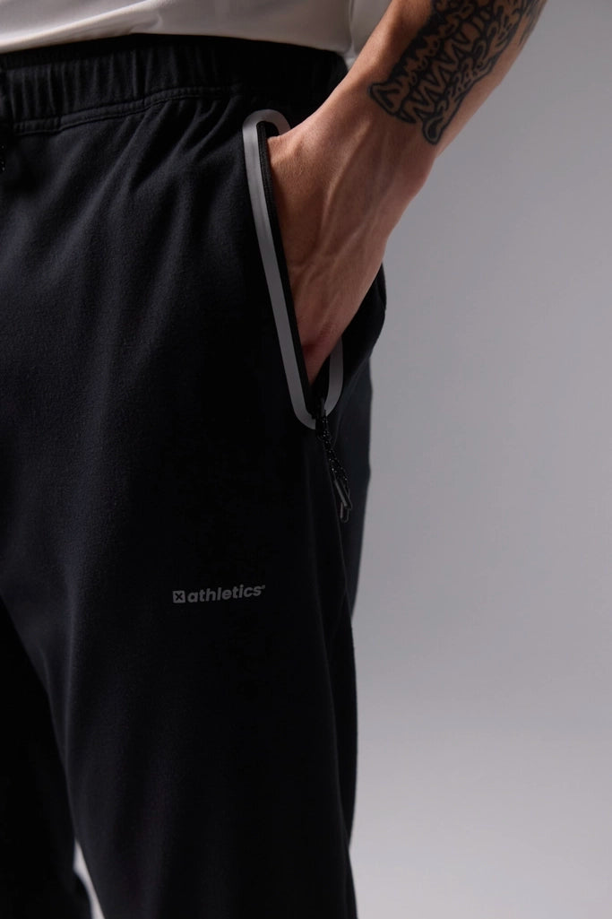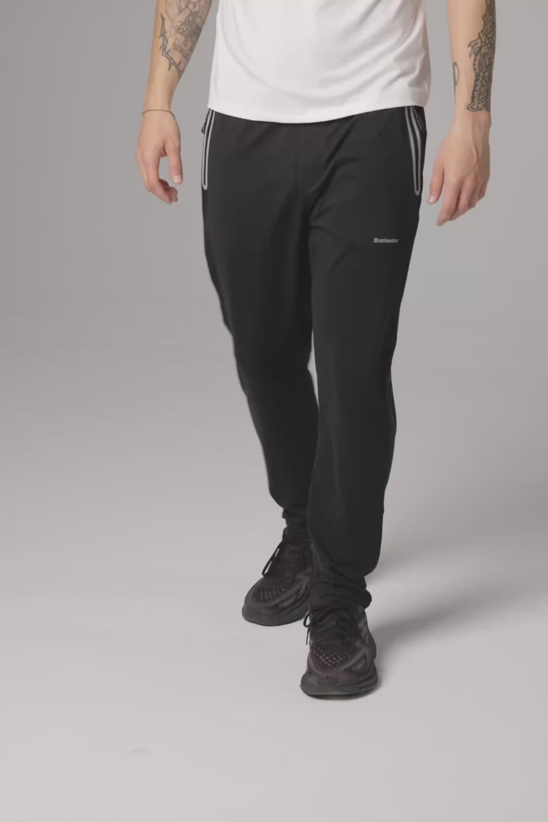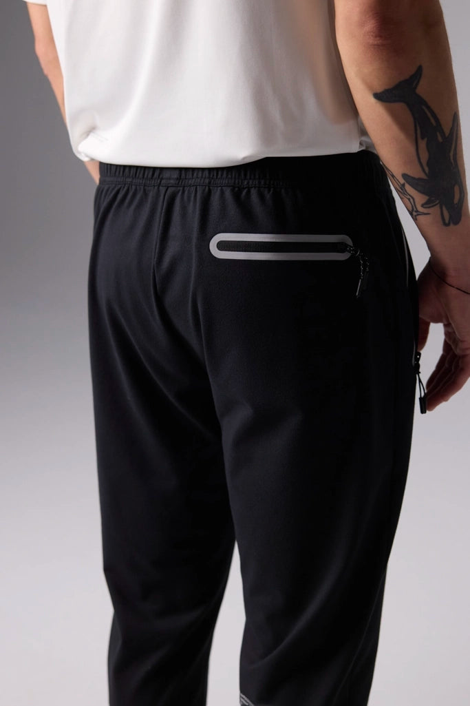 Pantaloni da tuta in poliestere ed elastan, ad asciugatura rapida, traspiranti e con protezione UV50. Vita regolabile con coulisse. Tasche laterali superiori con cerniera e una tasca posteriore in alto a destra. Logo riflettente in alto a sinistra e in basso a destra. Orlo regolabile.