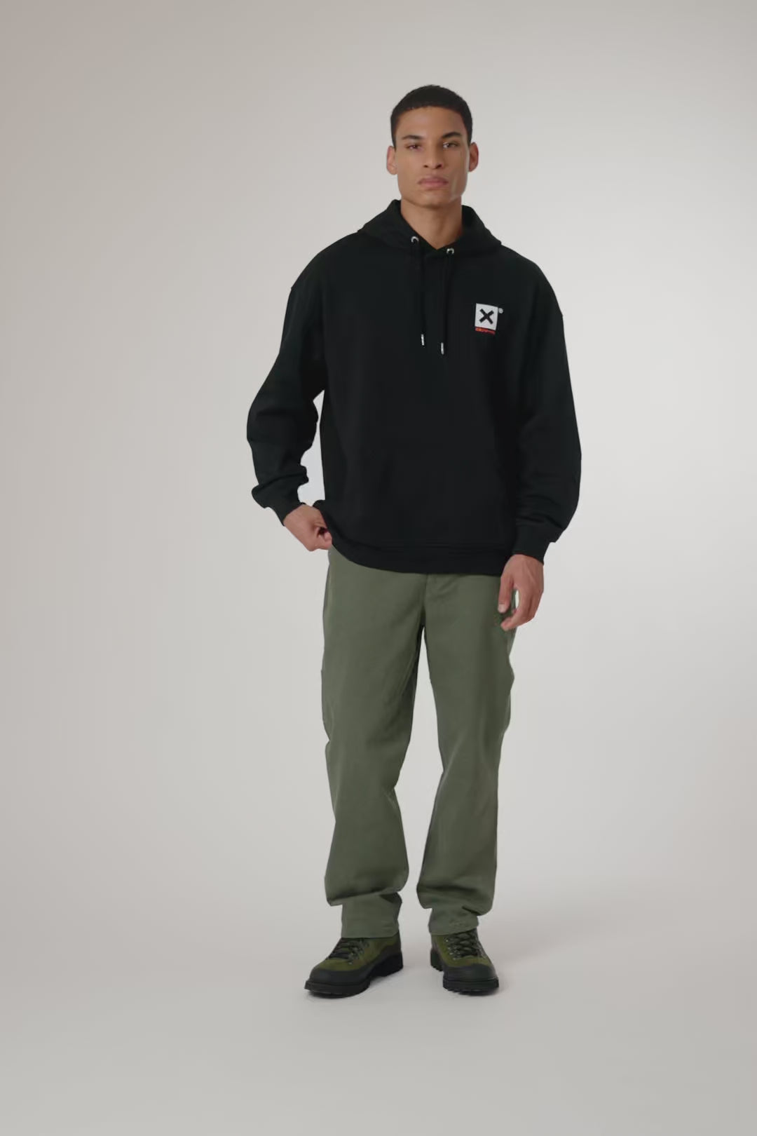 Felpa con cappuccio con stampa frontale in alto a sinistra e stampa centrale sul retro. Tasca anteriore centrale inferiore con aperture su entrambi i lati. Realizzata in 100% cotone biologico e vestibilità regolare.