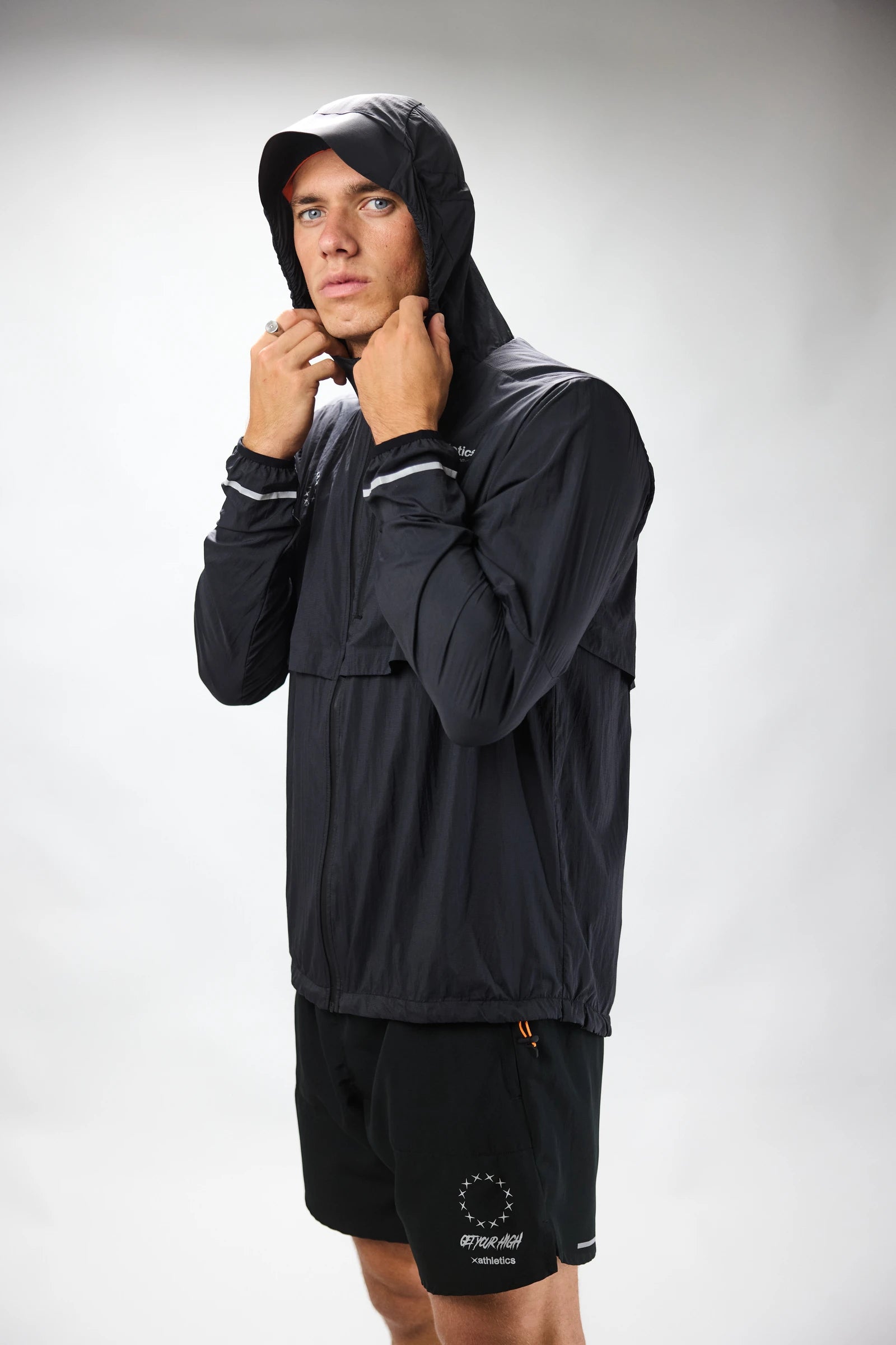 Cortavientos confeccionado con tejido de nylon ultraligero, transpirable, de secado rápido y UV50. Capucha ajustable con visera. Detalles reflectantes para mayor visibilidad. Bolsillo con cremallera en pecho izquierdo. Bajo ajustable con goma elástica. Aperturas en delantero y espalda para ventilación.