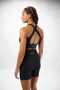 Top deportivo con tirantes traseros cruzados. Fabricado con nylon y sport licra, de secado rápido, UV50 y transpirable. Logo reflectante en la parte superior izquierda delantera y en la parte trasera central inferior.