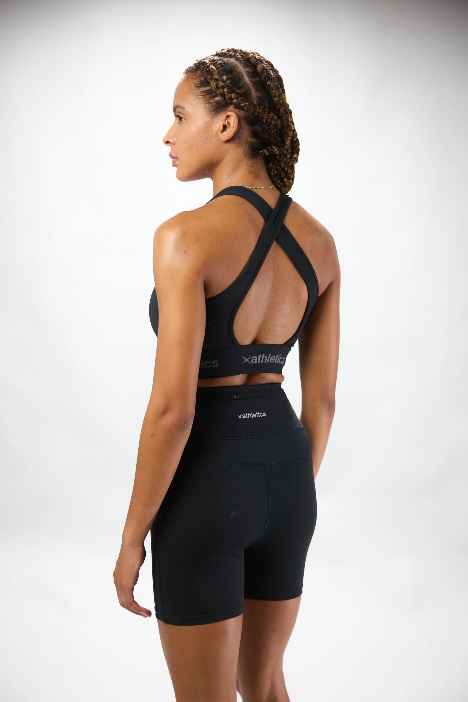 Top sportivo con spalline posteriori incrociate. Realizzato in nylon e lycra sportiva, ad asciugatura rapida, traspirante e con protezione UV50. Logo riflettente sulla parte superiore sinistra anteriore e nella parte inferiore centrale posteriore.
