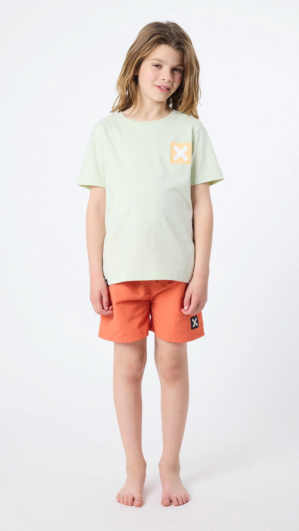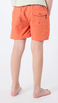 Shorts da bagno dal taglio dritto con elastico in vita, coulisse e linguette gommate. Etichetta cucita in basso a destra. Tasche laterali anteriori e una tasca posteriore in alto a destra con patta e occhiello metallico.
