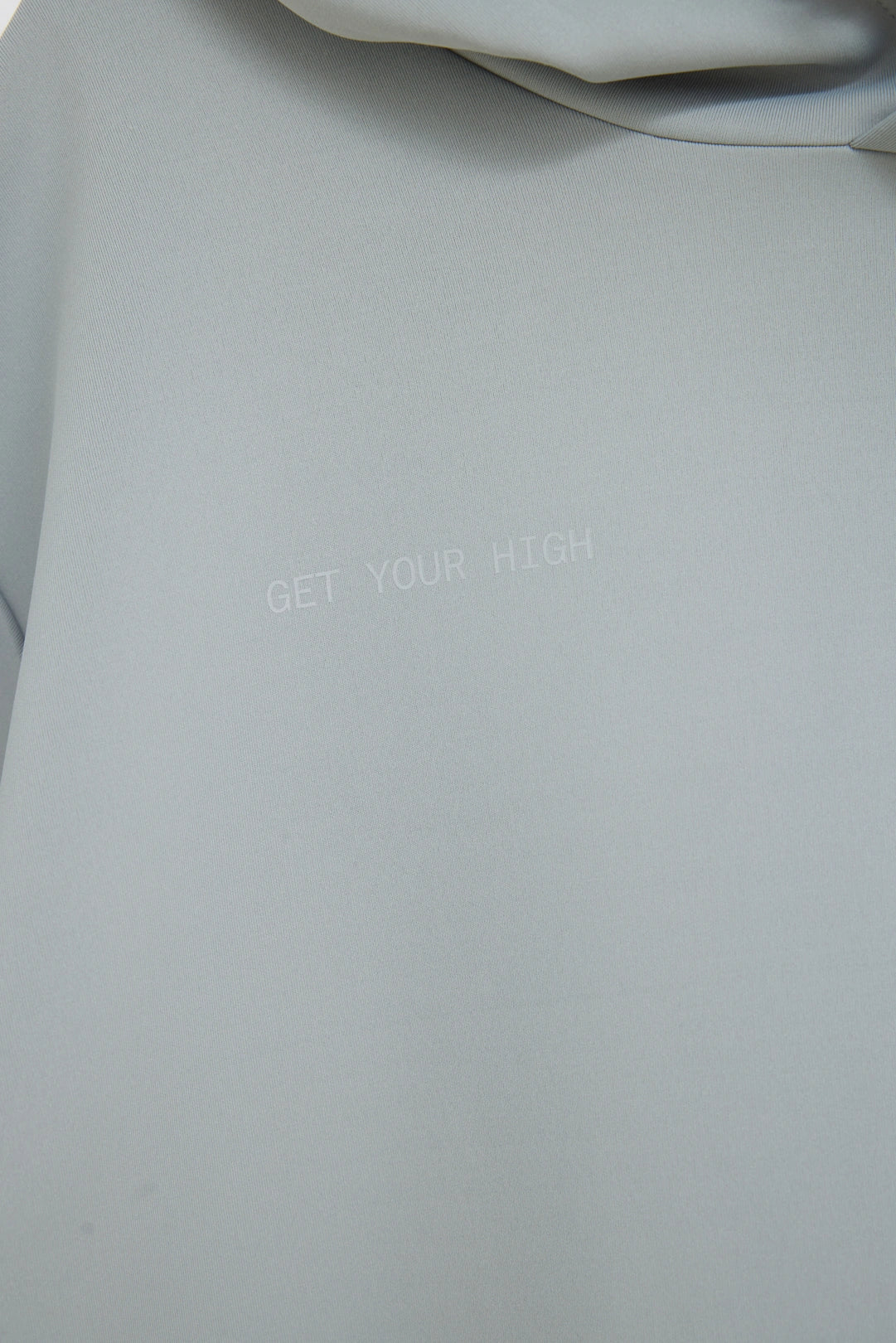 Sudadera con capucha fabricada con poliéster. Bajo elástico y ajustable en la cintura. Bolsillo canguro.