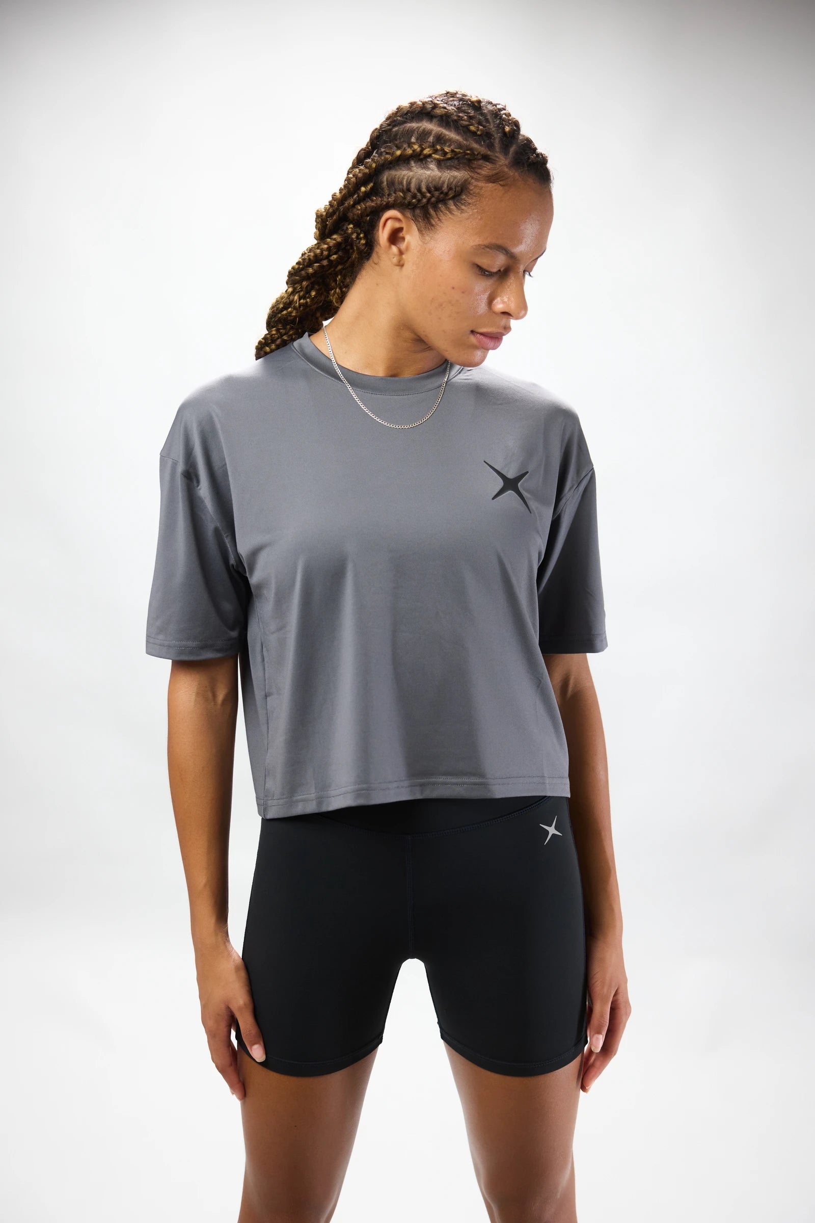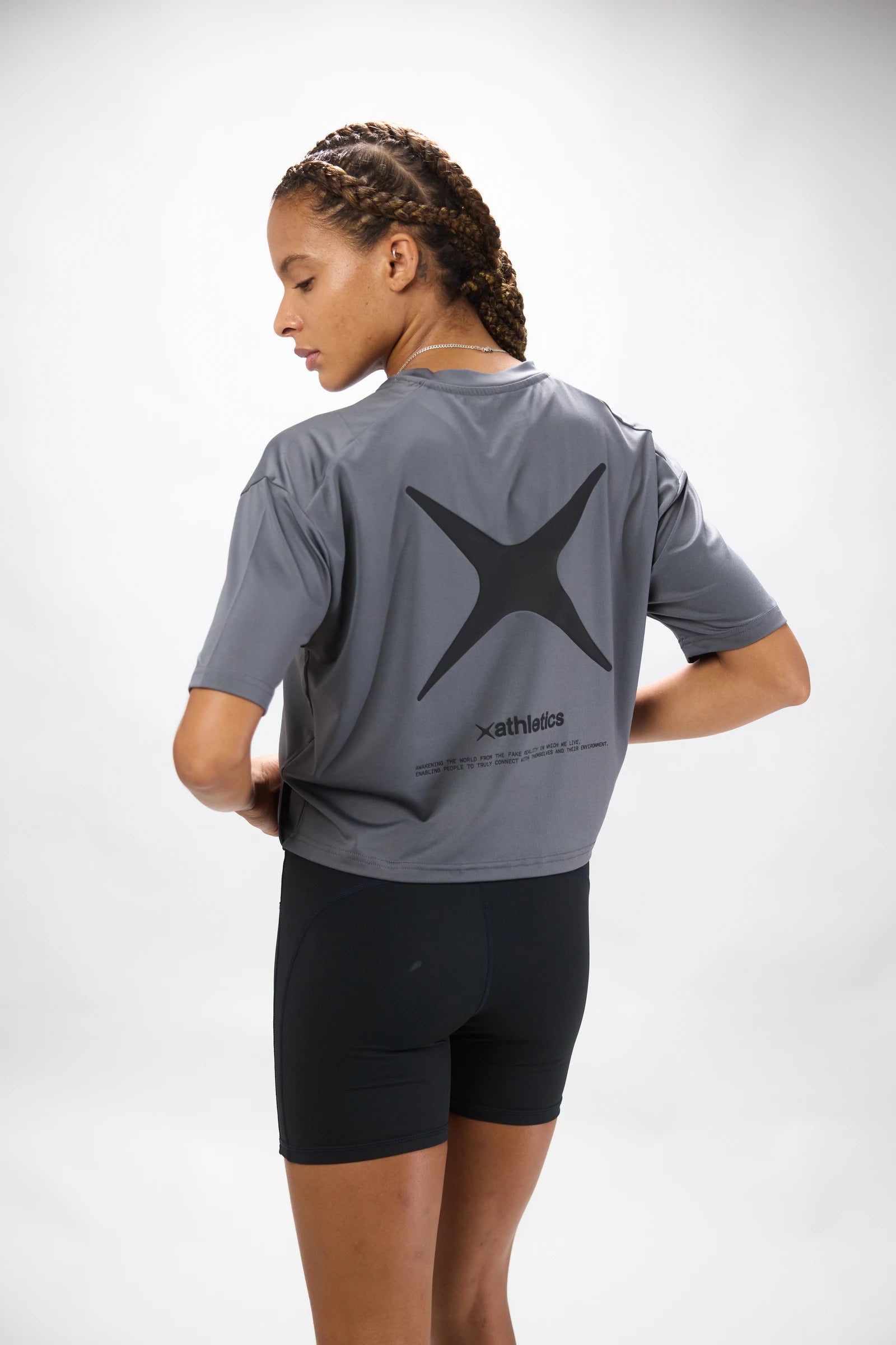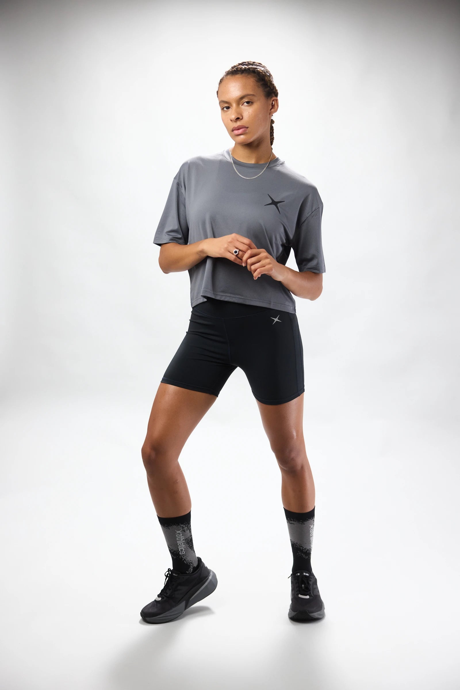 T-shirt sportiva realizzata in poliestere riciclato, ad asciugatura rapida, con protezione UV50 e trattamento idrorepellente. Logo riflettente al centro sul davanti e sul retro.