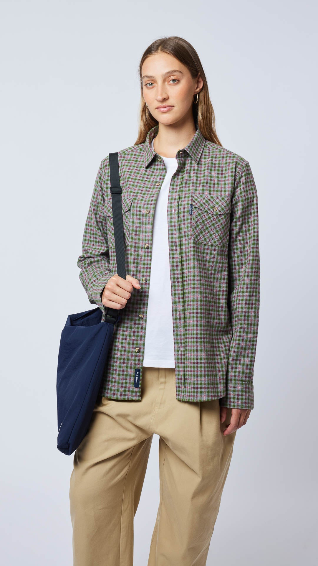 Sopracamicia a quadri in 100% cotone dalla vestibilità regolare. Chiusura con bottoni. Maniche lunghe con polsini singoli. Tasche su entrambi i lati del petto con chiusura a patta.