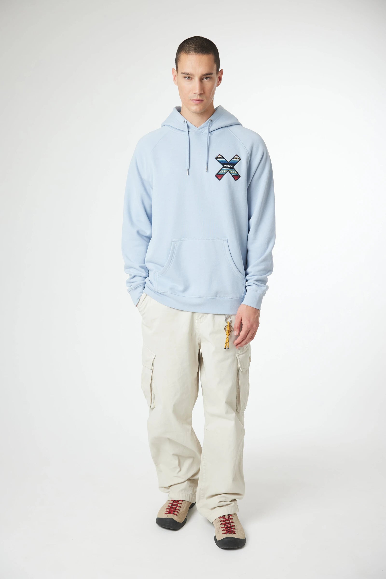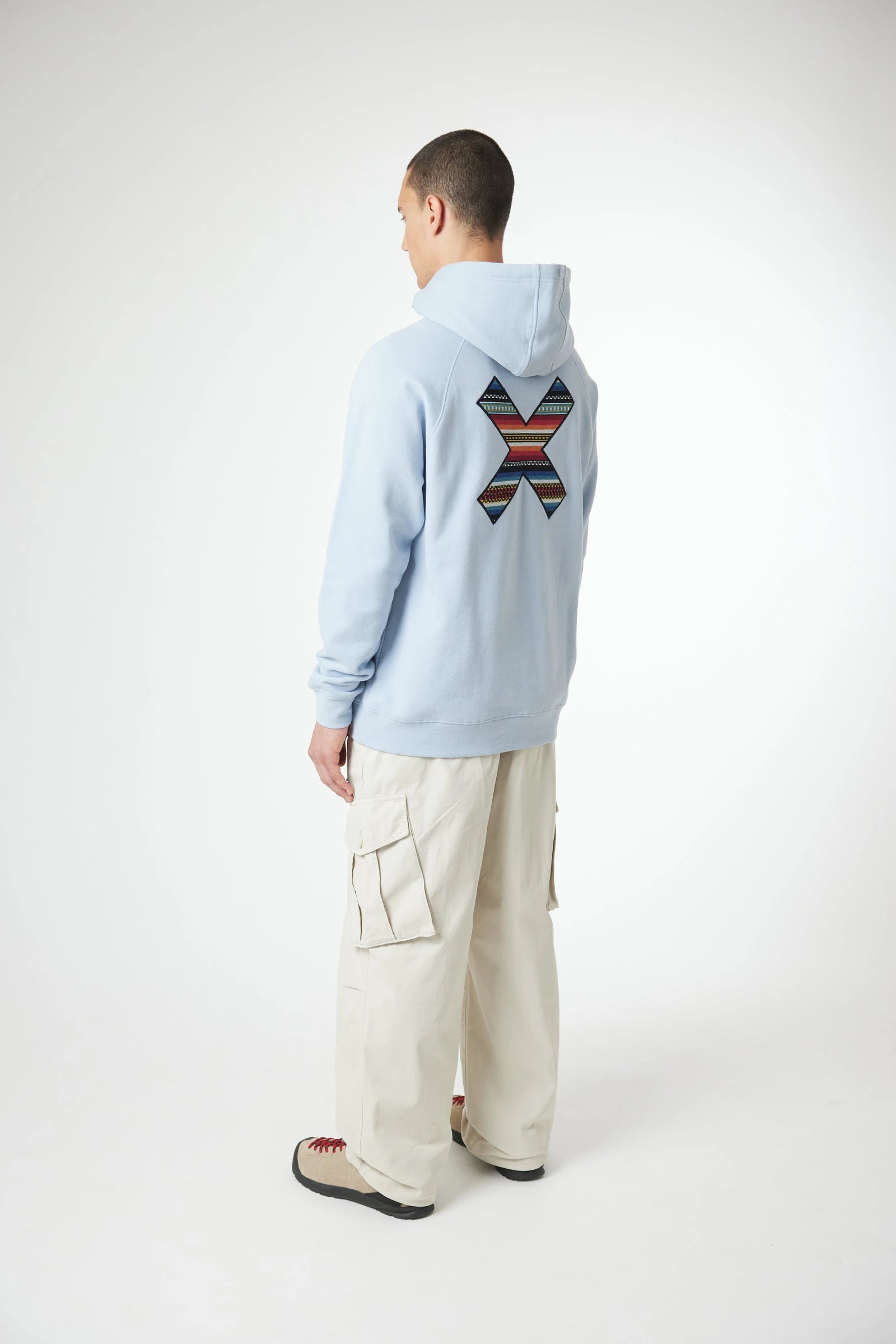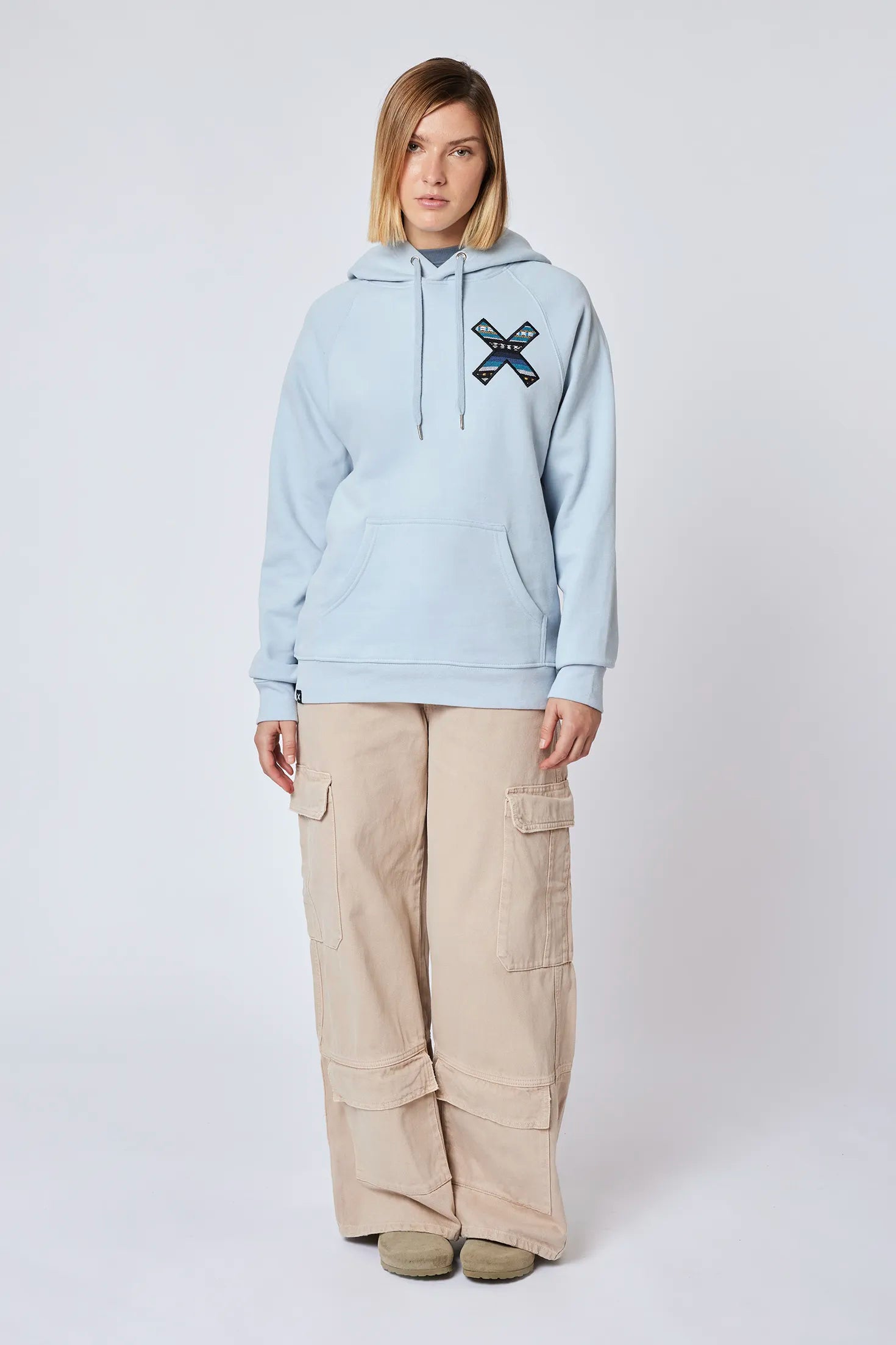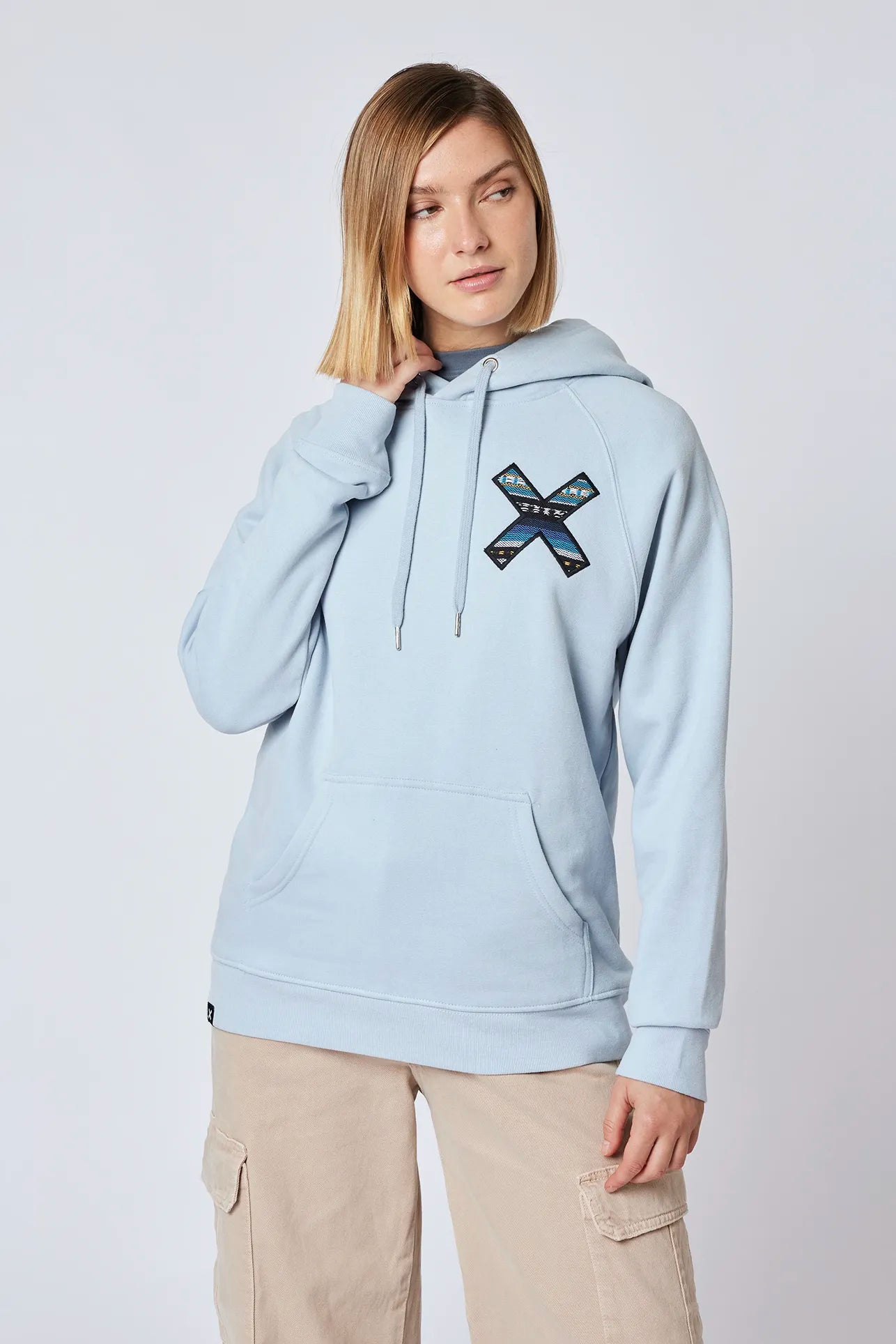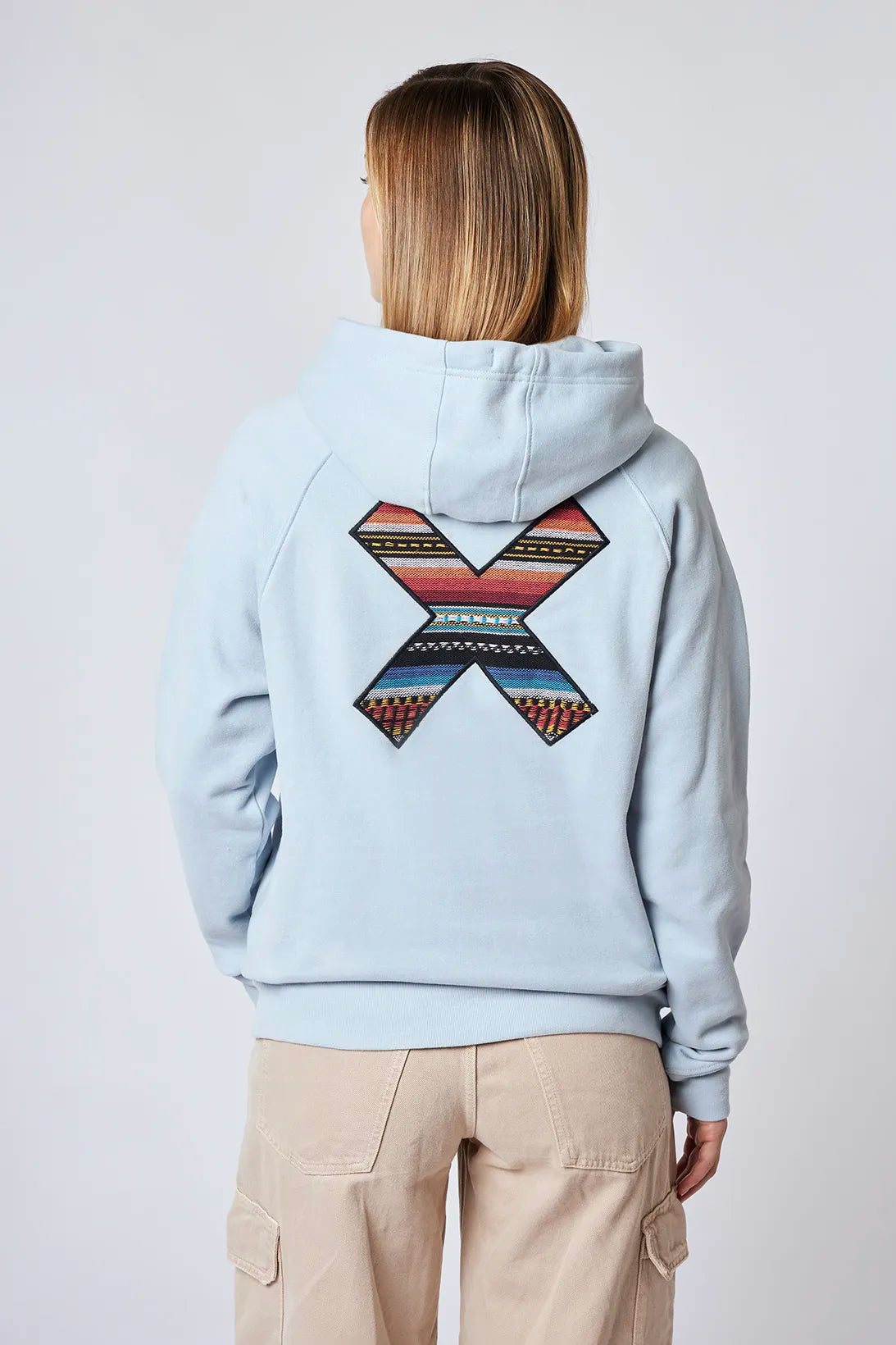 Sudadera con capucha con nuestra clásica X bordada: delantera en el pecho y trasera en la espalda. Confeccionada con 100% algodón orgánico y corte regular fit.