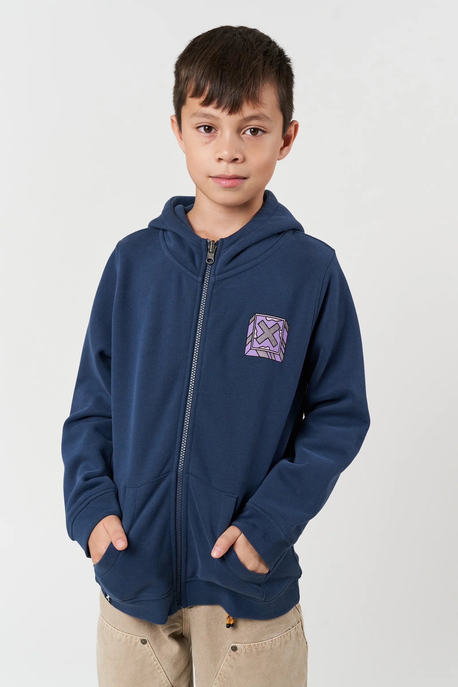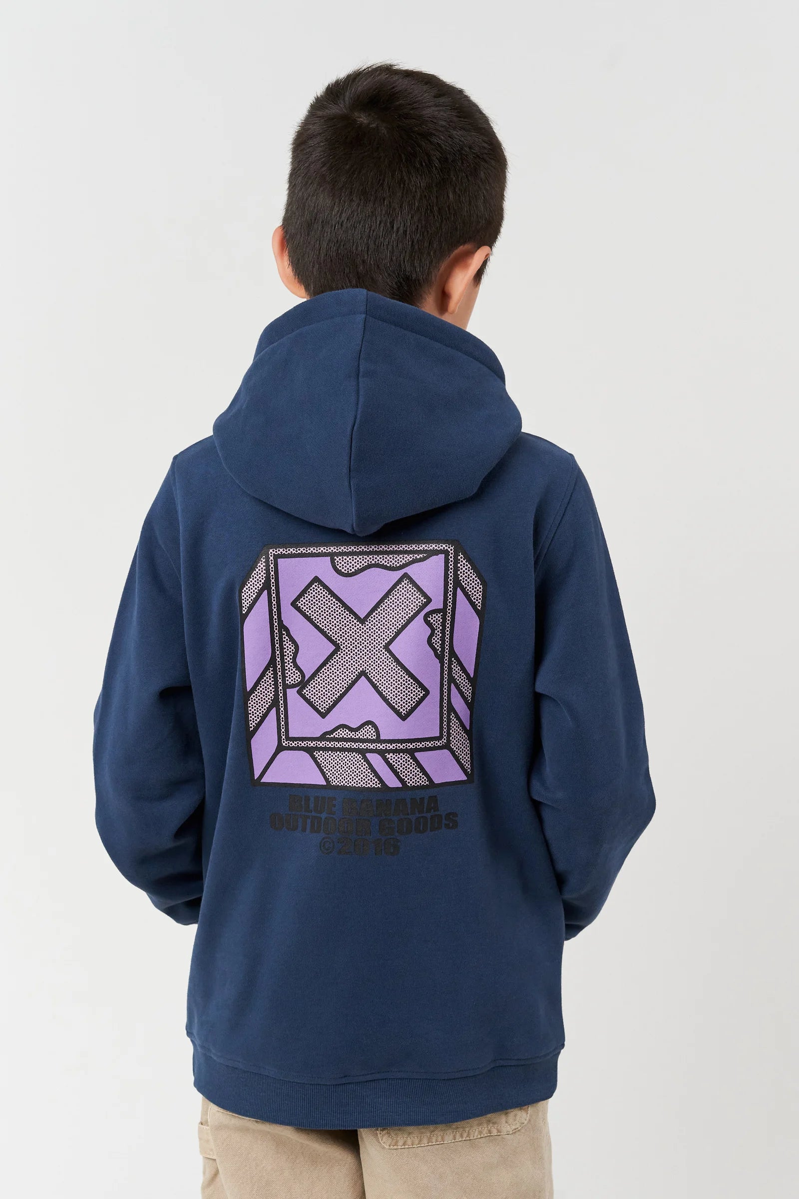 Hoodie con zip centrale e stampa posteriore centrale. Realizzata in cotone 100% organico e vestibilità regular fit.