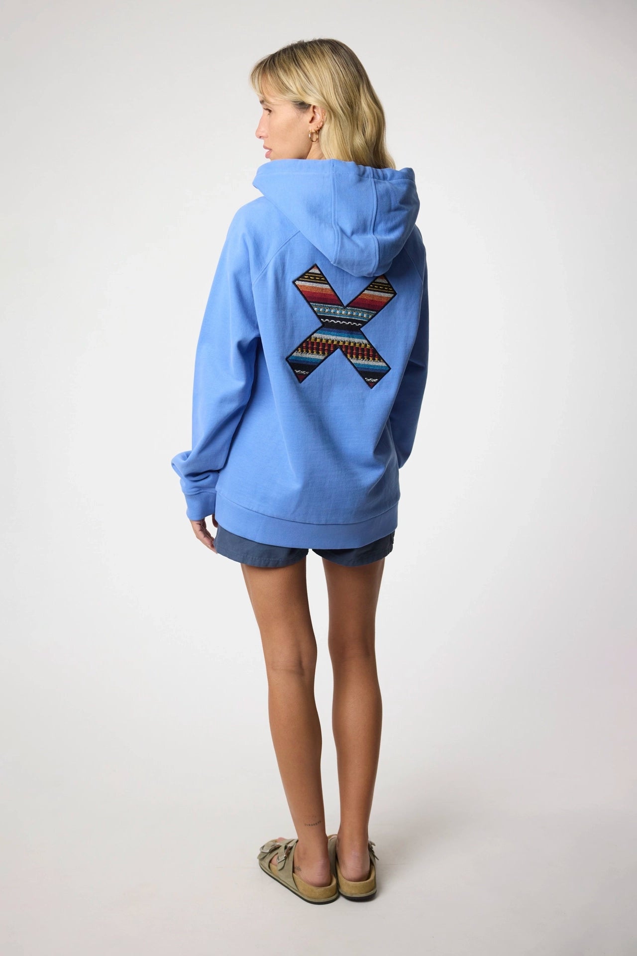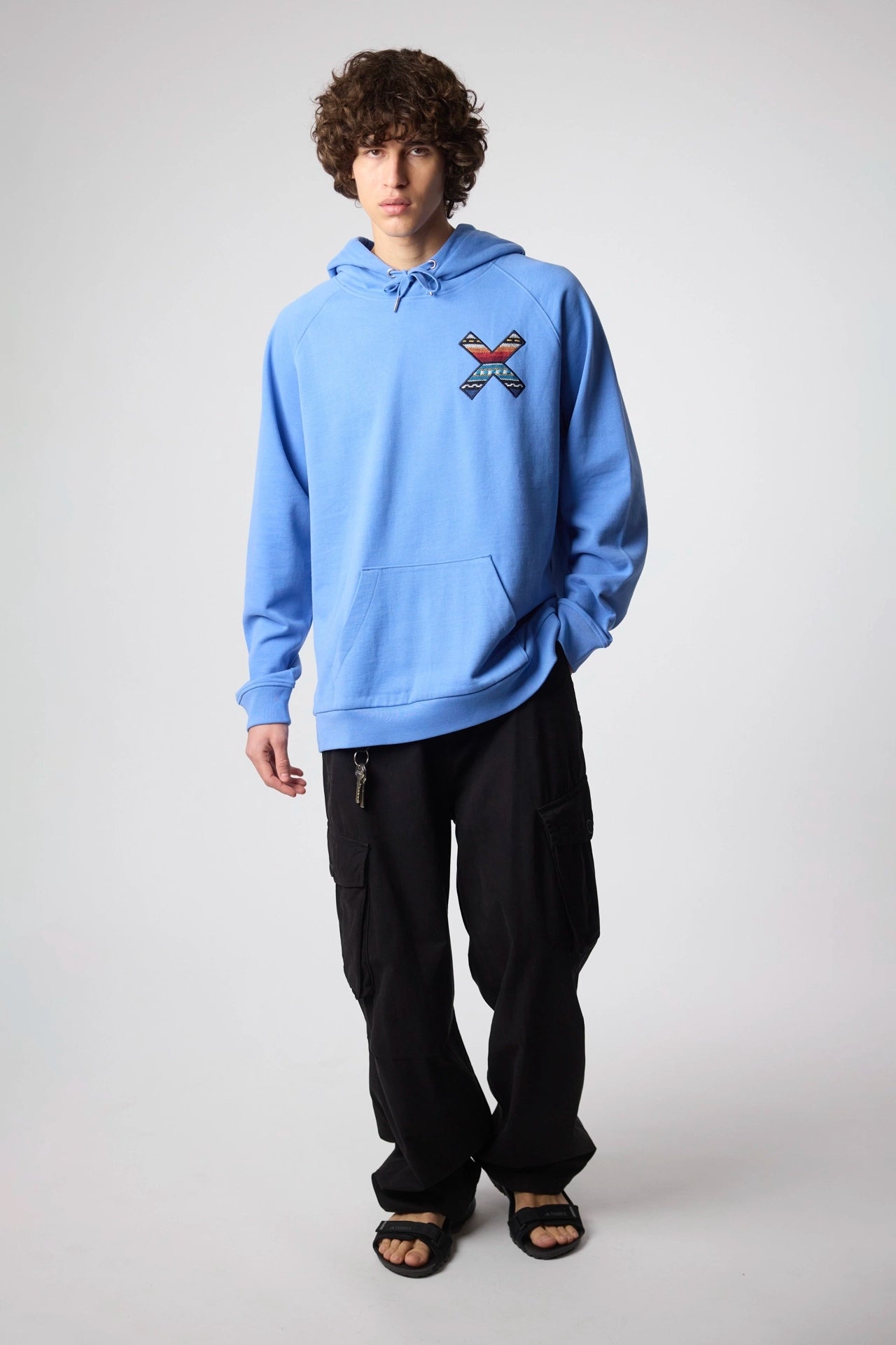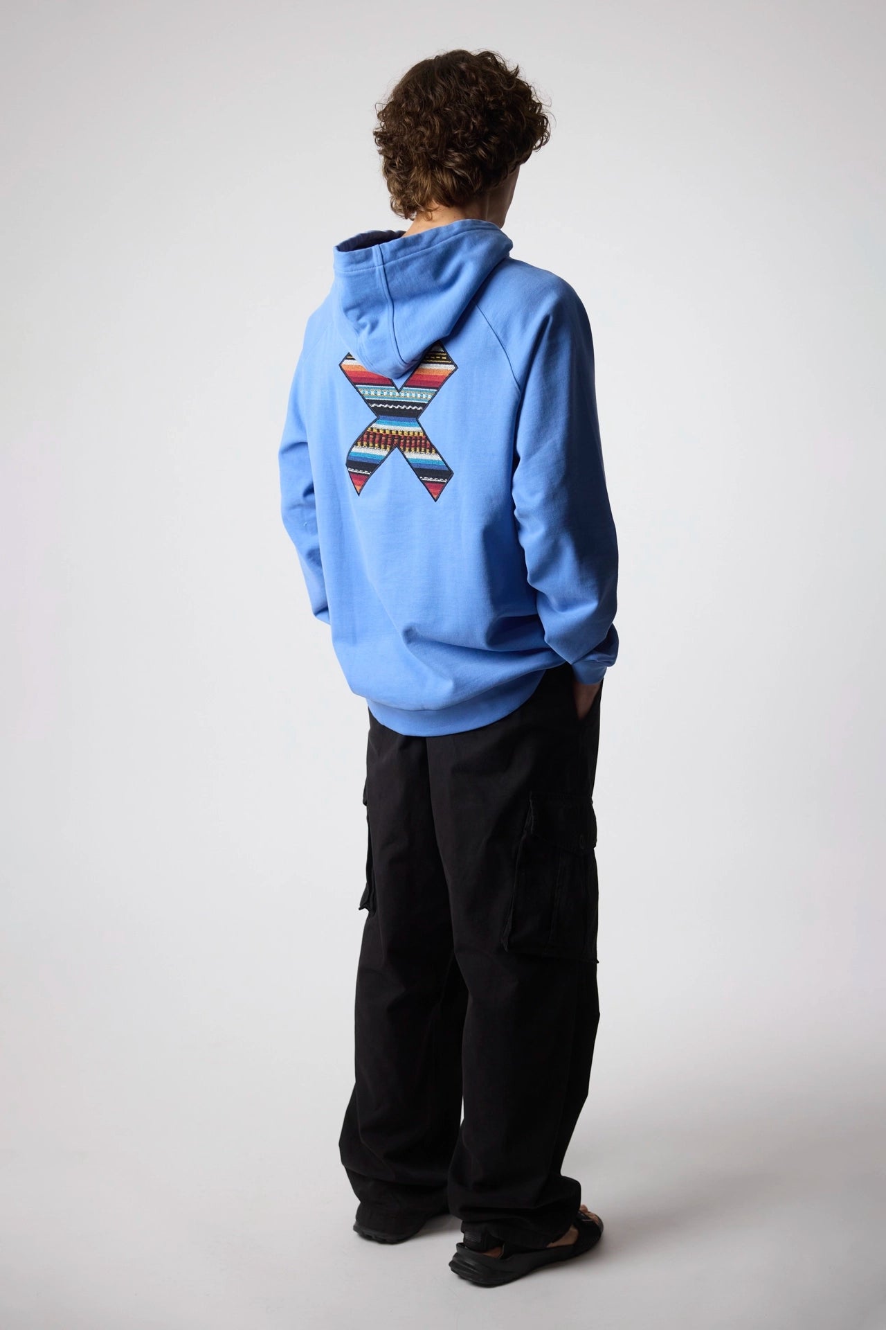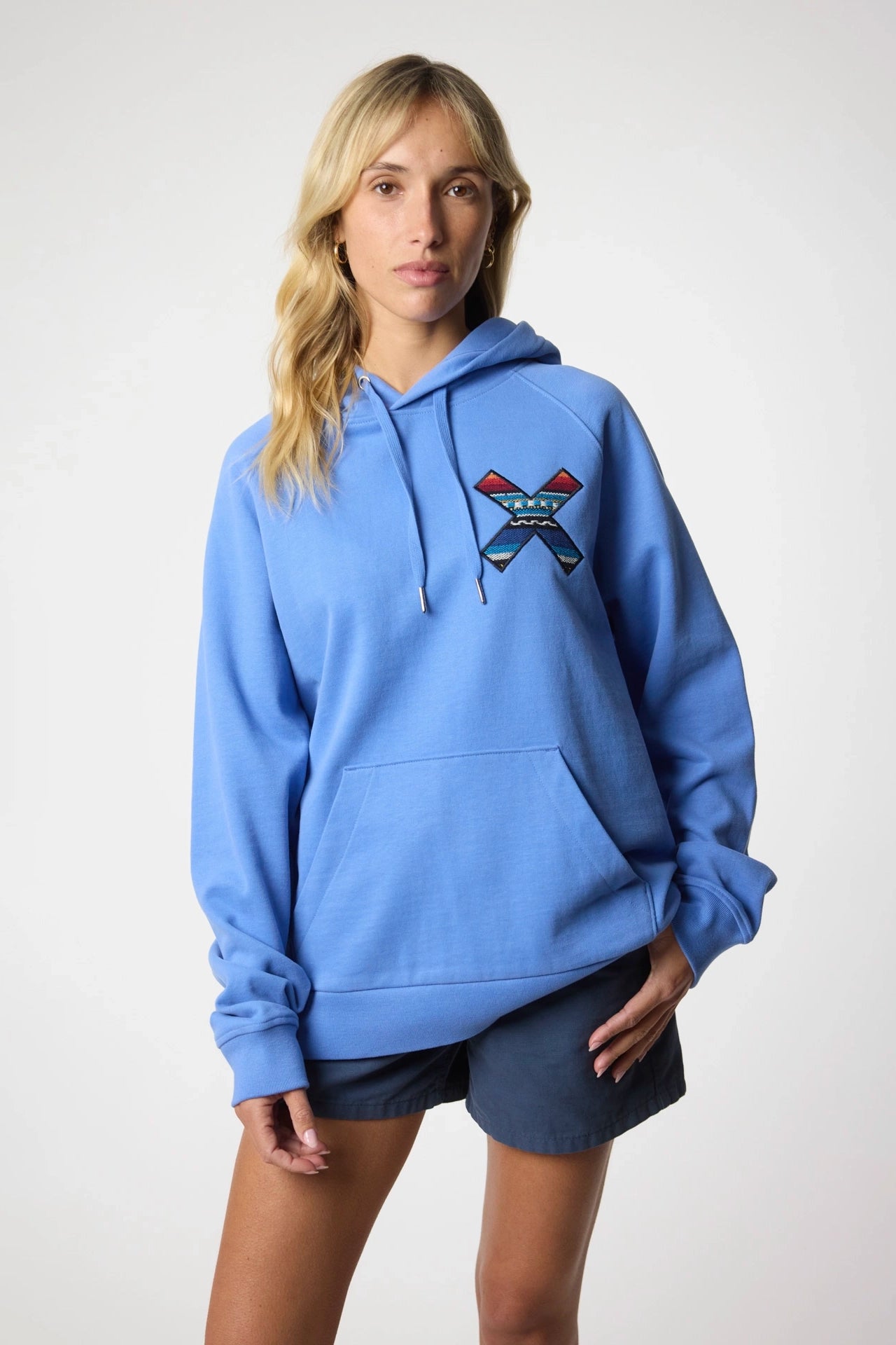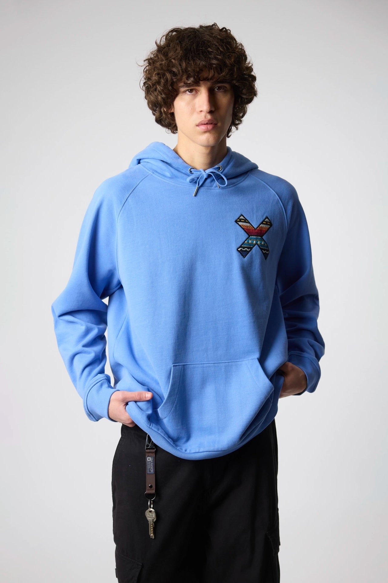 Sudadera con capucha con nuestra clásica X bordada: delantera en el pecho y trasera en la espalda. Confeccionada con 100% algodón orgánico y corte regular fit.