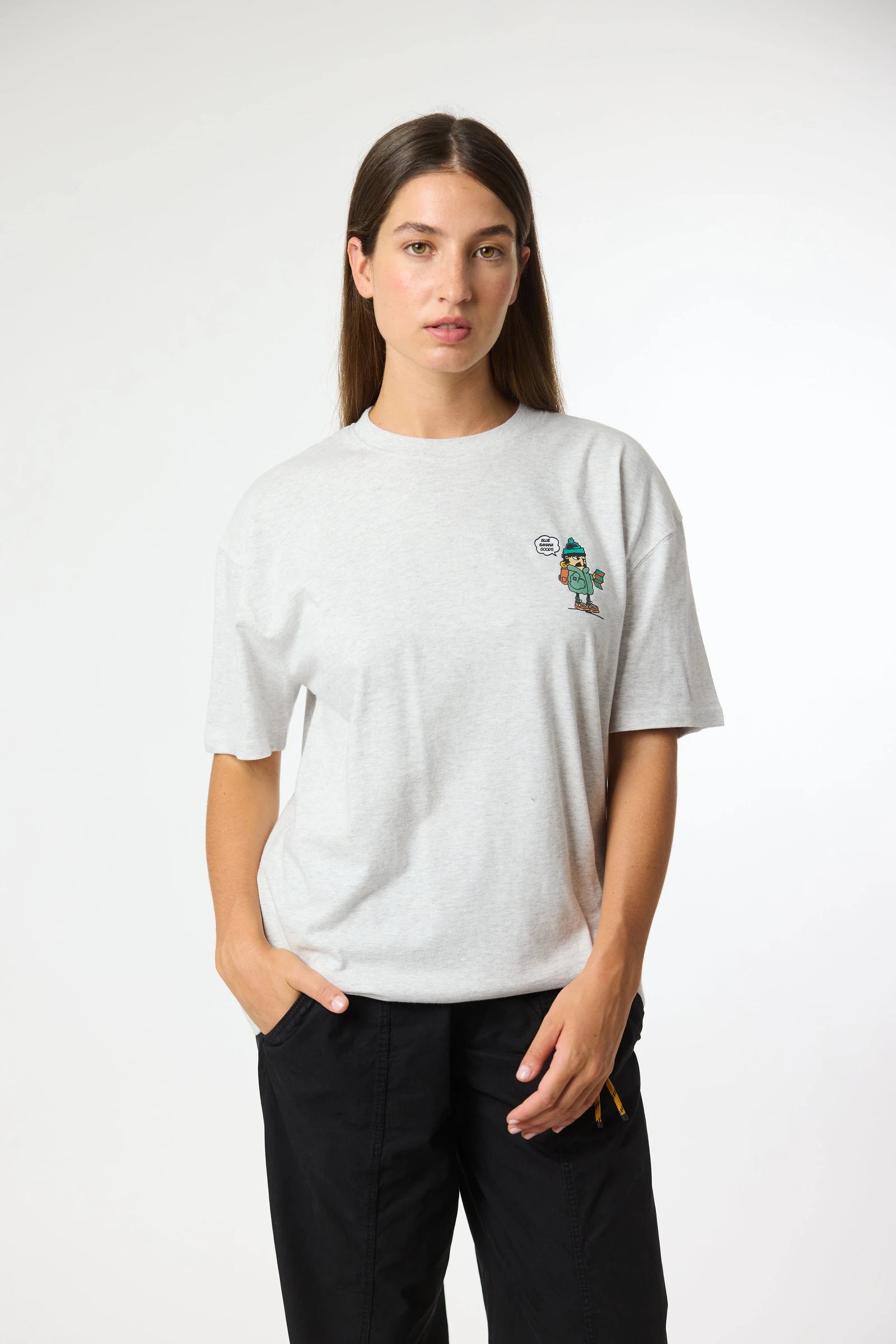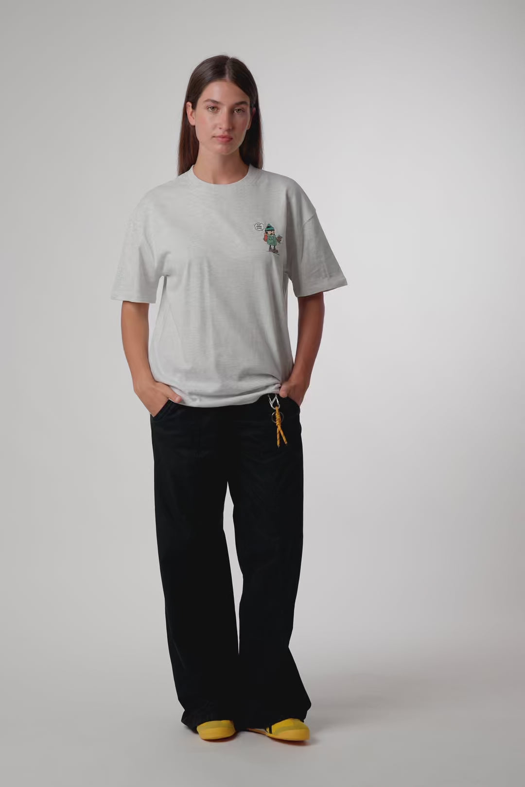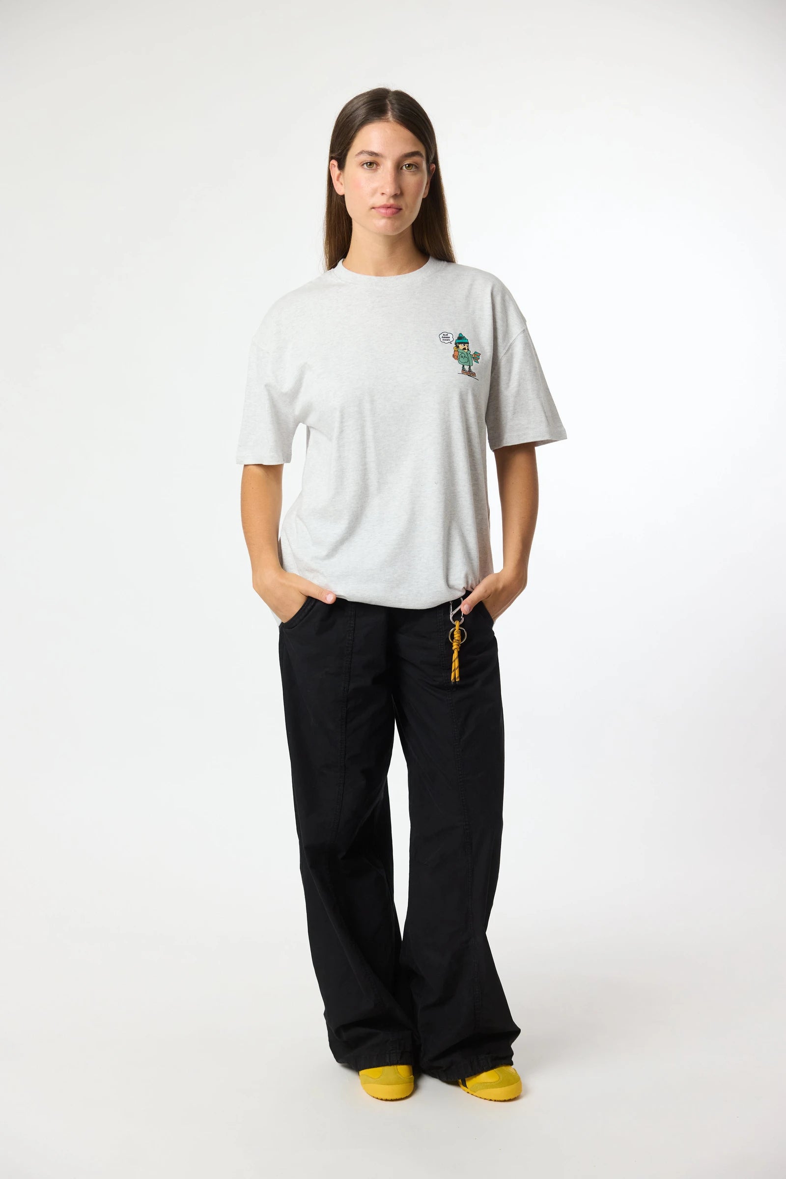Maglietta con stampa frontale in alto a sinistra e stampa centrale sul retro. Realizzata in 100% cotone biologico e dalla vestibilità oversize.
