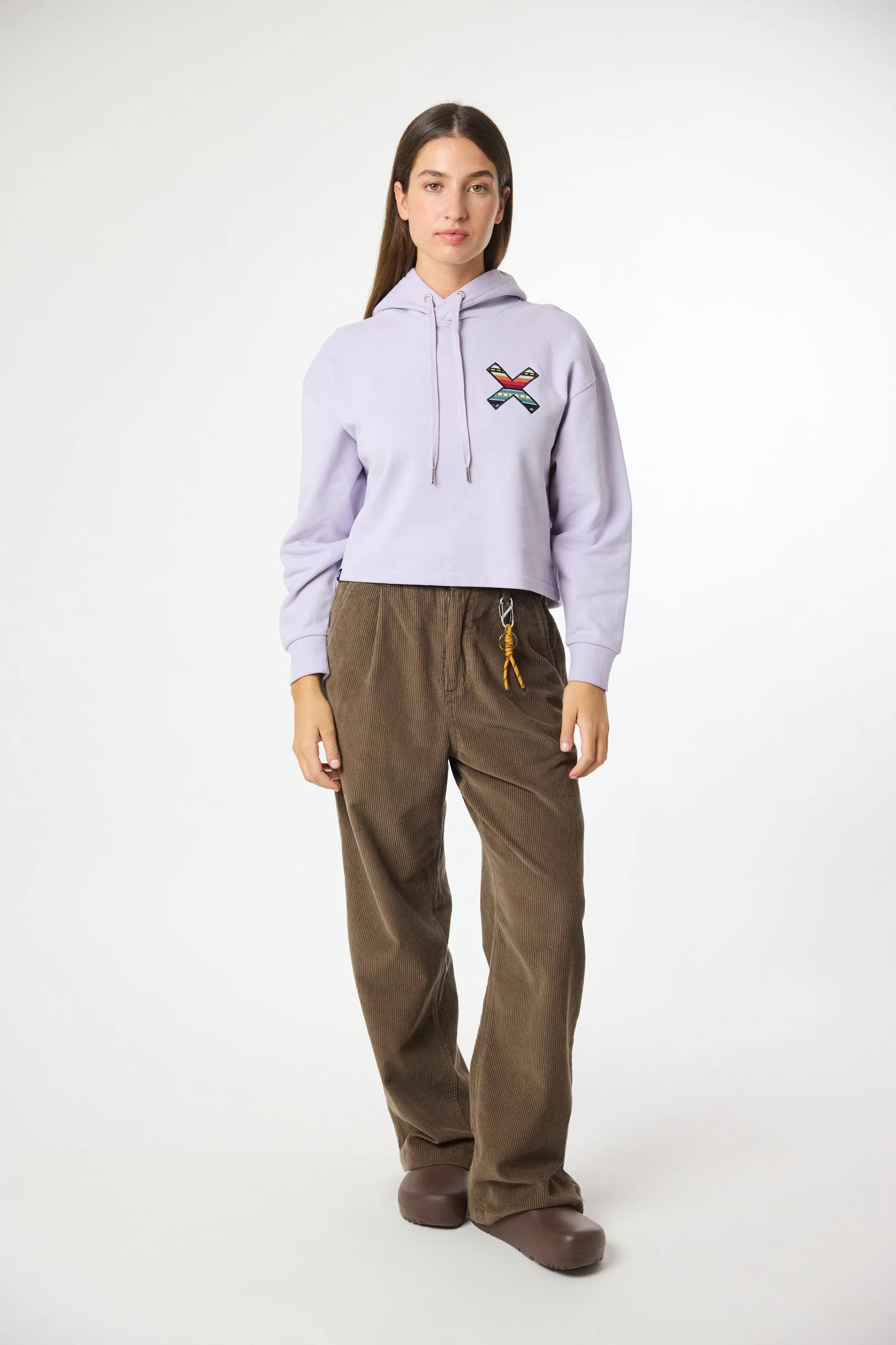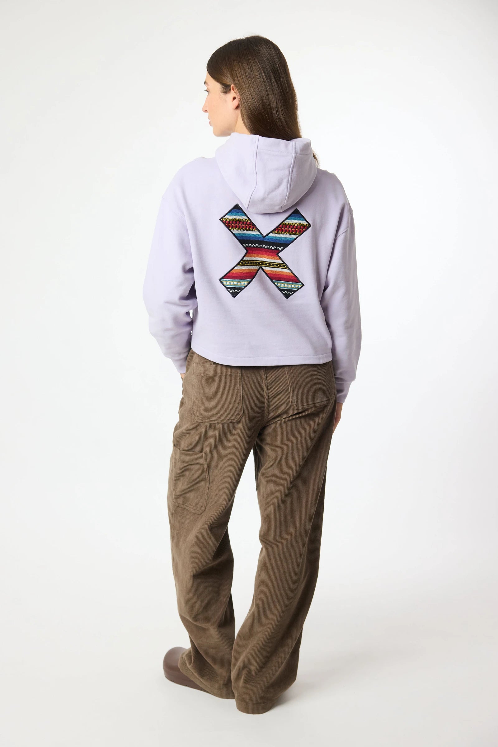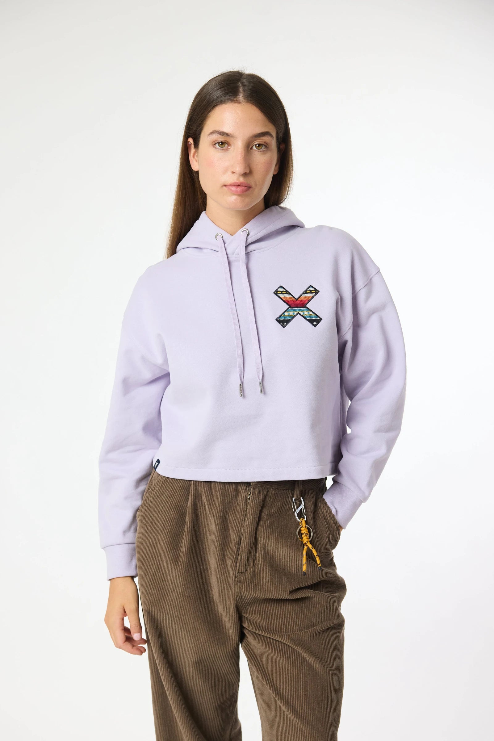 Hoodie con la nostra classica X ricamata: frontale sul petto e posteriore sulla schiena. Realizzata in cotone 100% organico e vestibilità crop.