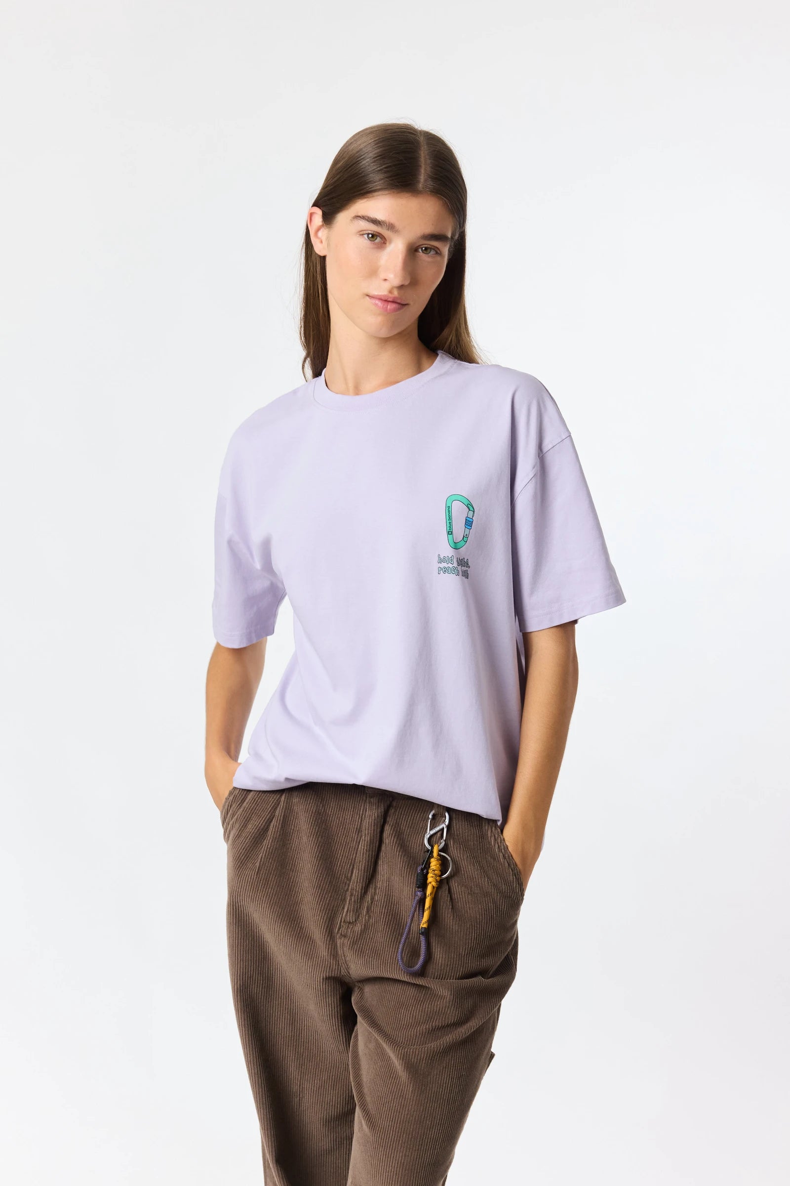 Maglietta con stampa frontale in alto a sinistra e stampa centrale sul retro. Realizzata in 100% cotone biologico e dalla vestibilità oversize.