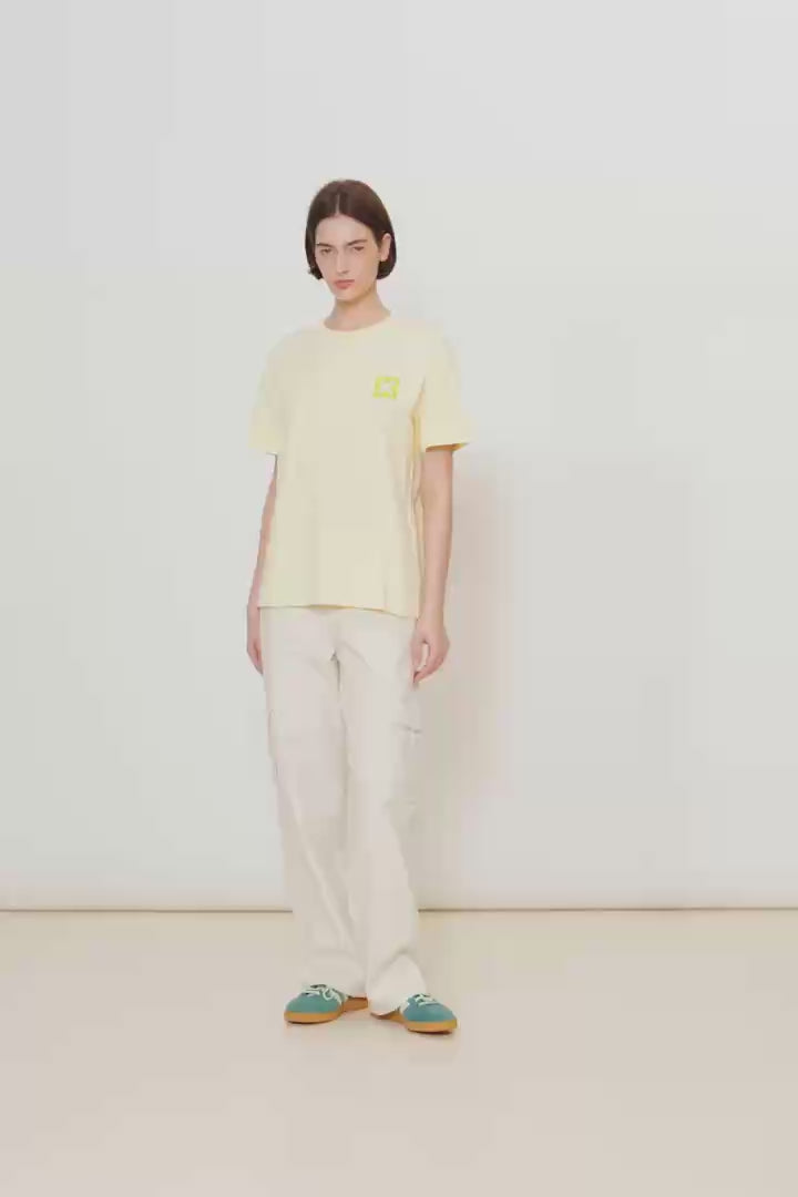 T-shirt con stampa frontale e posteriore. Realizzata in 100% cotone biologico. Vestibilità regular fit e grammatura: 200 GSM.