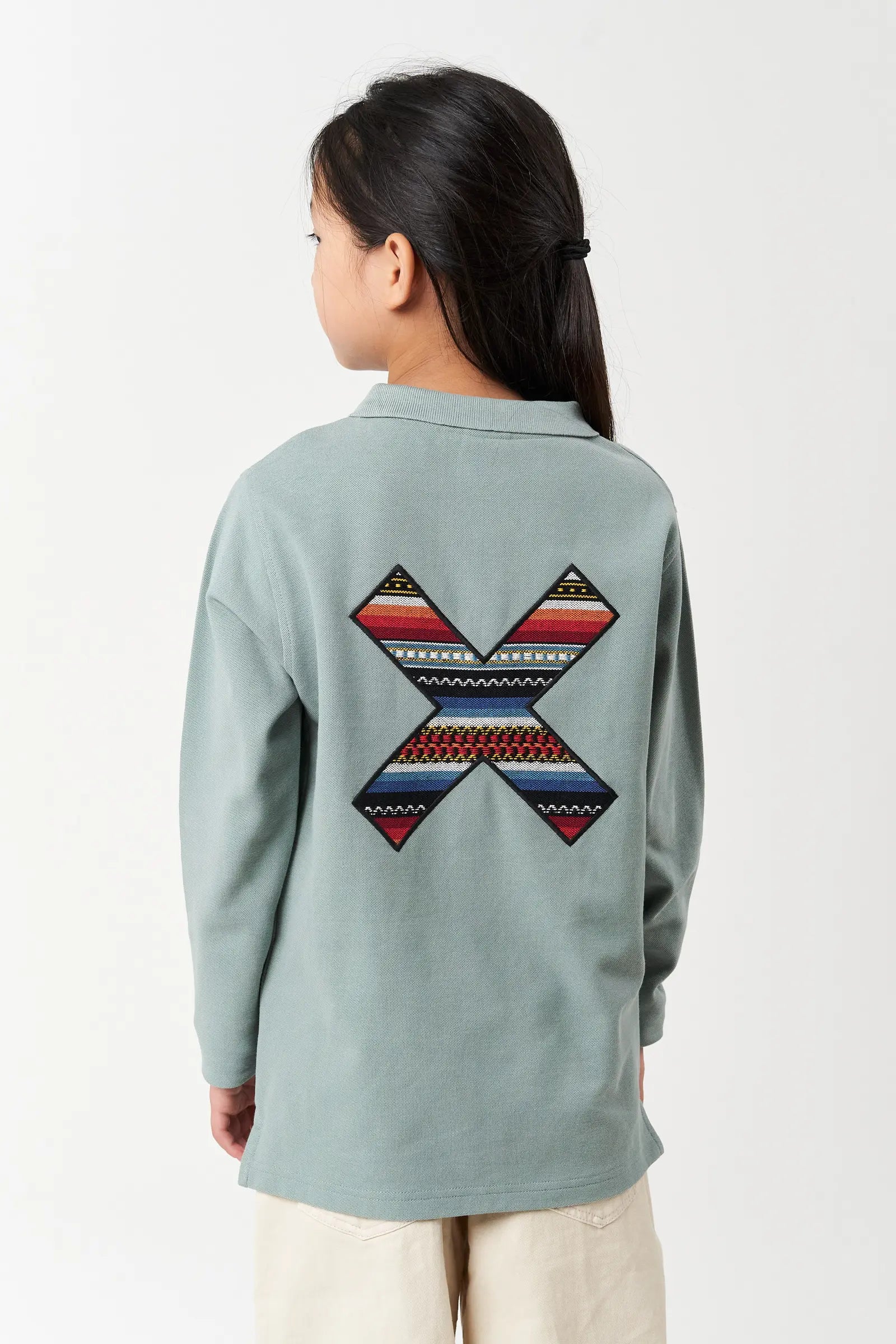Polo manica lunga con la nostra classica X ricamata: frontale sul petto e posteriore sulla schiena. Realizzato in cotone 100% organico e vestibilità regular fit.