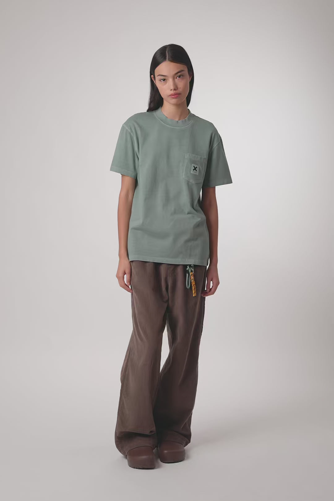 T-shirt effetto lavato con taschino frontale sul petto e logo su etichetta tessuta.