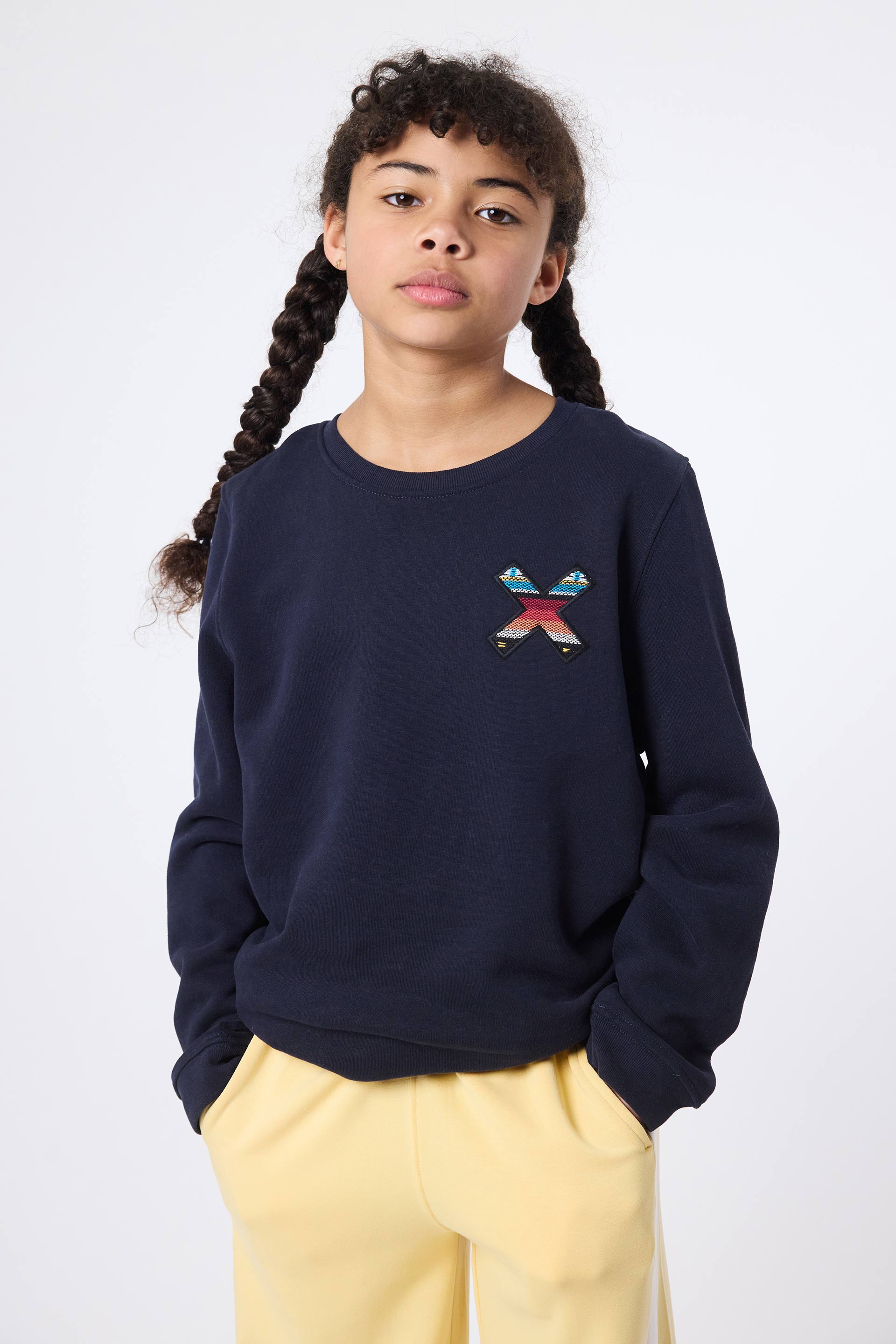 Felpa con la nostra classica X ricamata: davanti, sul petto e sul retro. Realizzata in 100% cotone biologico.