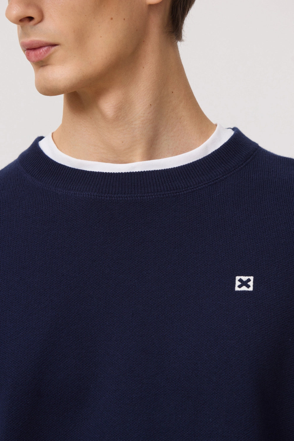 Maglia in maglia confezionata con 100% cotone. Con ricamo decorativo di branding sul petto in colore a contrasto, collo rotondo e finiture a coste.