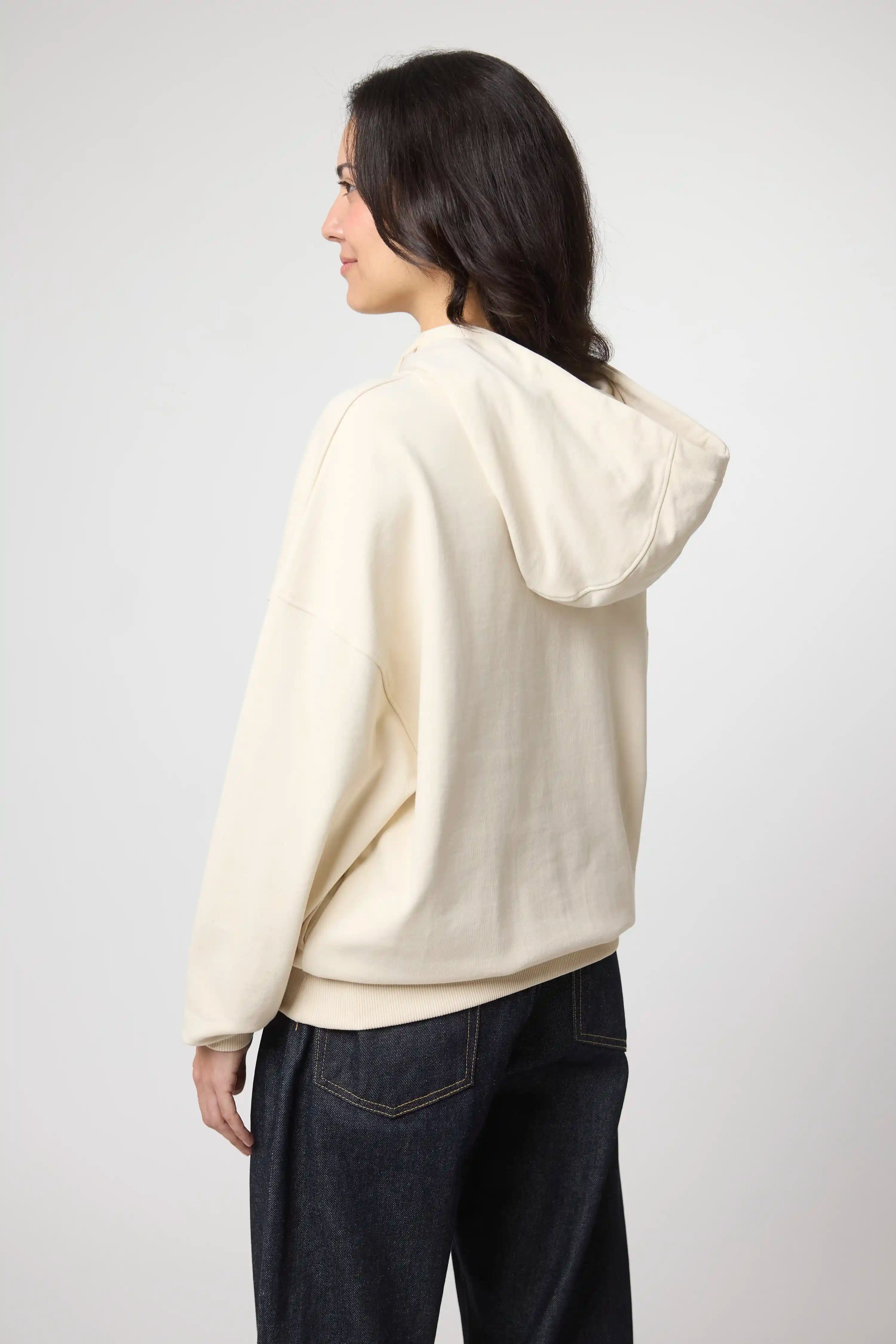 Felpa con cappuccio e etichetta decorativa ricamata in alto a sinistra. Realizzata in 100% cotone biologico e con tasche laterali. Vestibilità squadrata.
