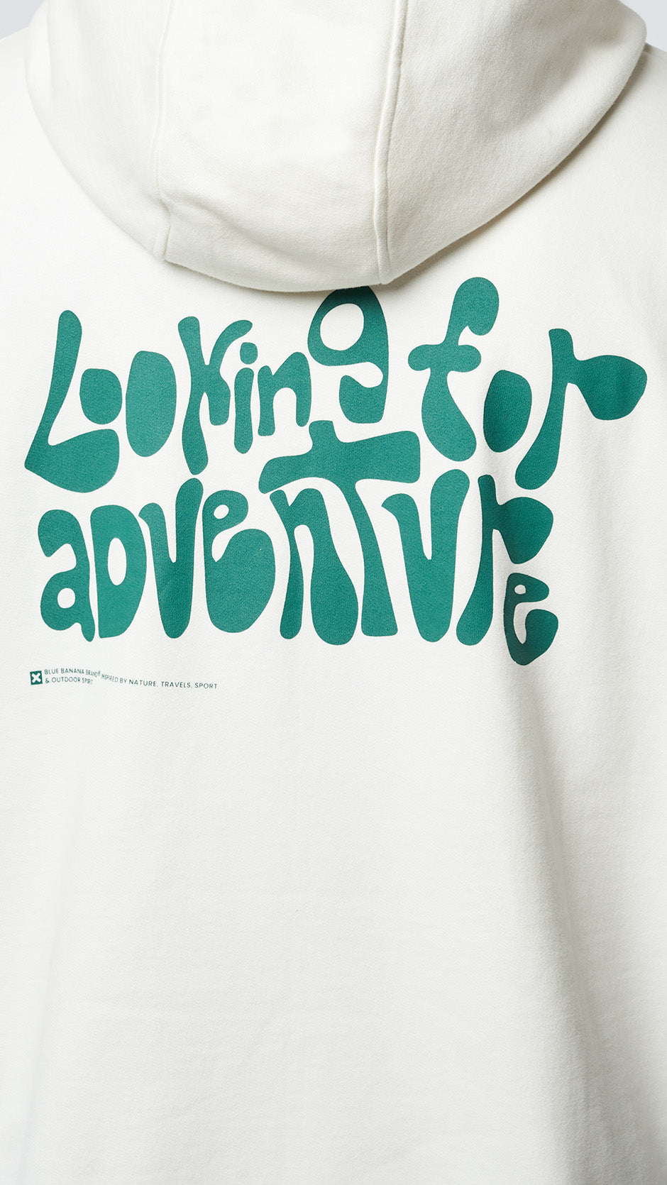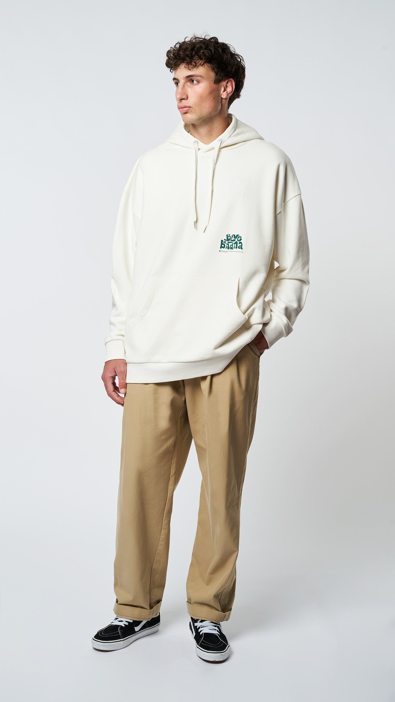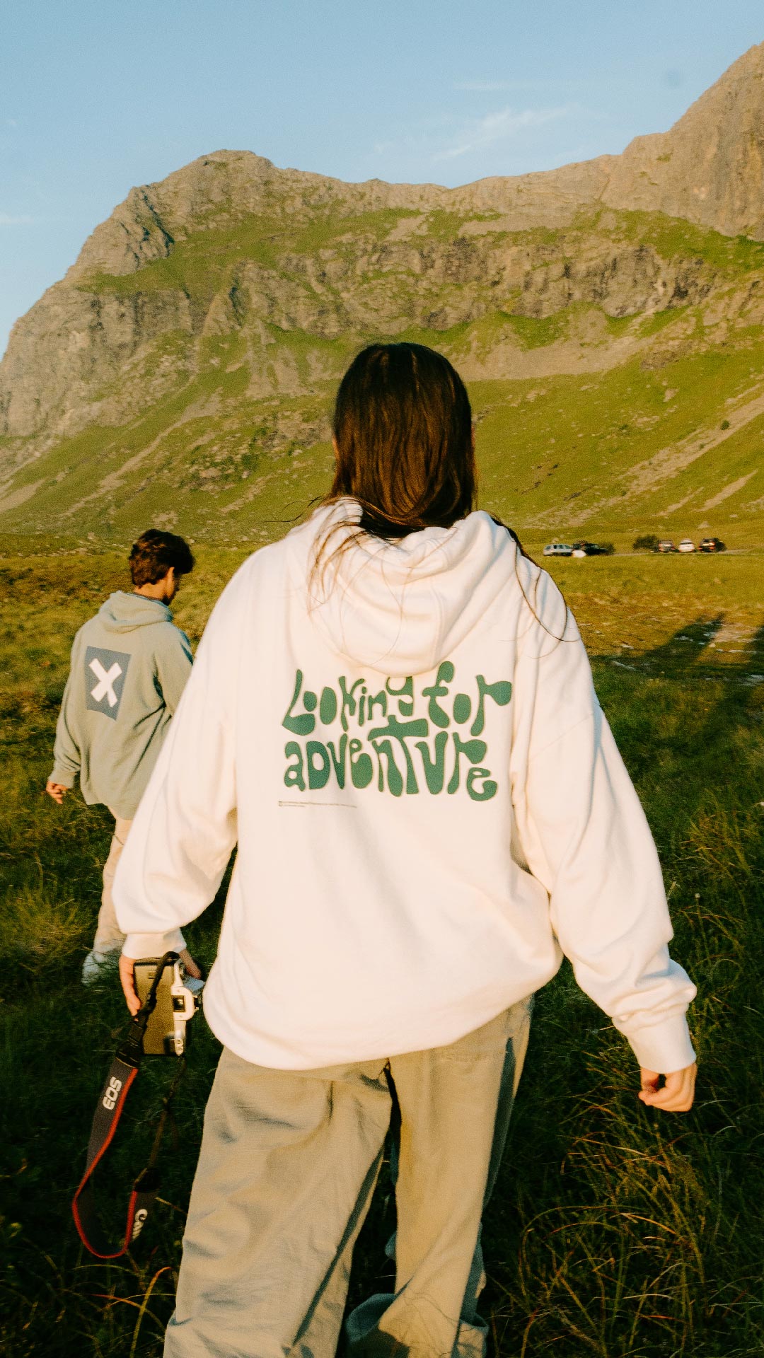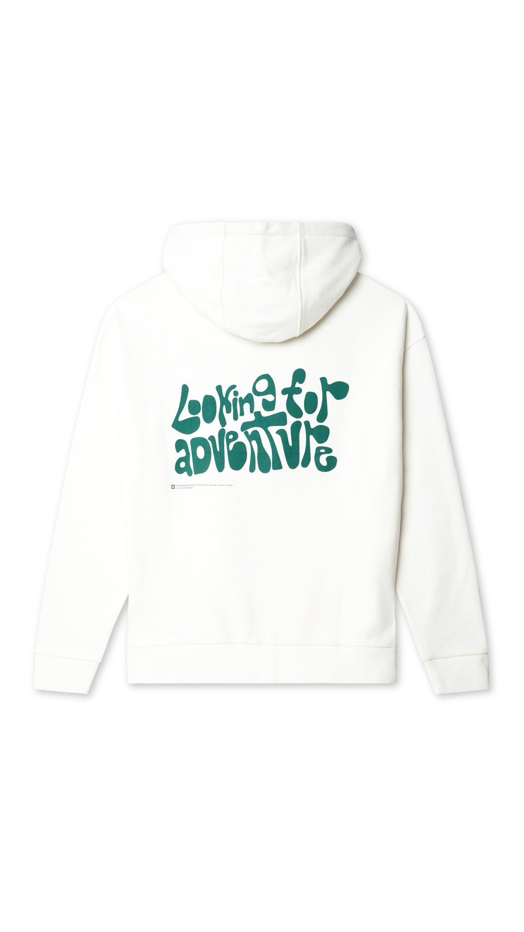 Felpa con cappuccio con stampa frontale in alto a sinistra e stampa centrale sul retro. Tasca anteriore centrale inferiore con spacchi su entrambi i lati. Realizzata in 100% cotone biologico e dalla vestibilità oversize.