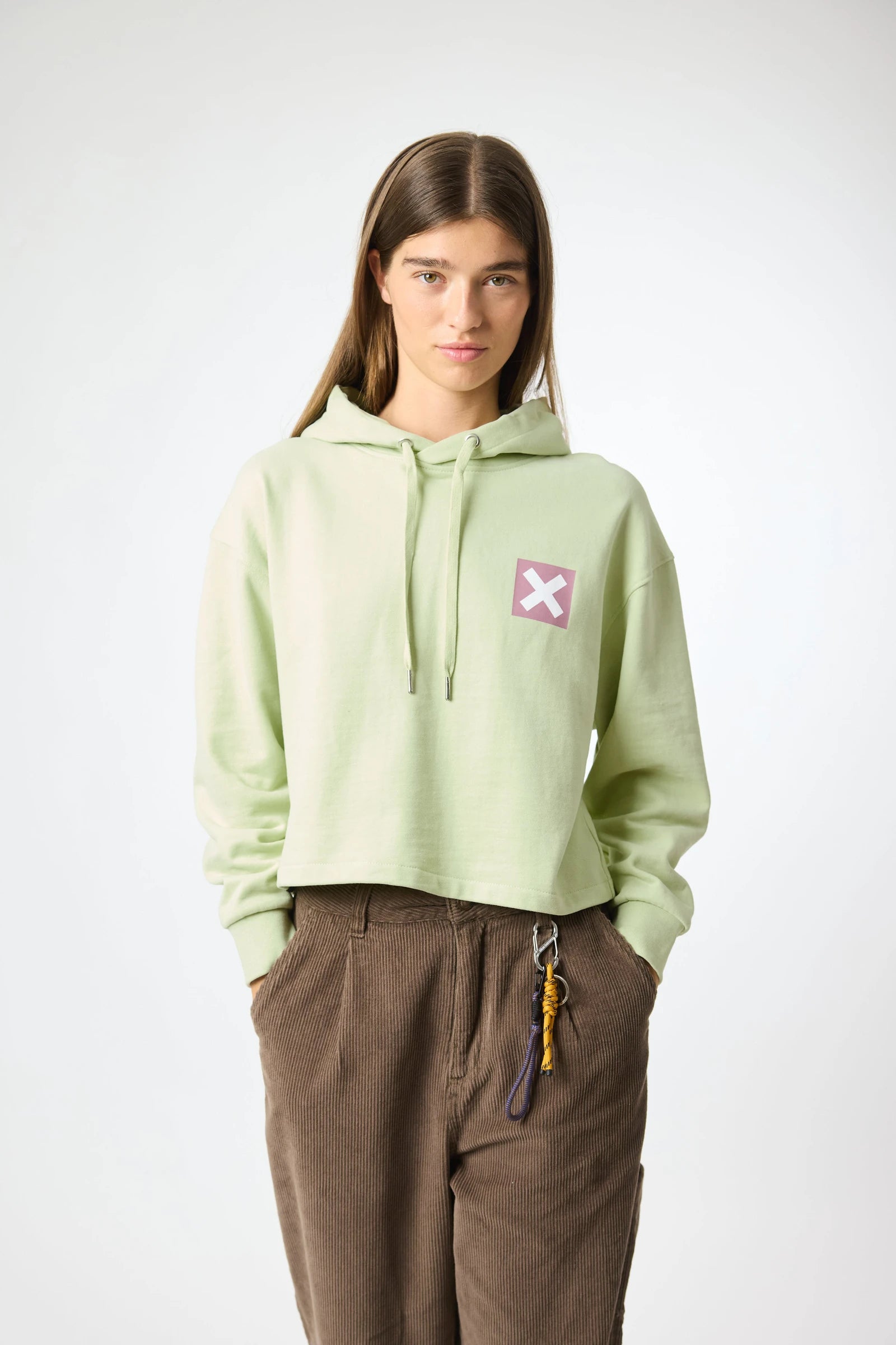 Hoodie con stampa frontale e posteriore. Realizzata in cotone 100% organico e vestibilità crop.