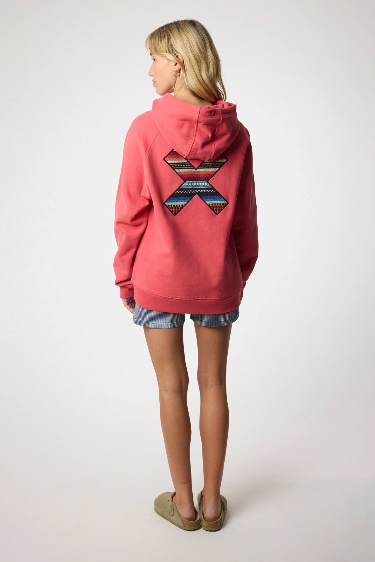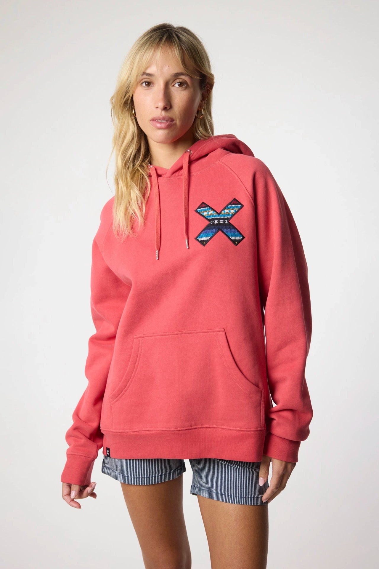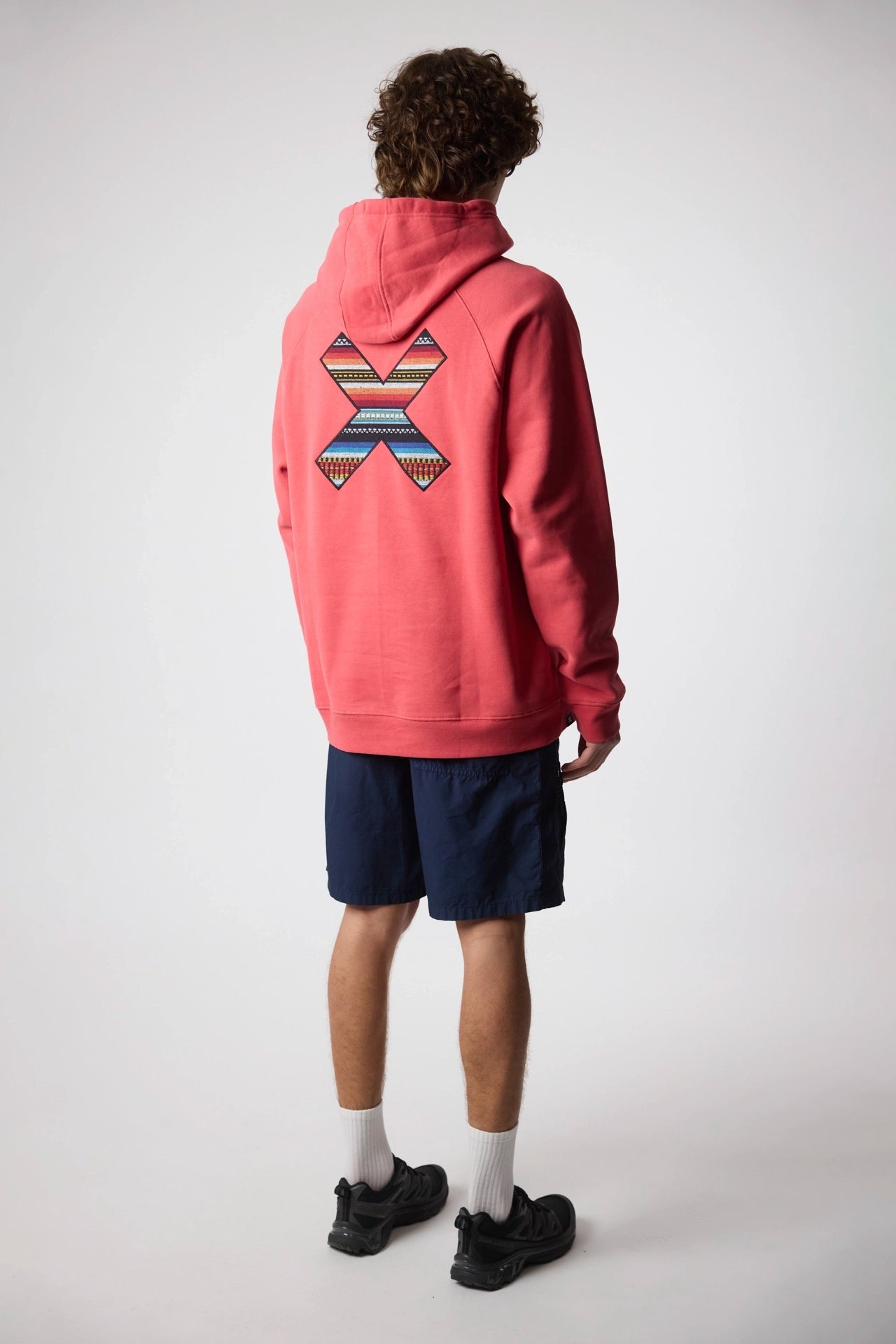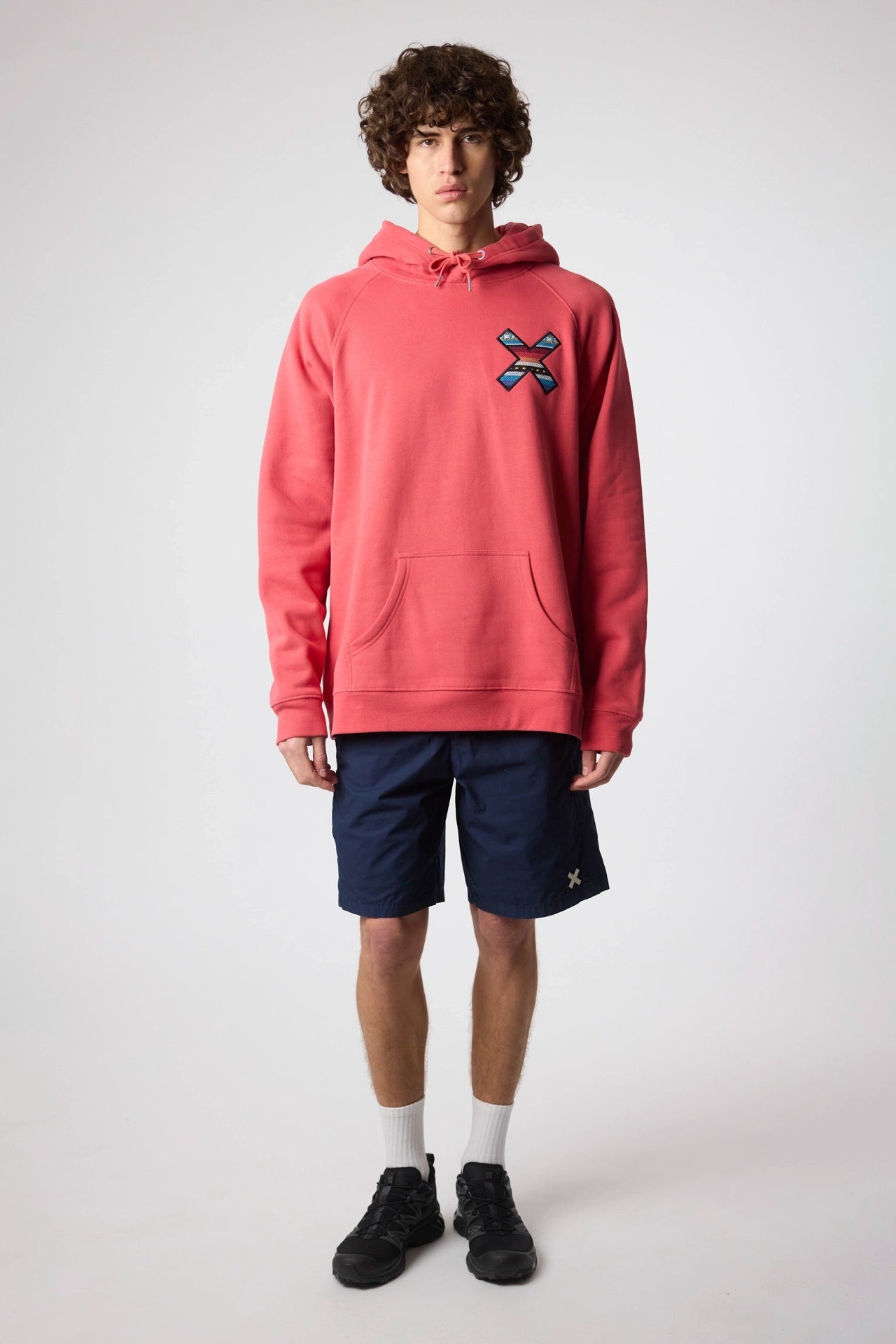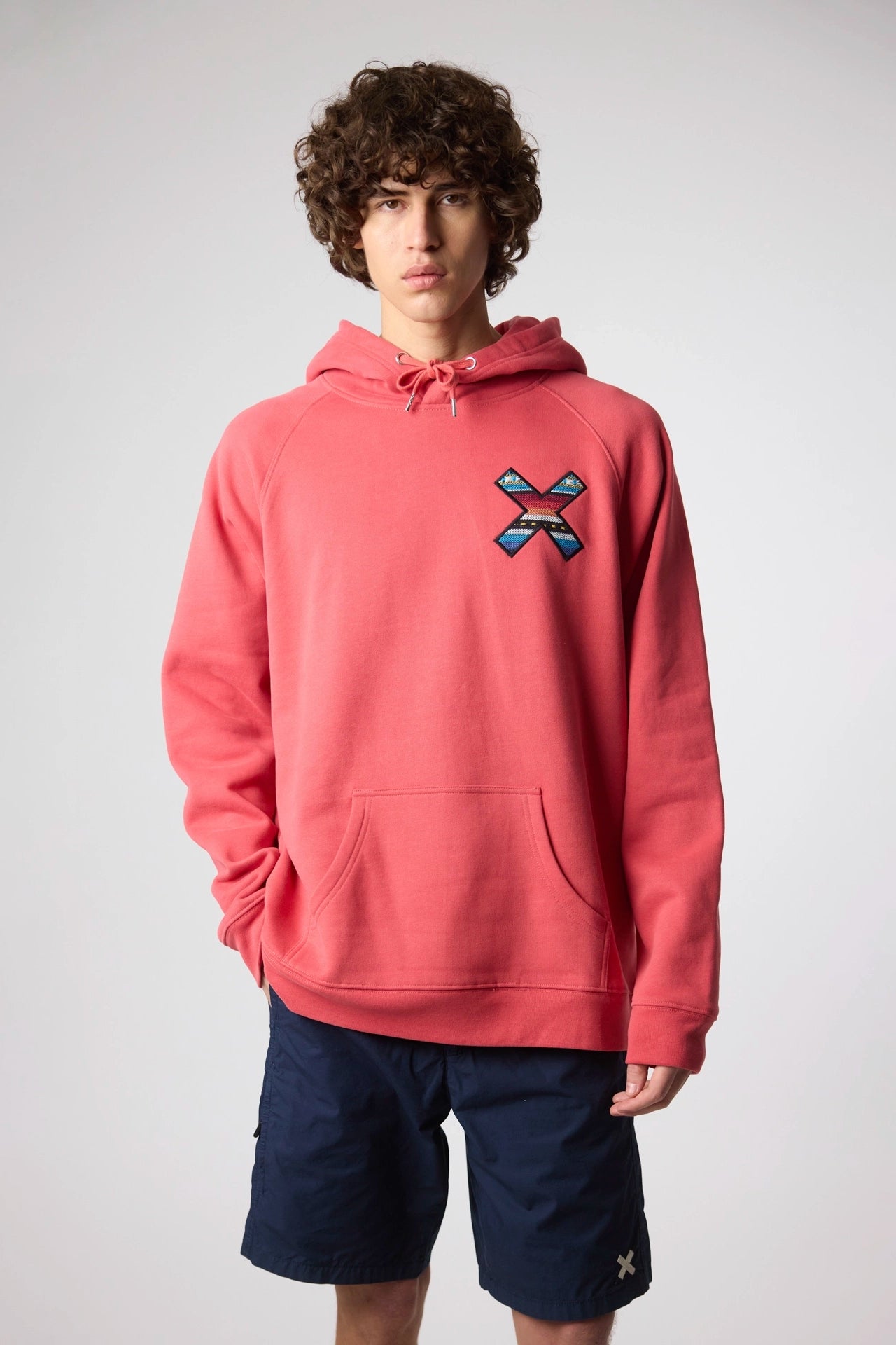 Sudadera con capucha con nuestra clásica X bordada: delantera en el pecho y trasera en la espalda. Confeccionada con 100% algodón orgánico y corte regular fit.