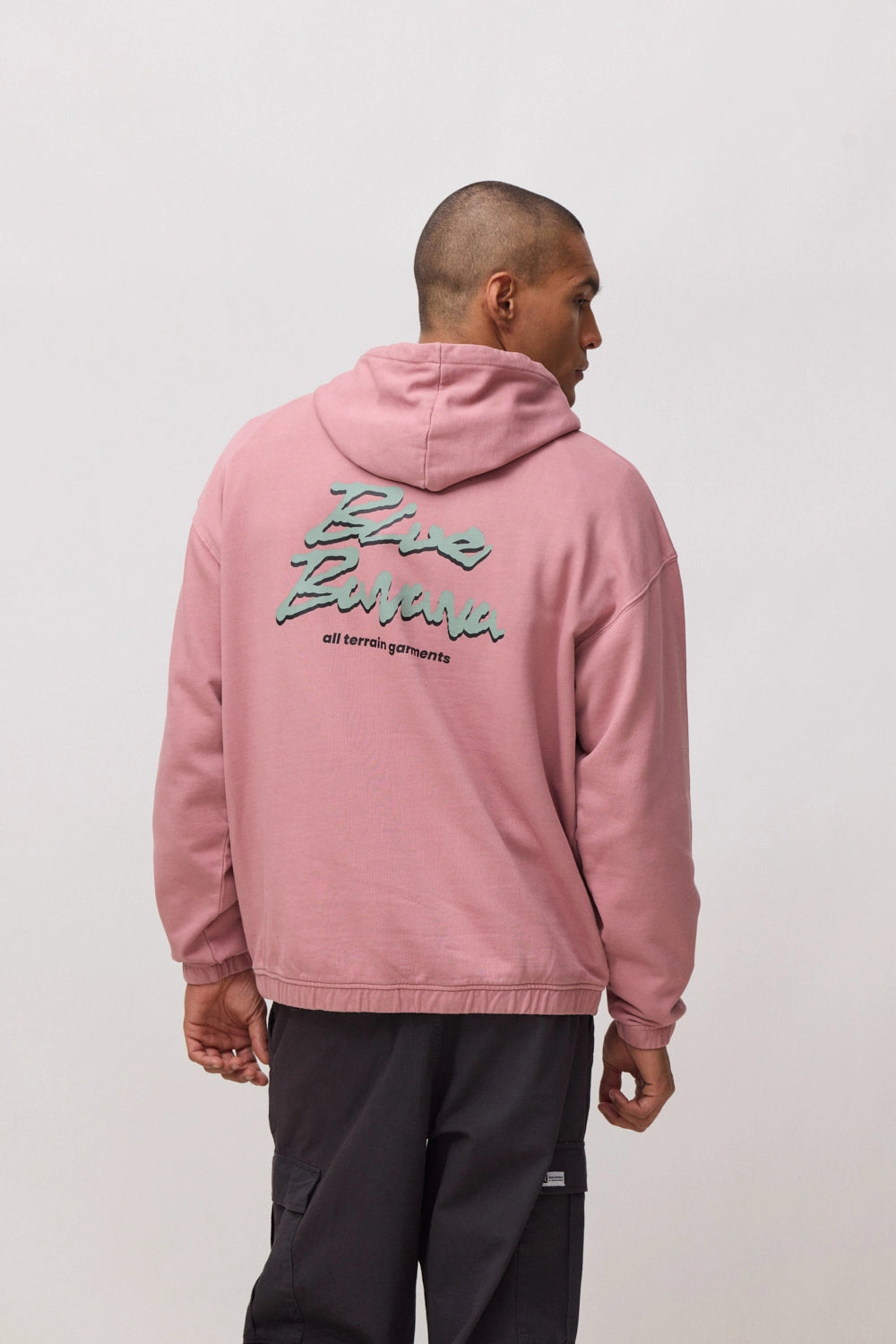 Felpa con cappuccio con stampa frontale in alto a sinistra e stampa centrale sul retro con taglio oversize.