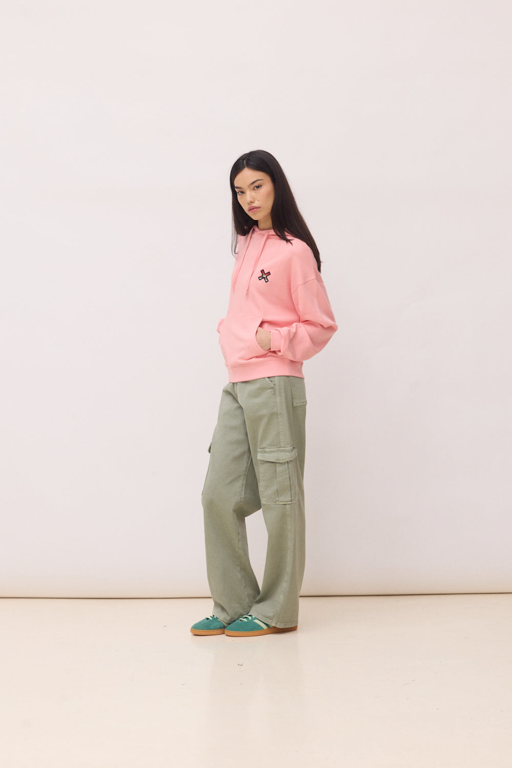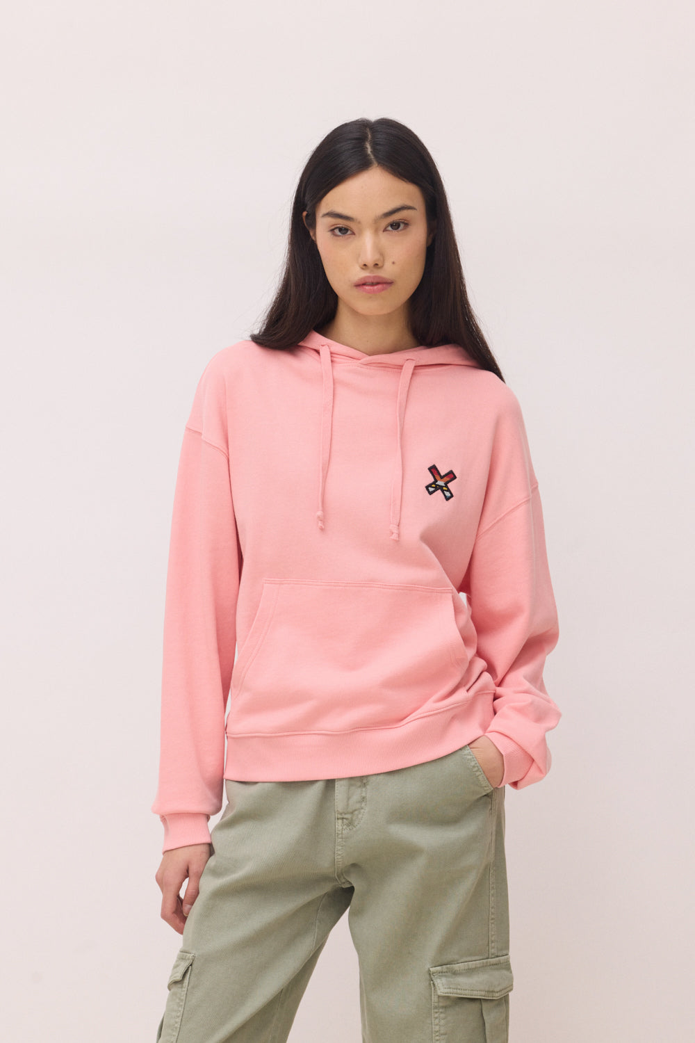 Felpa con cappuccio con la nostra classica X sul petto e sulla schiena. Tasca frontale centrale inferiore con apertura su entrambi i lati. Confezionata con 100% cotone organico.
