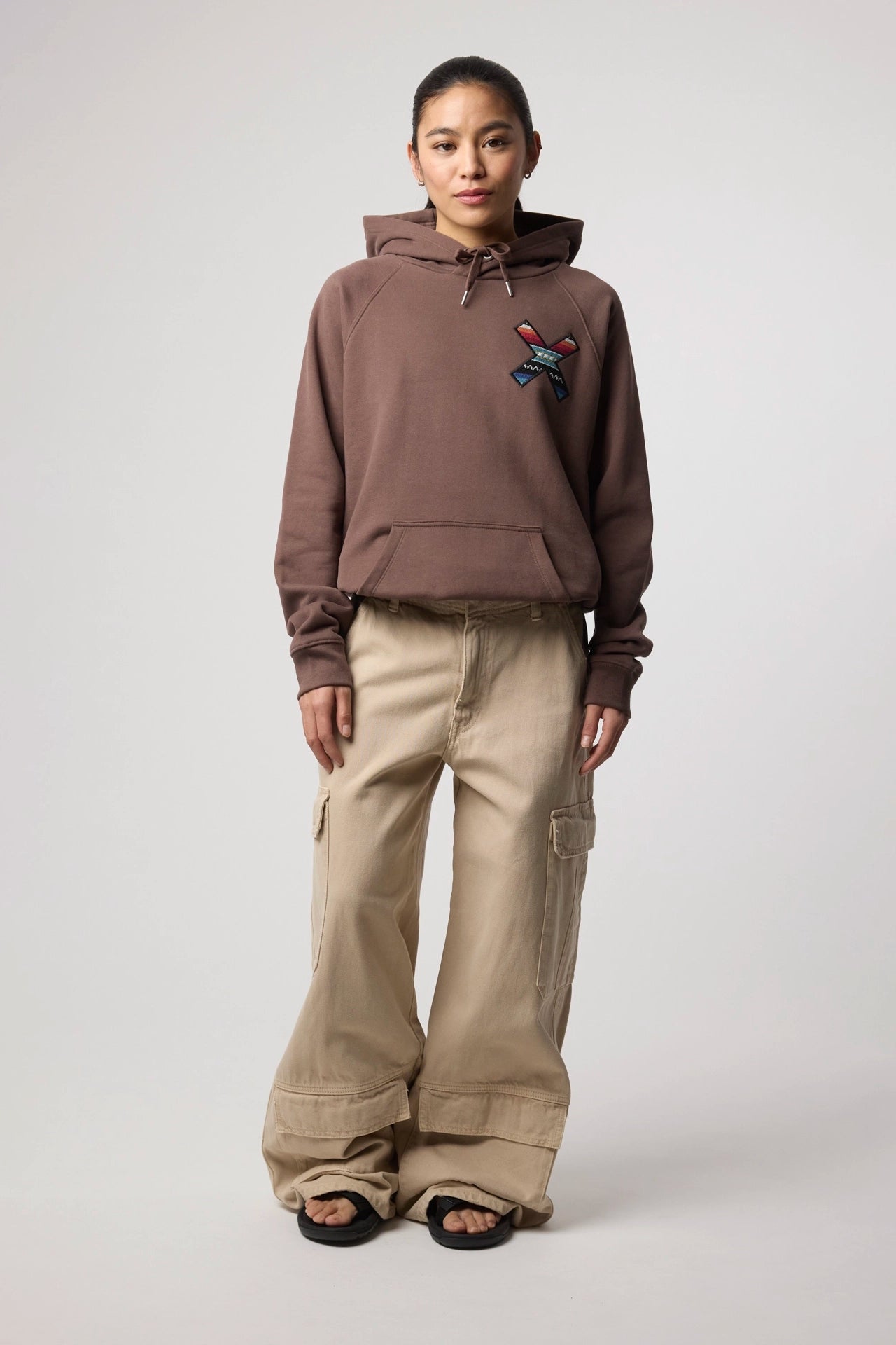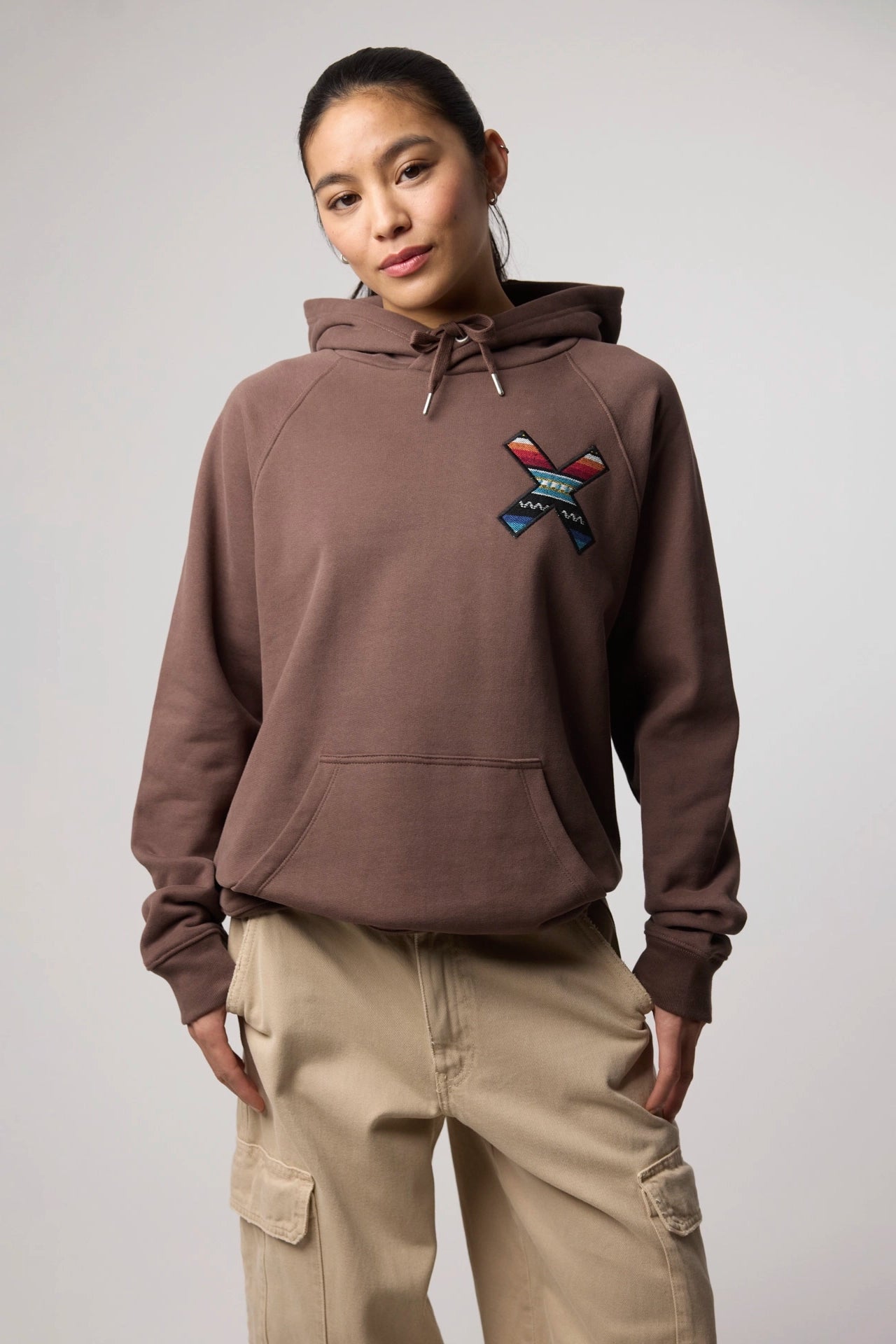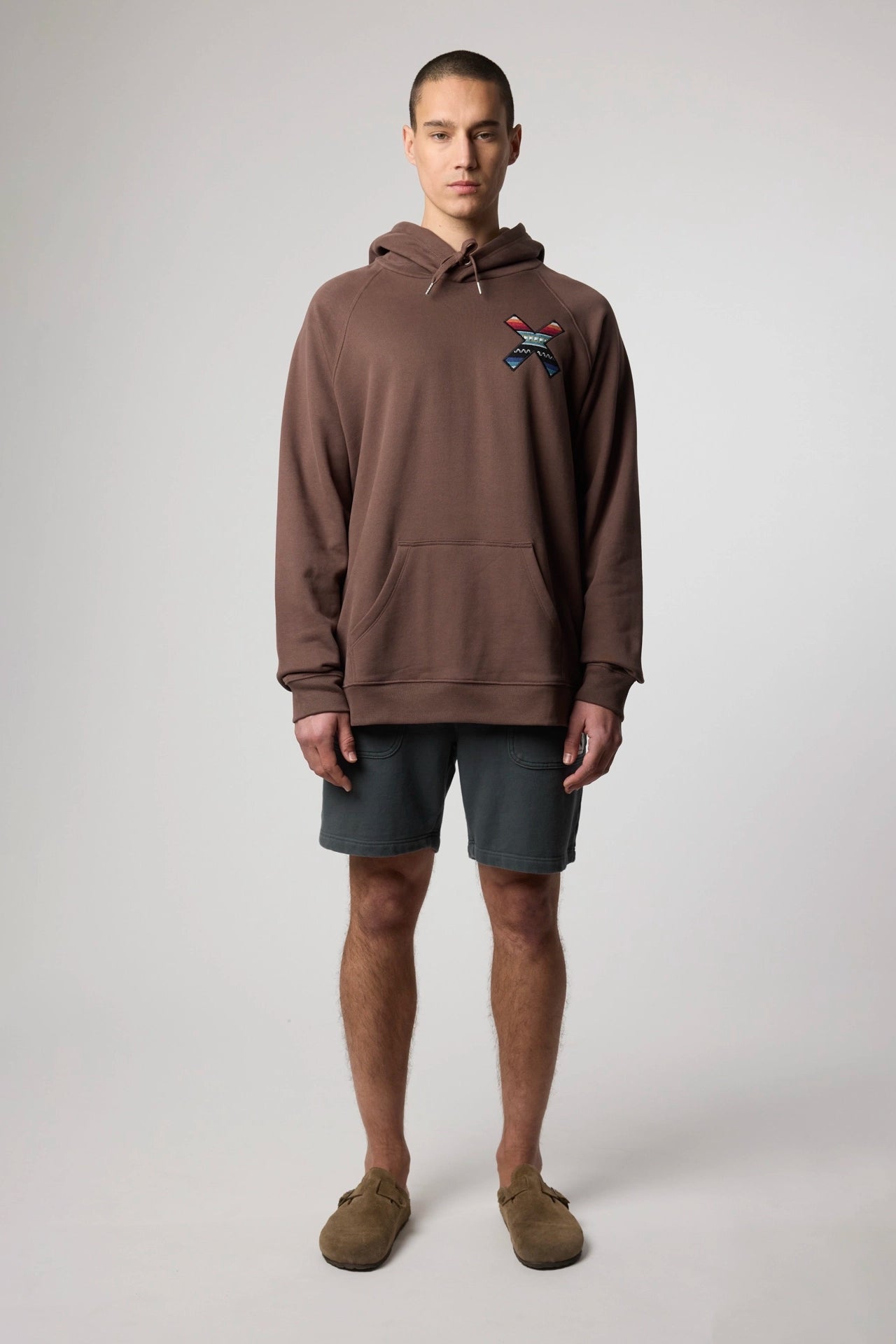 Sudadera con capucha con nuestra clásica X bordada: delantera en el pecho y trasera en la espalda. Confeccionada con 100% algodón orgánico y corte regular fit.