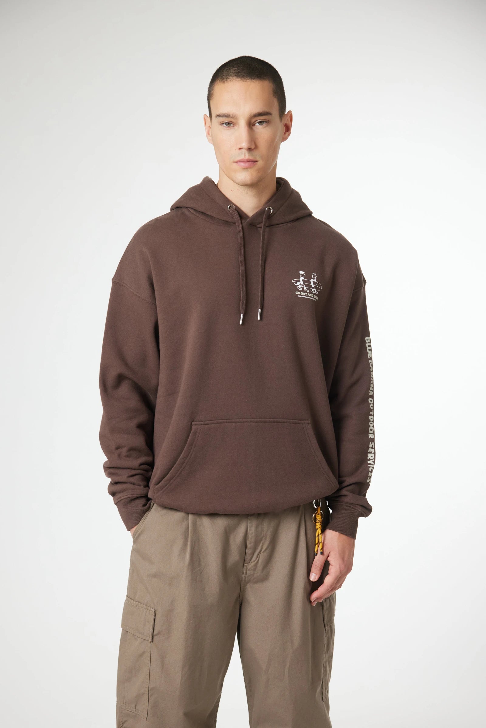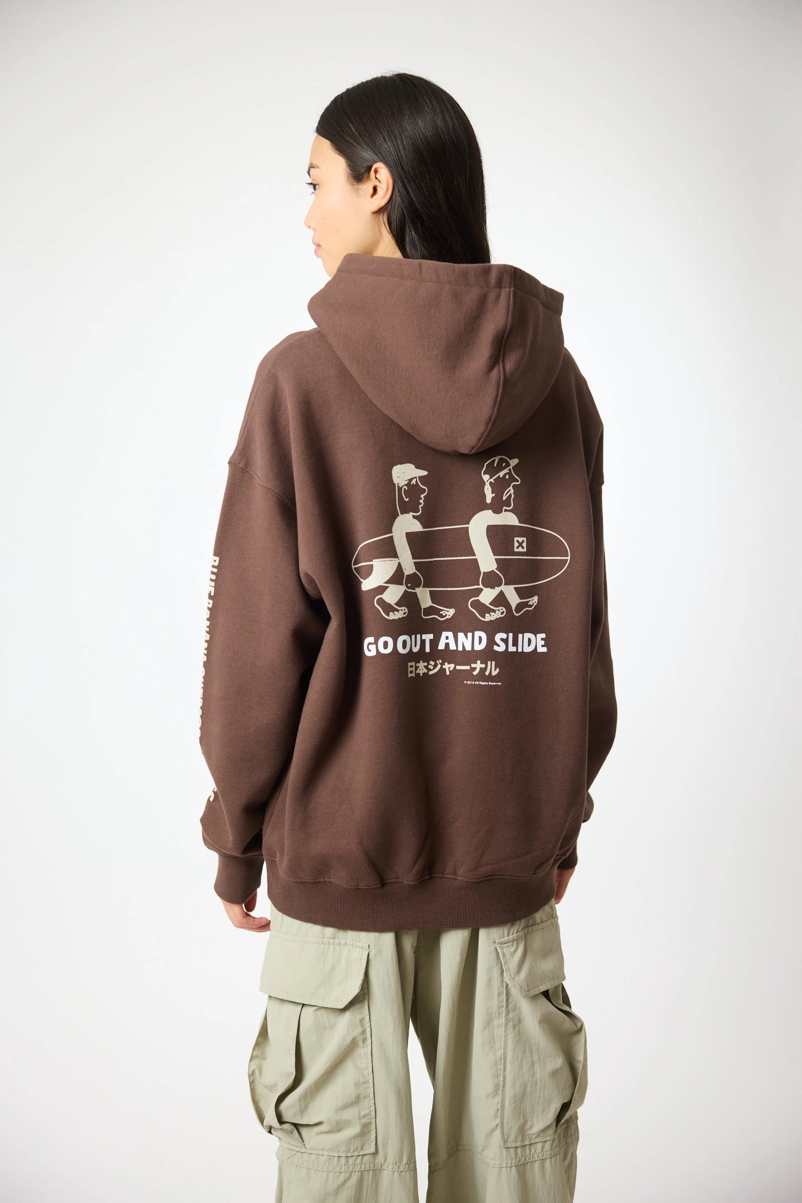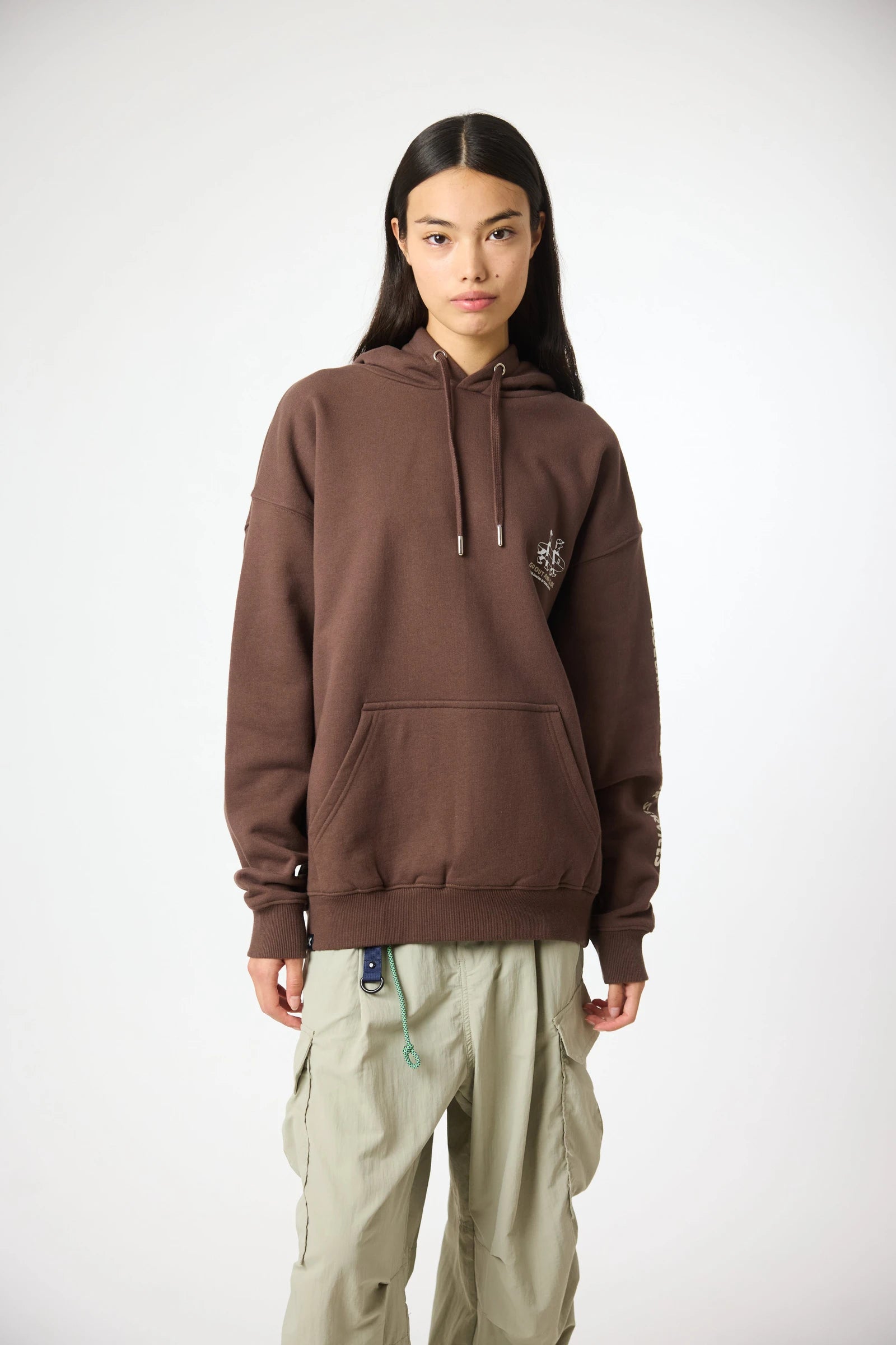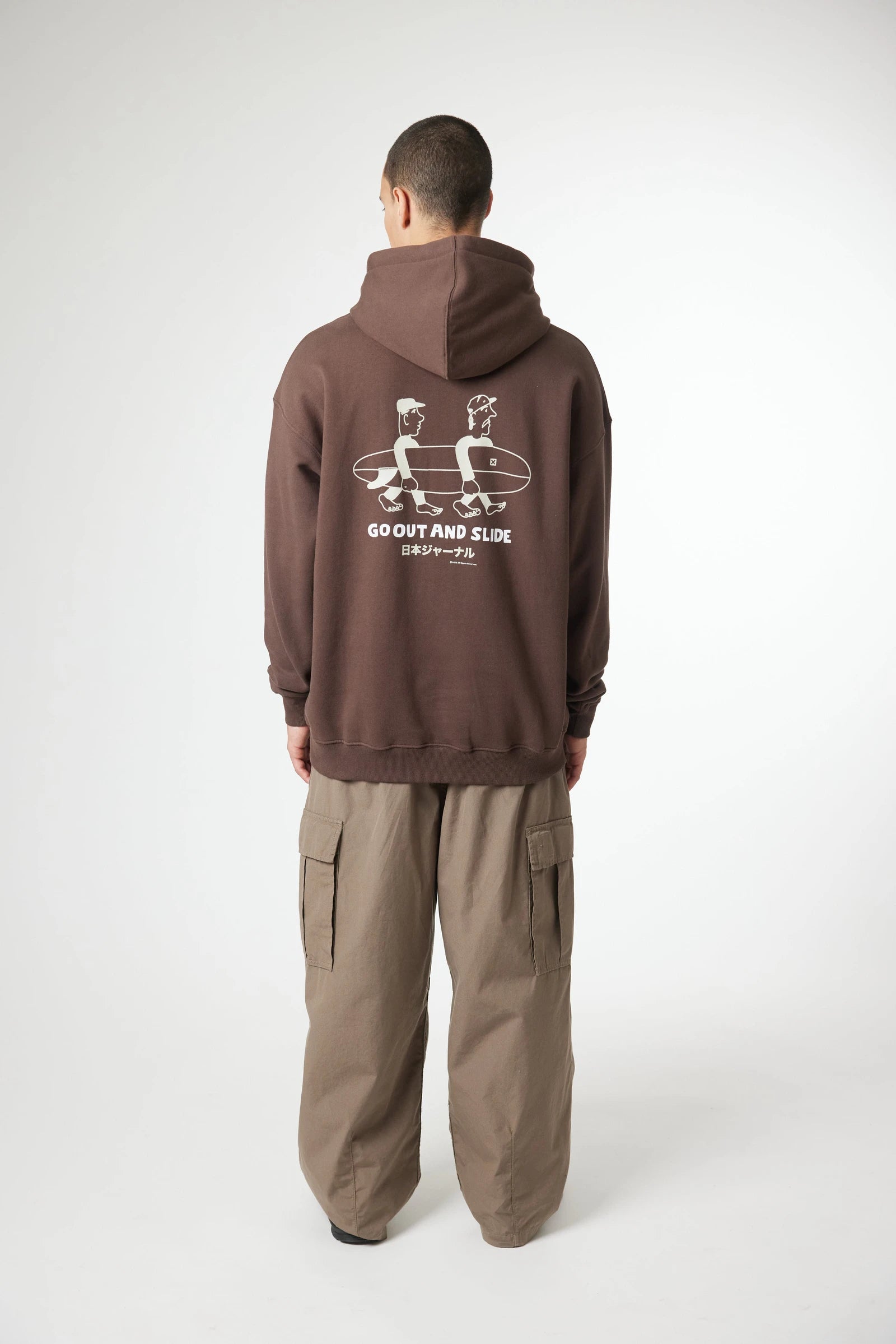Felpa con cappuccio con stampa frontale in alto a sinistra e stampa centrale sul retro. Tasca anteriore centrale inferiore con aperture su entrambi i lati. Realizzata in 100% cotone biologico e dalla vestibilità oversize.